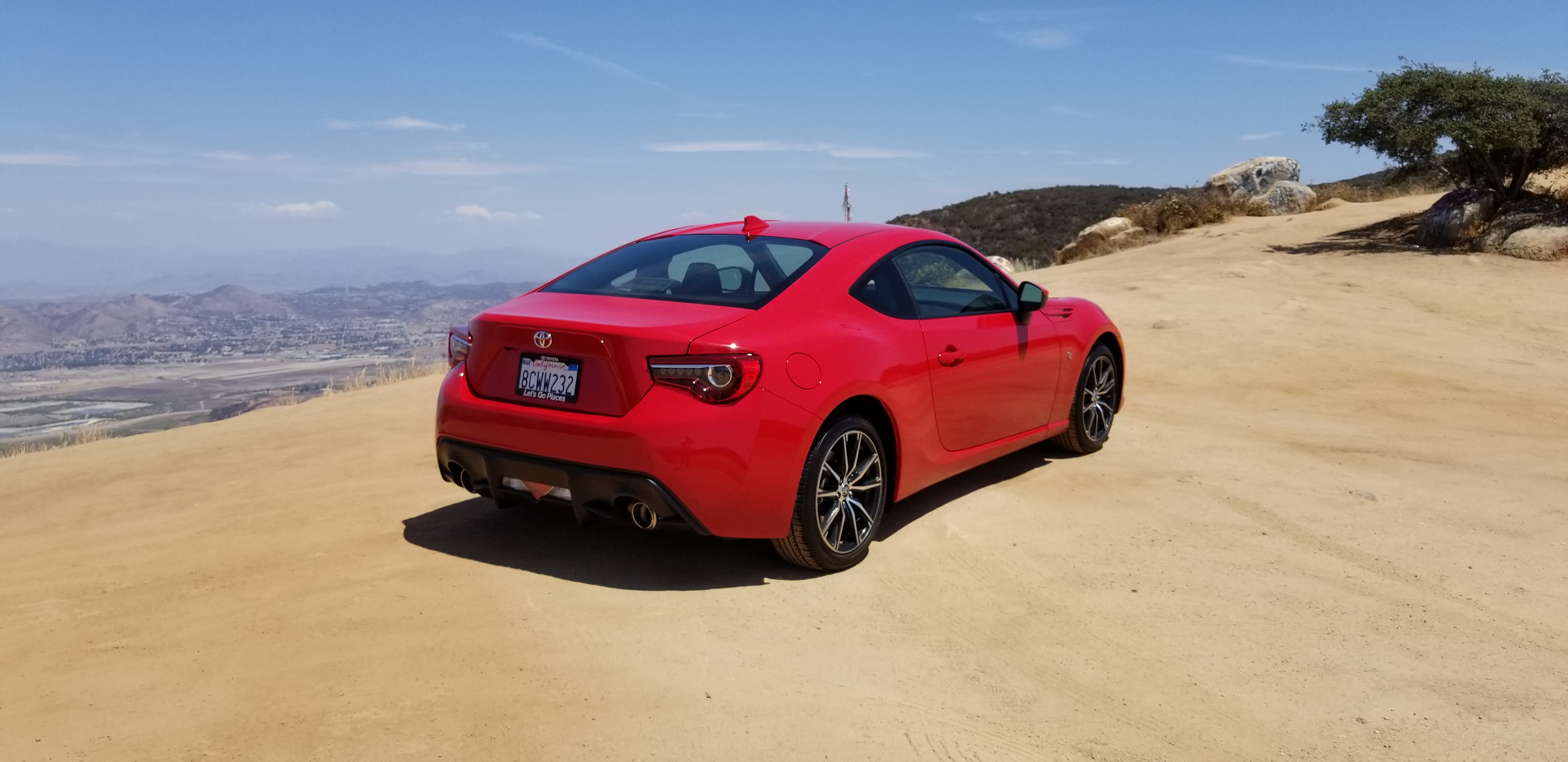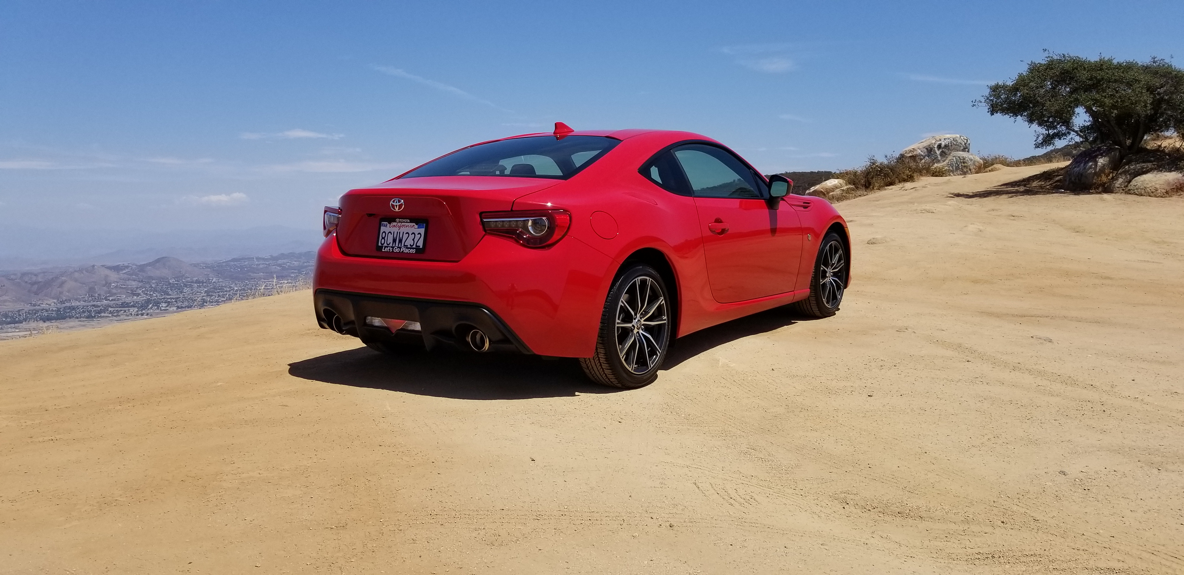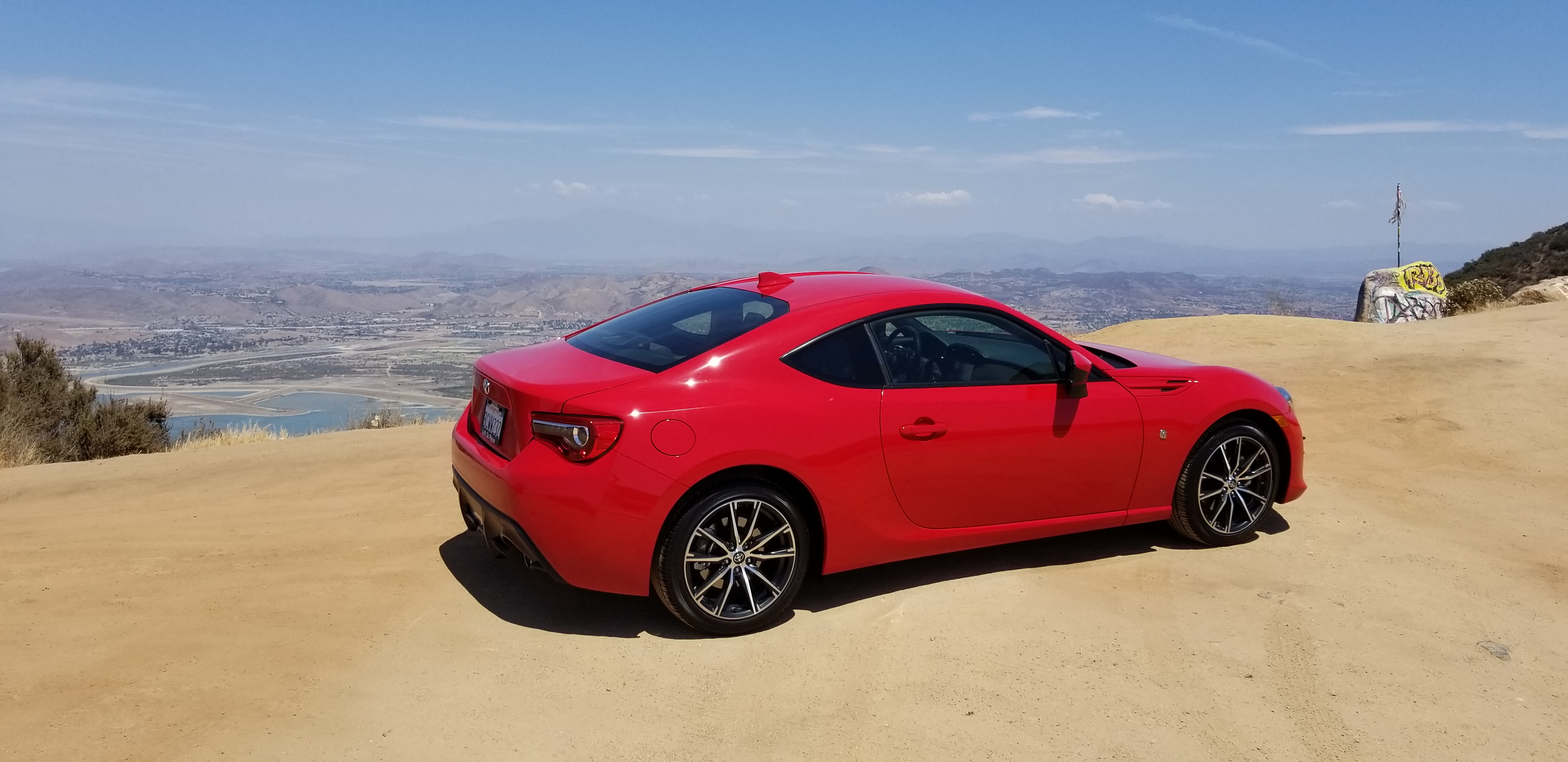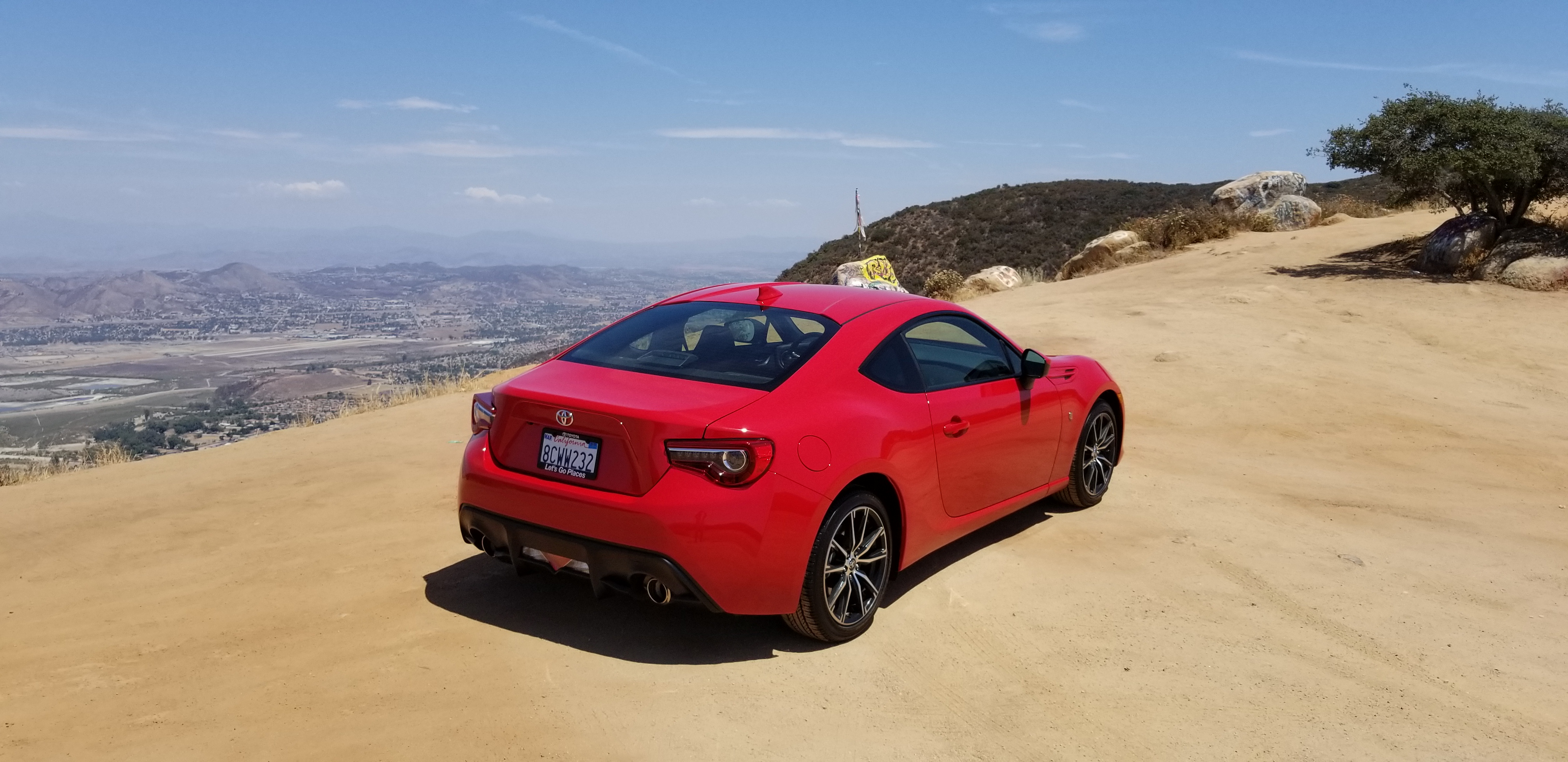 So here I was, driving the 2018 Toyota 86, formerly known as Scion FR-S and still also known under Subaru branding (yes, I am sorry. It was a long sag-way to get to the car part). We had just come from Hemet, and I had just done a photo shoot of the Toyota 86 up over the mountain, looking down on Lake Elsinore and the surrounding mountains. That in itself was surprising, since a huge fire had raged through exactly that area a few weeks prior, destroying large areas of brush and trees, but specifically THAT location was surprisingly spared. It was very eerie.