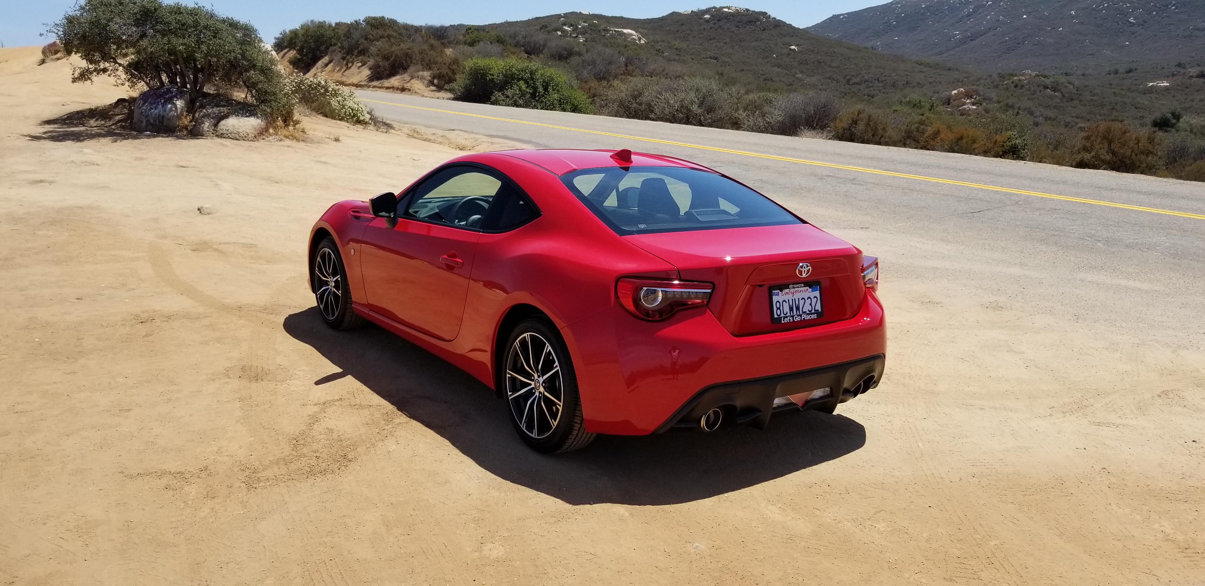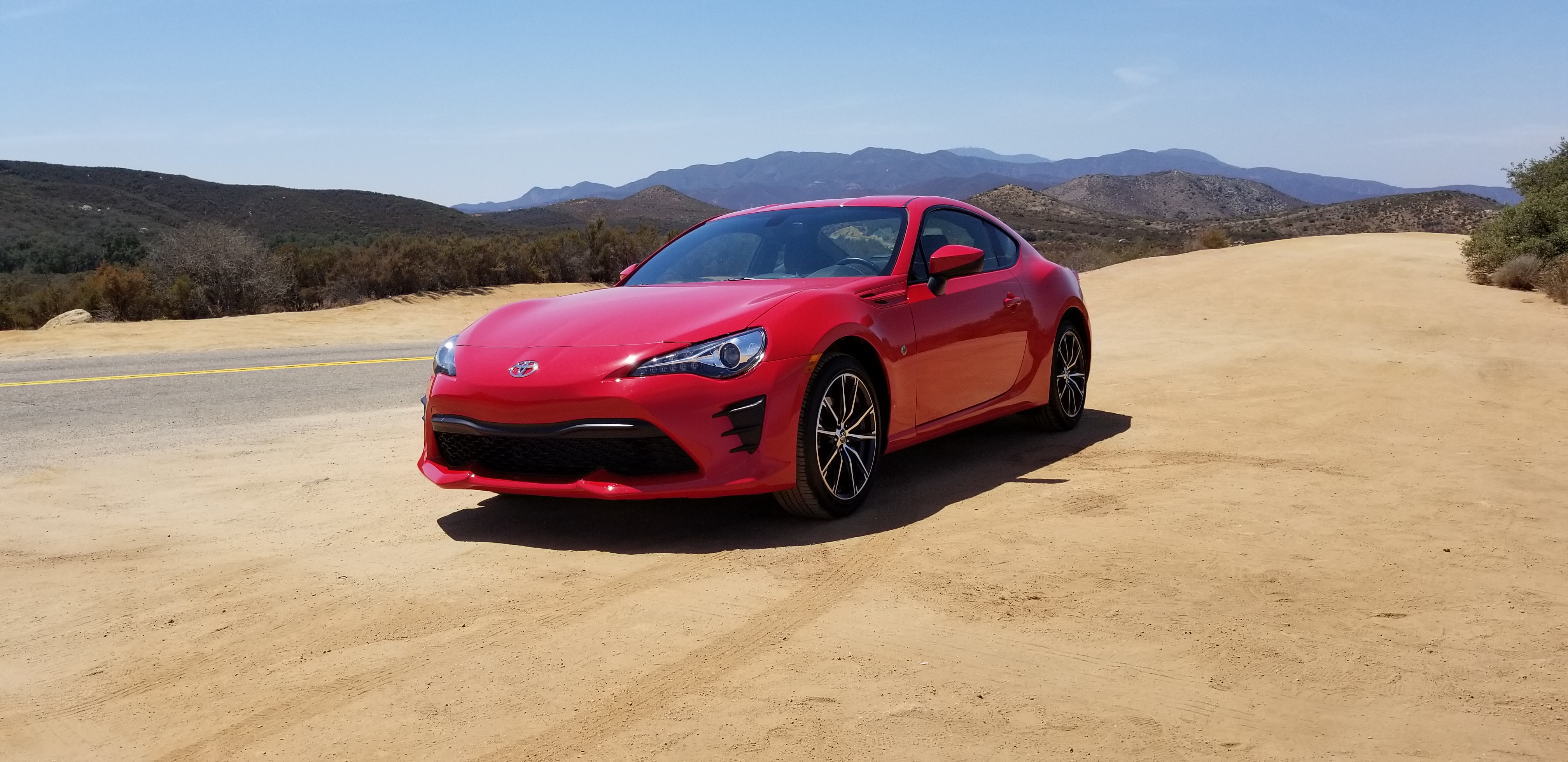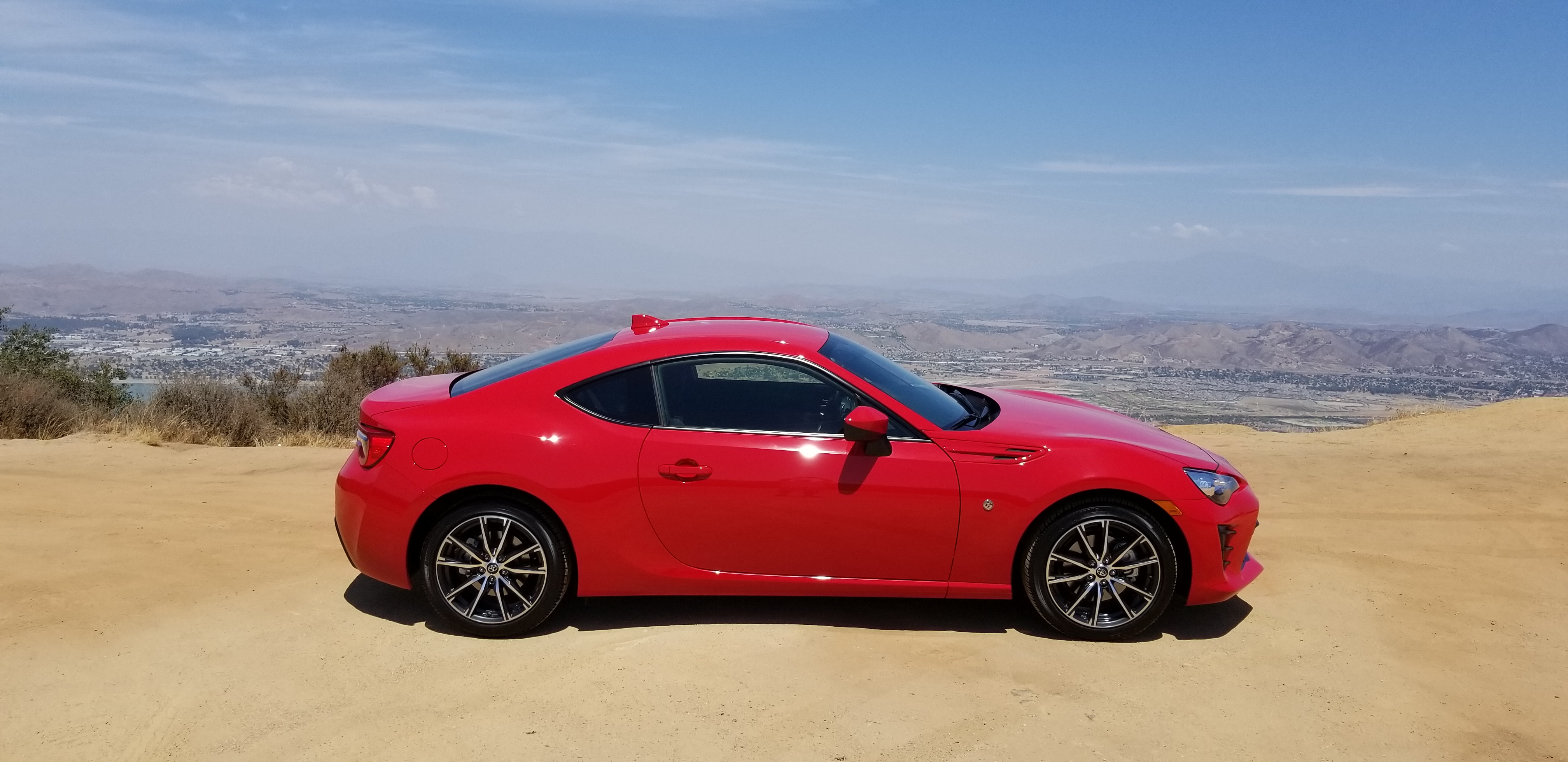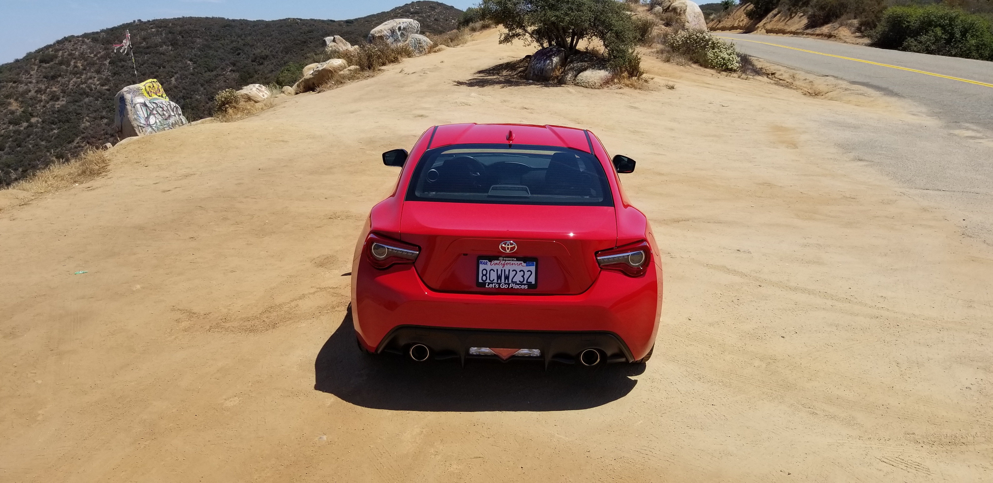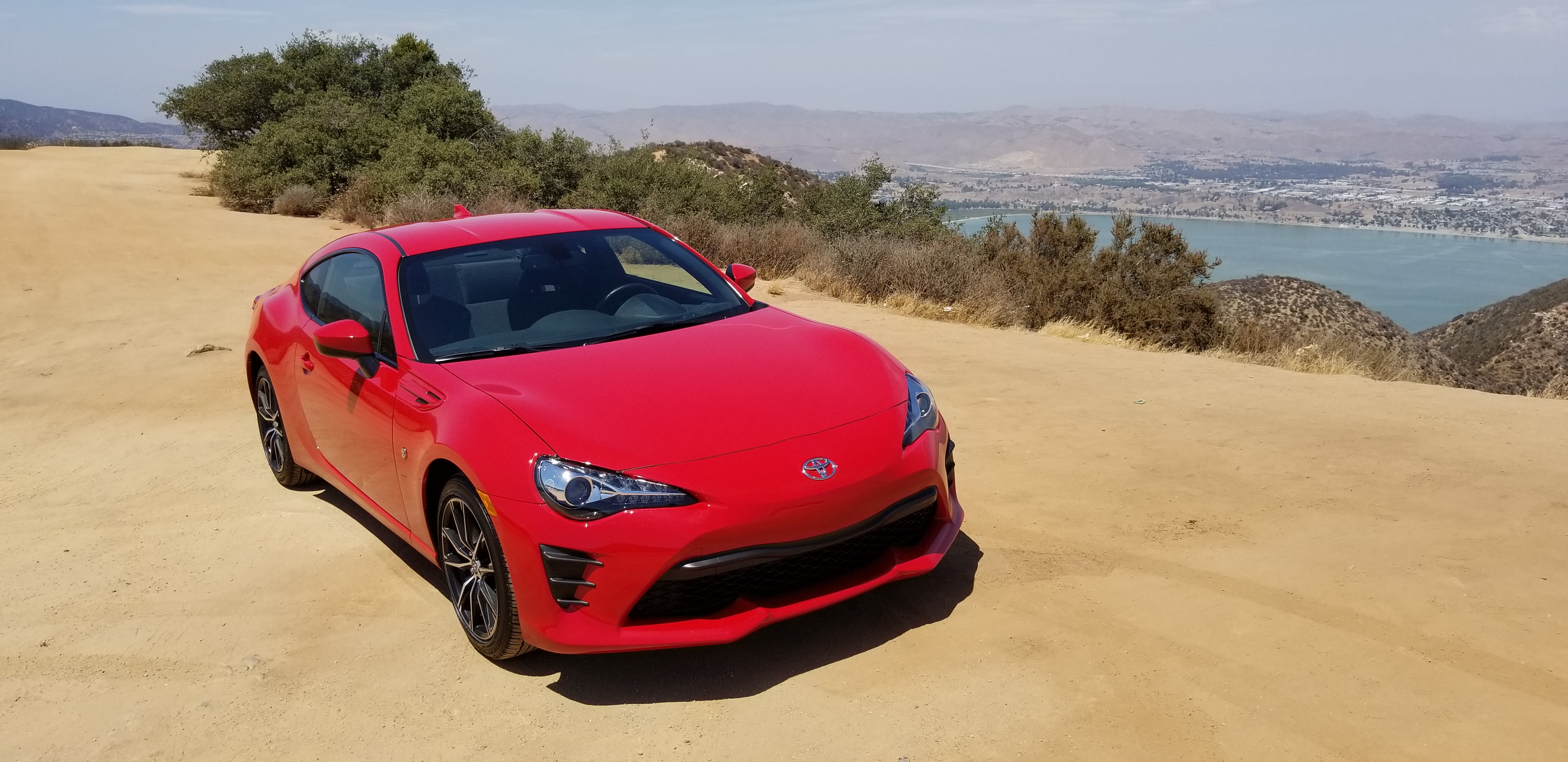 So here I was, driving the 2018 Toyota 86, formerly known as Scion FR-S and still also known under Subaru branding (yes, I am sorry. It was a long sag-way to get to the car part). We had just come from Hemet, and I had just done a photo shoot of the Toyota 86 up over the mountain, looking down on Lake Elsinore and the surrounding mountains. That in itself was surprising, since a huge fire had raged through exactly that area a few weeks prior, destroying large areas of brush and trees, but specifically THAT location was surprisingly spared. It was very eerie.