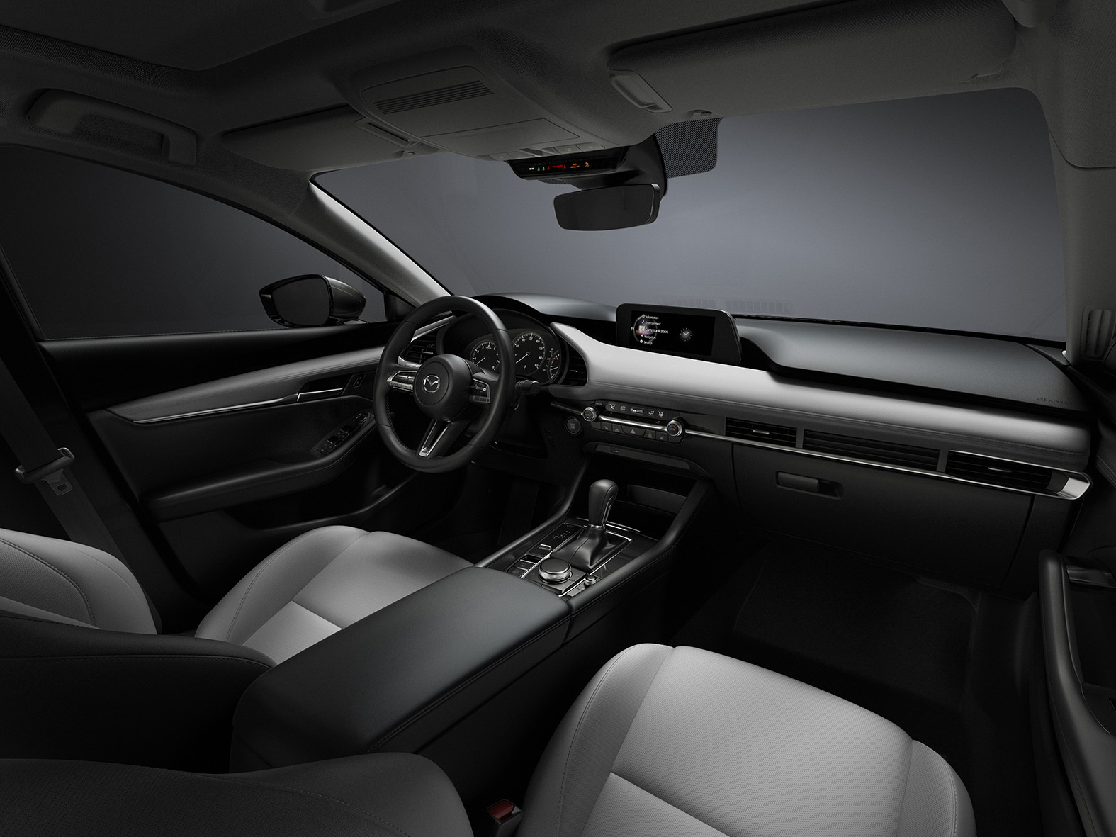 The cockpit and cabin were carefully designed in accordance with Mazda’s own human-centric philosophy. One goal was to provide all drivers with a confidence-inspiringease of operation that helps them to concentrate on driving. Another wasto make time spent in transit comfortable and enjoyable. Mazda applied the latest available knowledge and technology in designing the driving position, visibility, Human-Machine Interface (HMI), and audio sound quality. These were leveraged to further elevate the level of quality and satisfaction by delivering a more natural and intuitive feeling todriving. The new Mazda3 provides all occupants with the pleasure of a natural, comfortable and relaxing driving experience that begins with the very first outing and remains consistent in any driving scene.