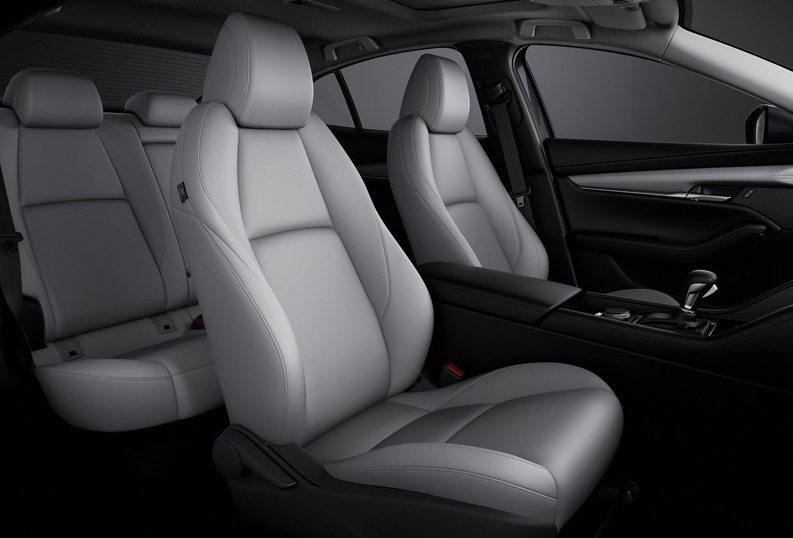 - Interior parts employ Mazda’s own grain, designed to express the richness and warmth of genuine leather. By introducing creases with differing depth and shapes on different parts, this new material creates a lively rich expression.