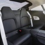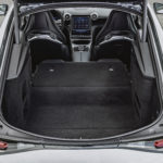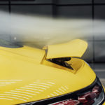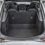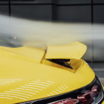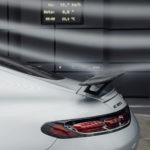 The compact greenhouse with a fastback silhouette and a large tailgate allows the design of a low and rounded rear with an active, deployable spoiler. The precise detailed design of the fender trim sets an accentuated contrast to the clean and full surfaces. The strongly pronounced shoulder gives the vehicle a perfect balance of elegance and sportiness. The flat, horizontally connected LED taillights with clear and precise graphics are precisely embedded in the rear design. The dark LED rear lights form a perfect symbiosis with the front headlights thanks to the three-dimensional “light dots” light signet. They feature the running light indicator function and “Coming Home/Leaving Home” animation as standard. The expressive rear diffuser with formally integrated twin tailpipe trim rounds off the dynamic design at the rear.