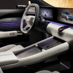 An ultra-wide 27-inch 4K panoramic display stretches across the dashboard, powered by a Snapdragon 8295 processor. Every surface is touch-responsive, designed to convey a sense of calm and intuitive interaction.