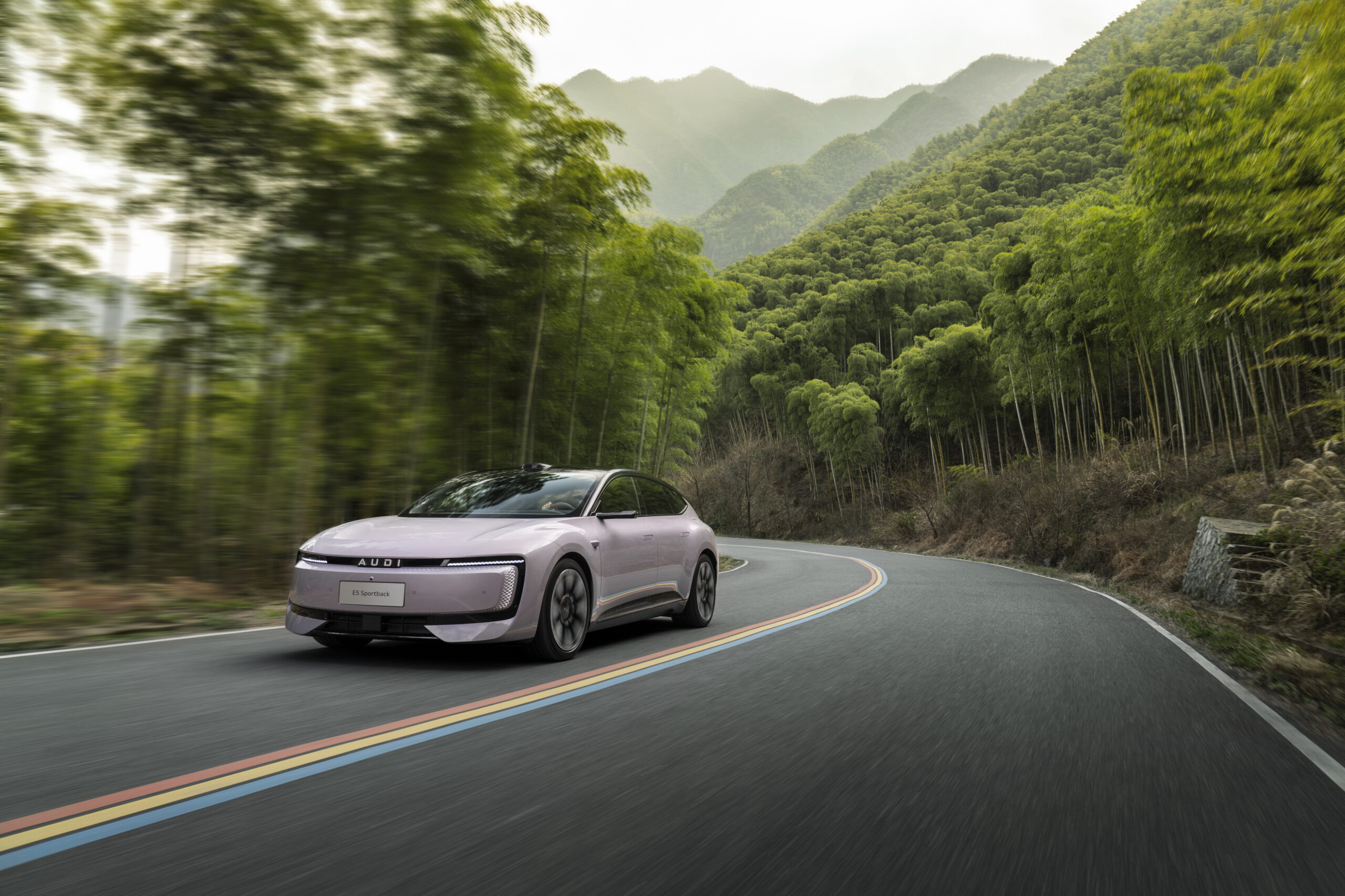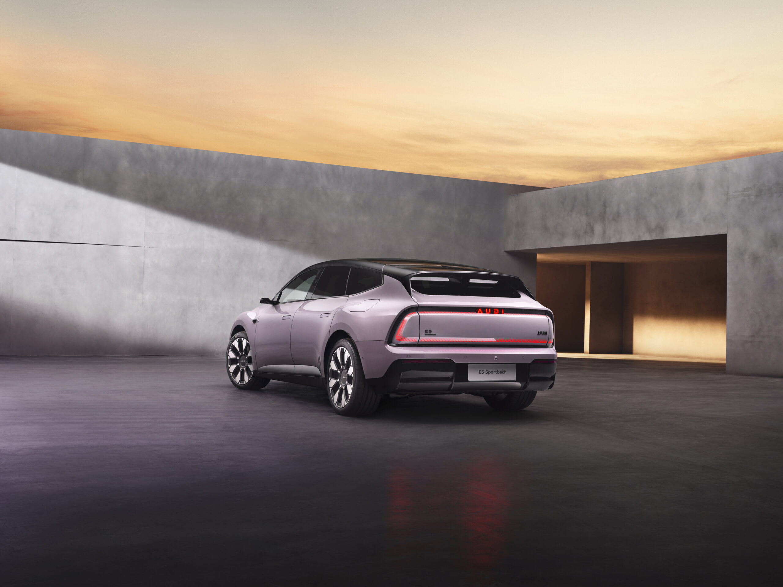 The AUDI E5 Sportback showcases dynamic proportions: