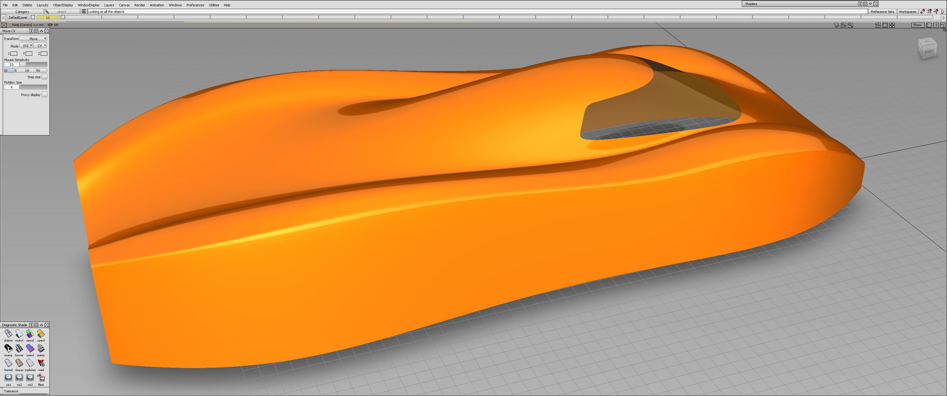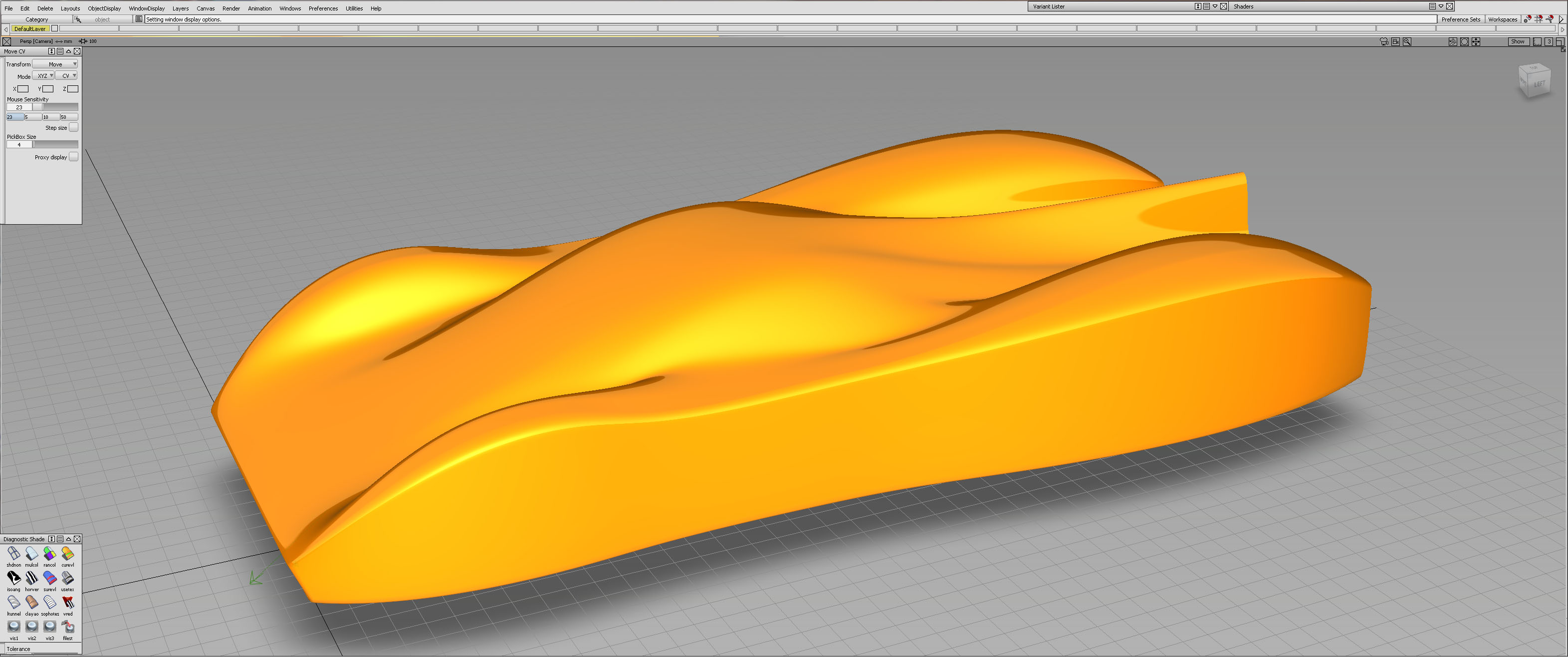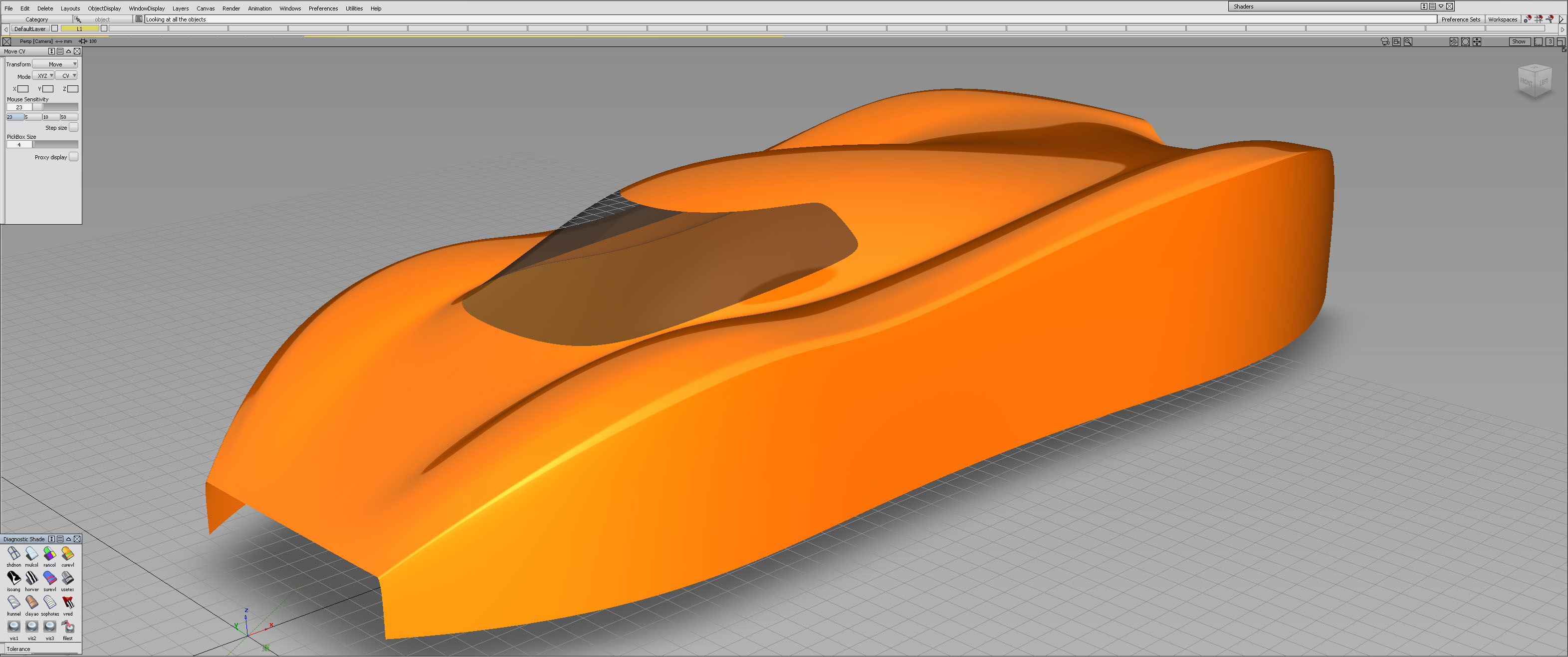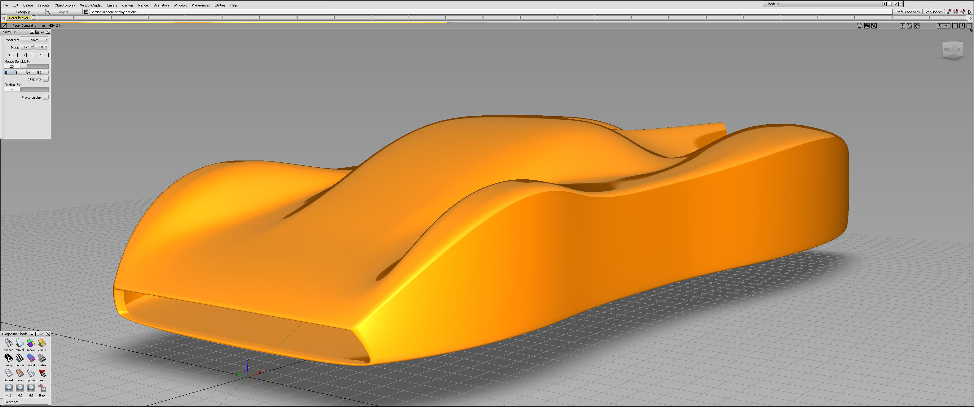 Organic Modeling 1.011In this video I will be using a simple rectangle to start with and sculpt a Le mans type body from it, all in one piece. Again, this is taped in real time, so it only took around 20 minutes to get a shape going. Most sketches with a touch of color take that long, but remain always 2D. This has proven an ideal technique for me to experiment with shapes and highlights. I use it to either create the basic shapes from doodles and ideas I had, or just playing around with the form to see if something interesting comes out, much like playing with clay.