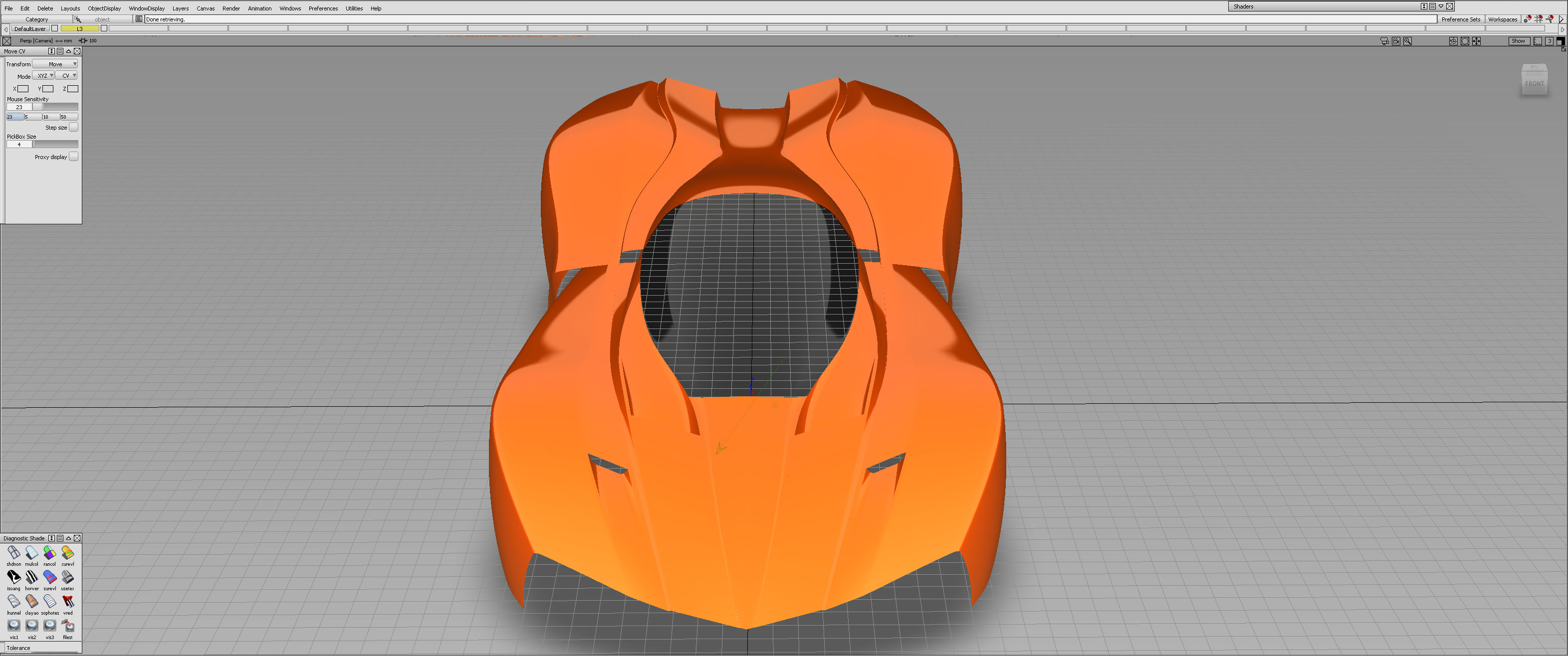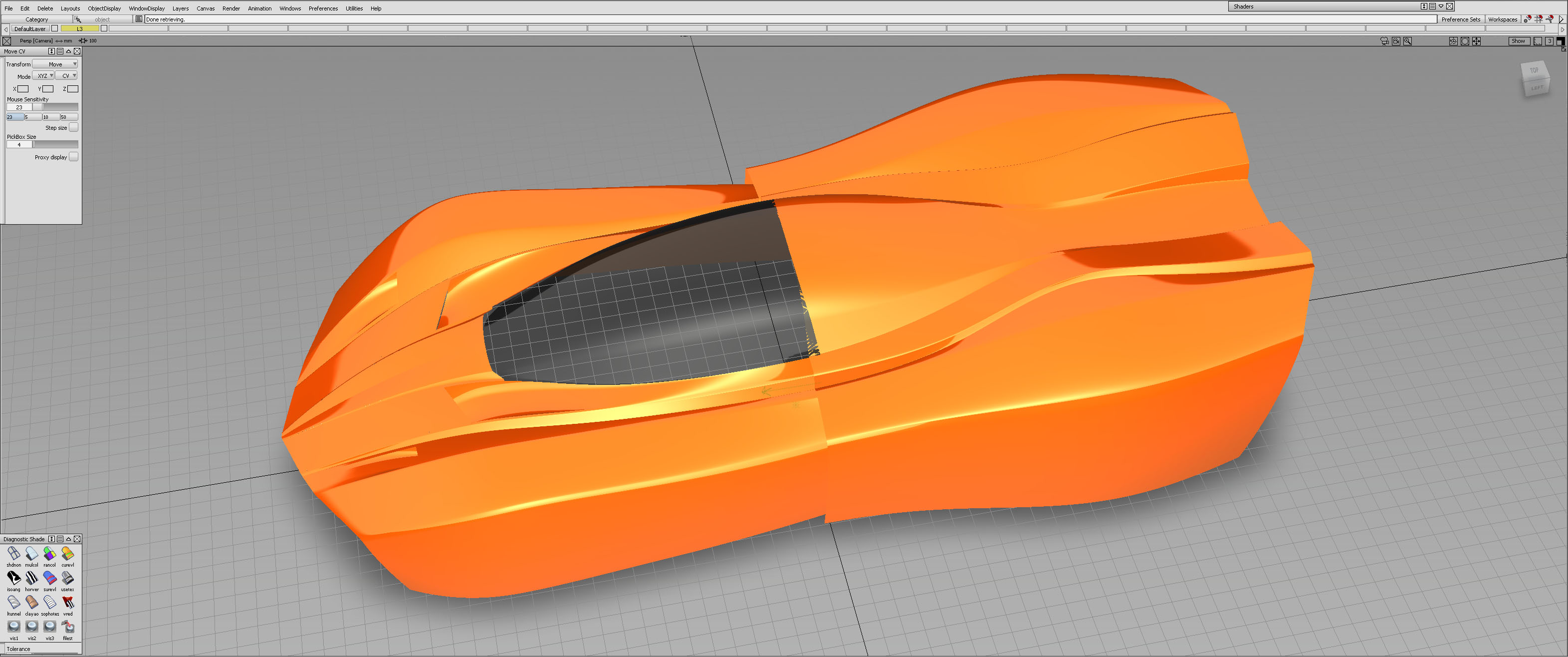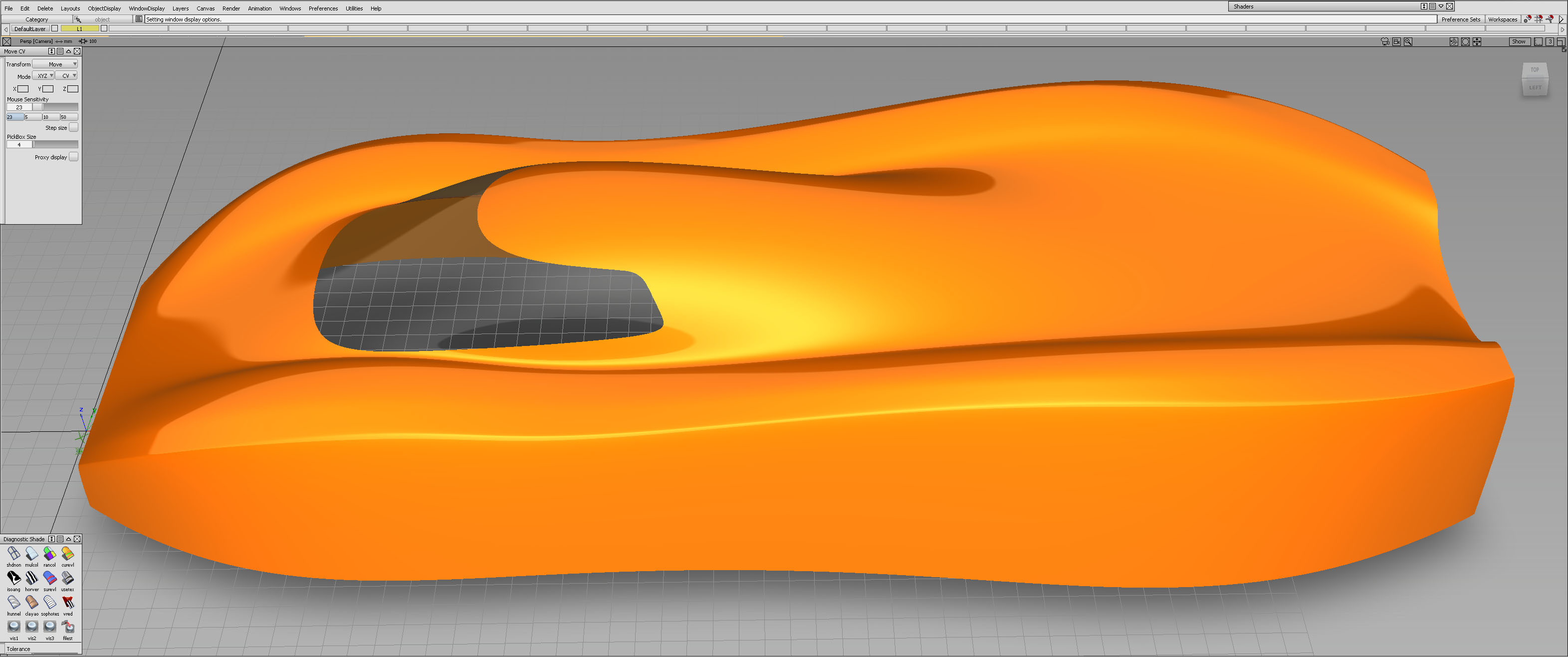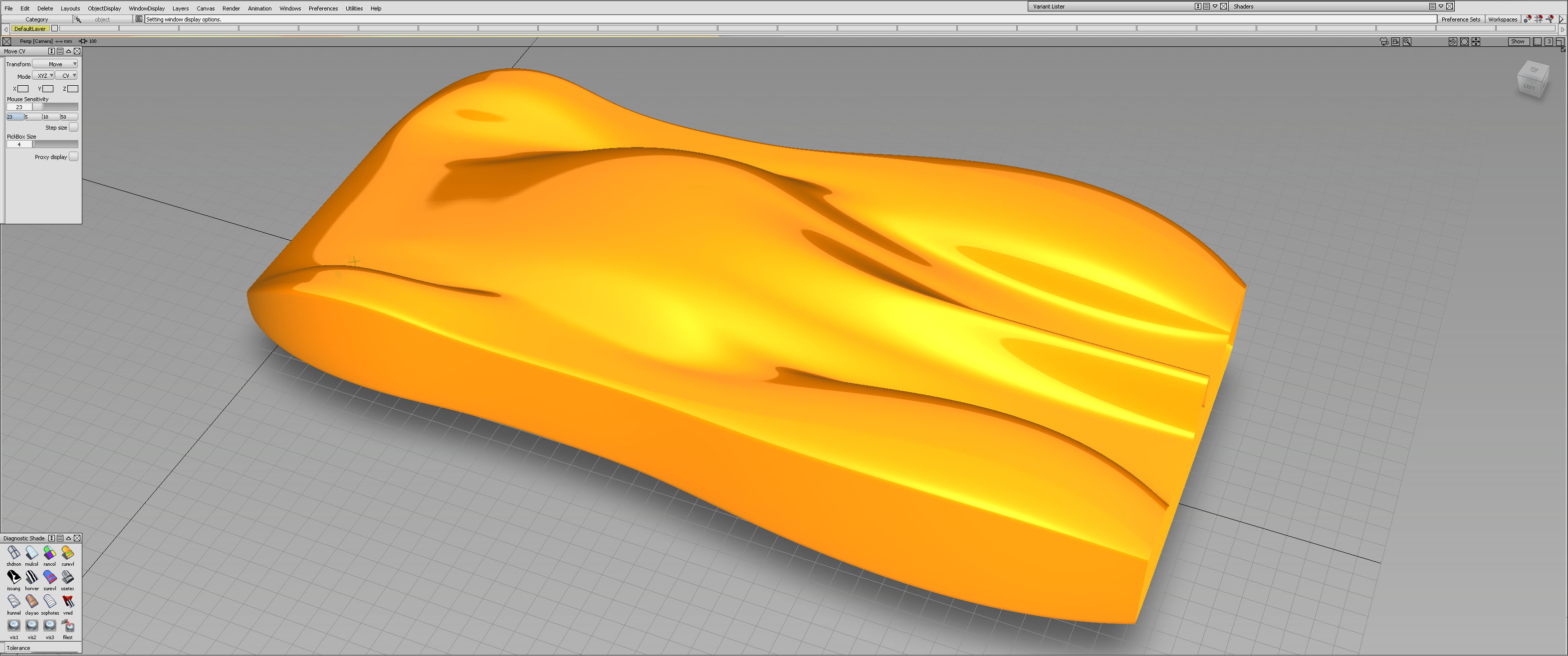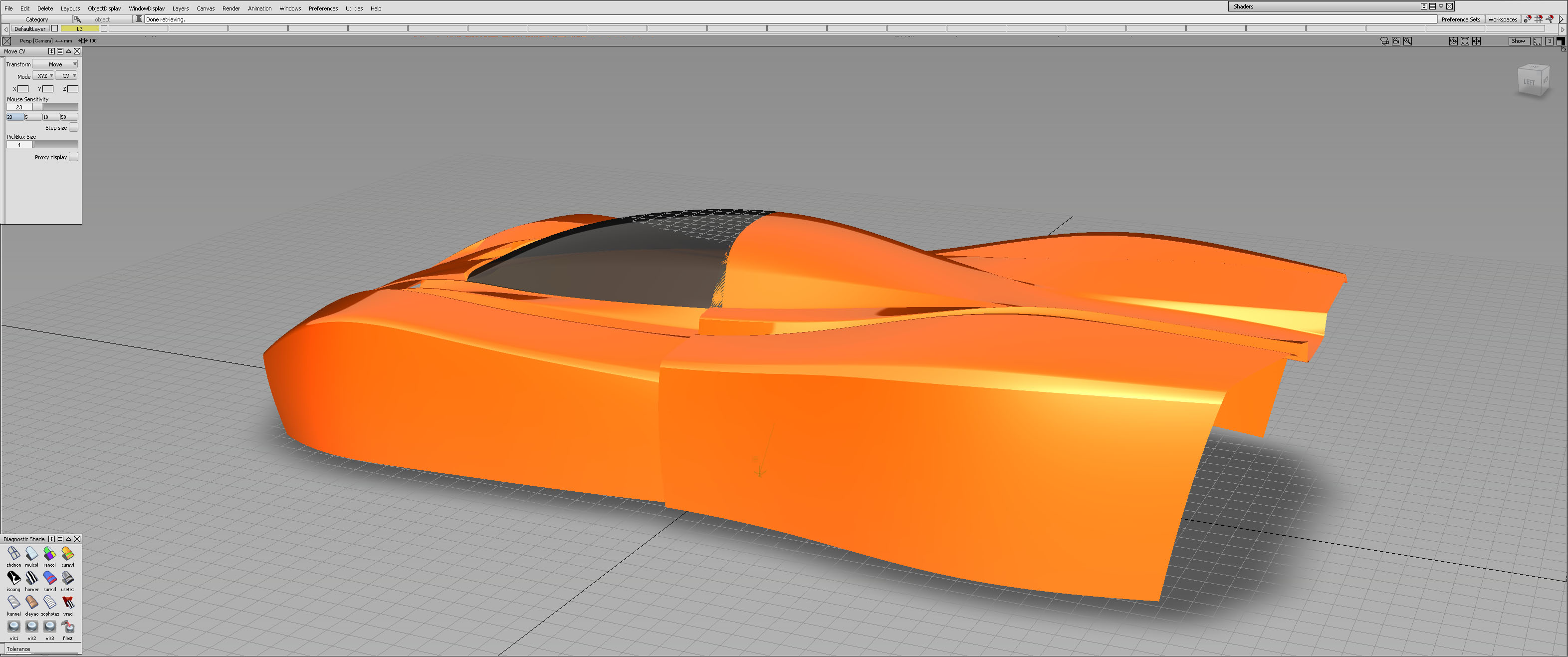 Organic Modeling 1.011In this video I will be using a simple rectangle to start with and sculpt a Le mans type body from it, all in one piece. Again, this is taped in real time, so it only took around 20 minutes to get a shape going. Most sketches with a touch of color take that long, but remain always 2D. This has proven an ideal technique for me to experiment with shapes and highlights. I use it to either create the basic shapes from doodles and ideas I had, or just playing around with the form to see if something interesting comes out, much like playing with clay.