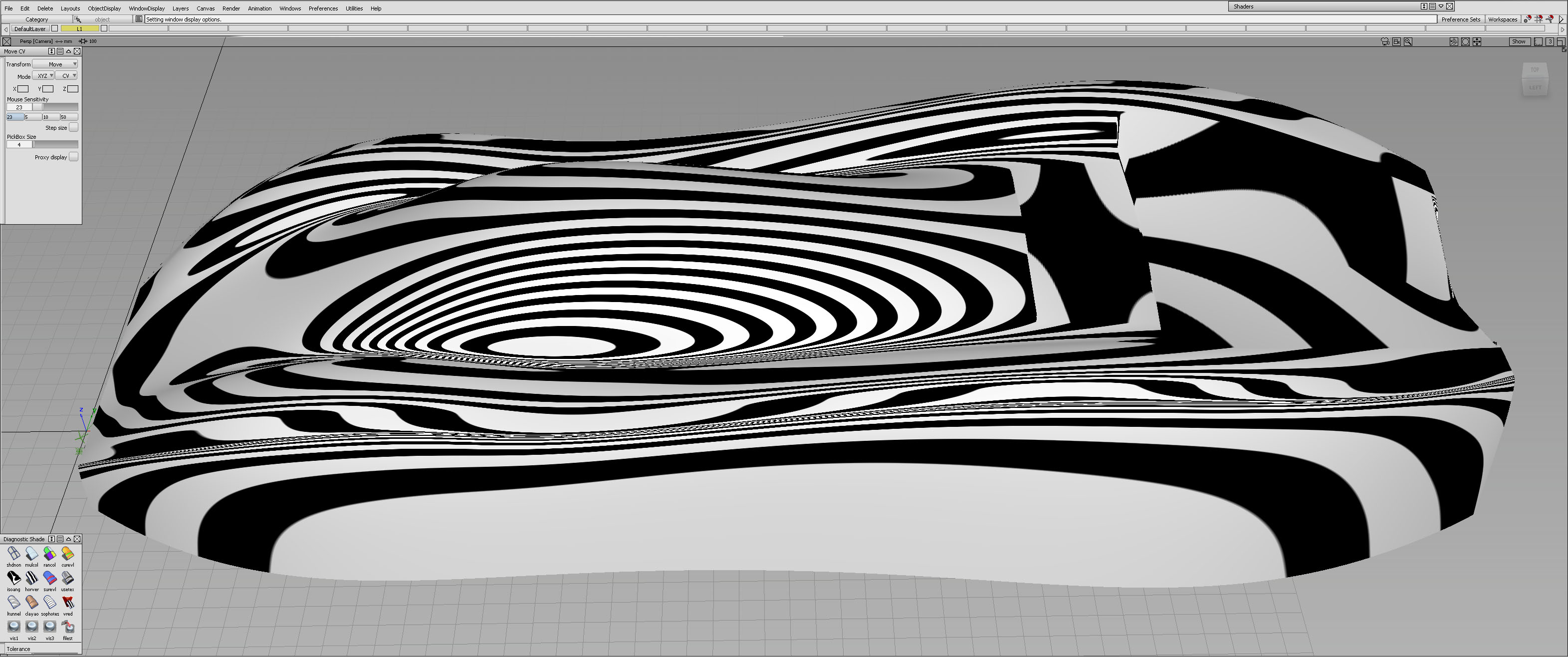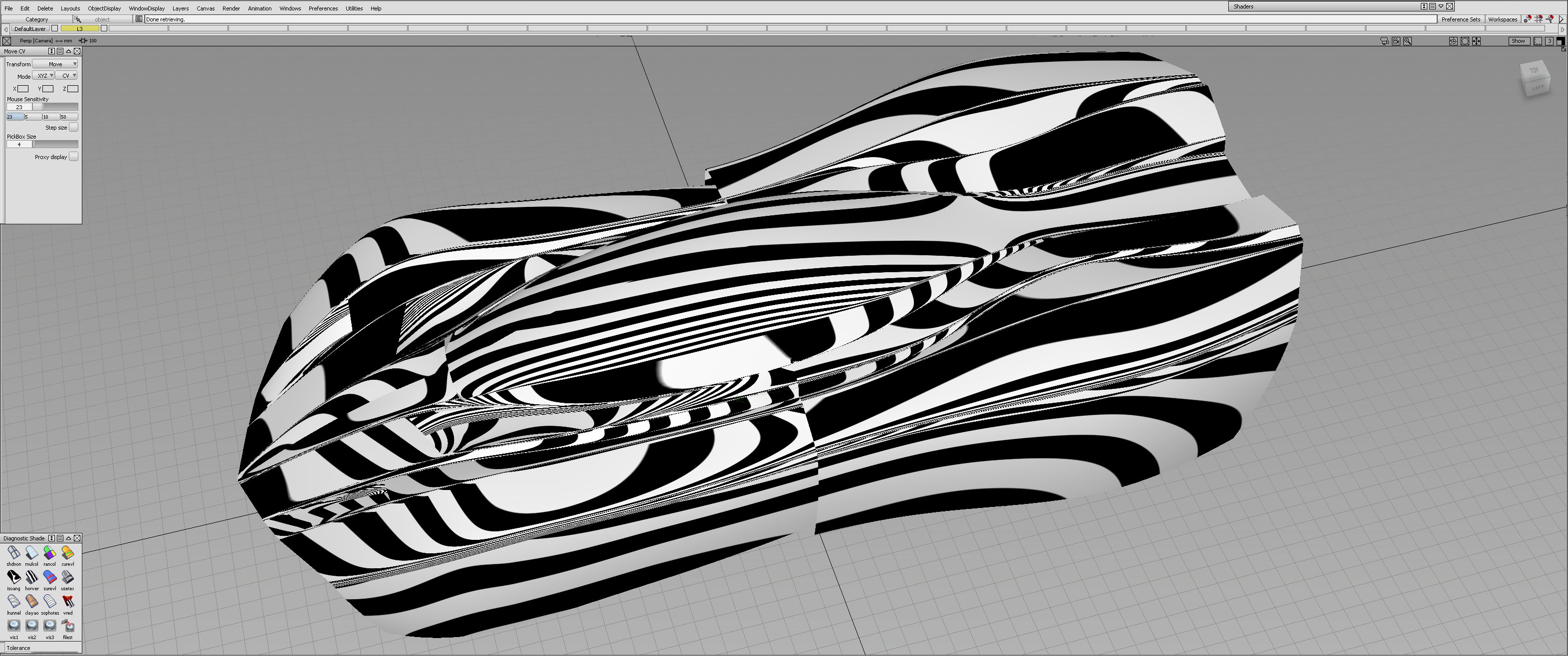 In extending the surfaces within Alias, much like adding points to a curve, sometimes unexpected hard points are created. I have found I can either work with them and use them to my advantage to create harder edges at certain spots, I can make them obsolete by by fine-tuning the surrounding hulls, even play them appearing and disappearing by playing with local CV’s, or afterward make a complete new rectangle from the same weight as the on I created, and snap the CV’s to the existing one. The latter mathod eradicates the unwanted harder lines and allows you to fine tune even more.