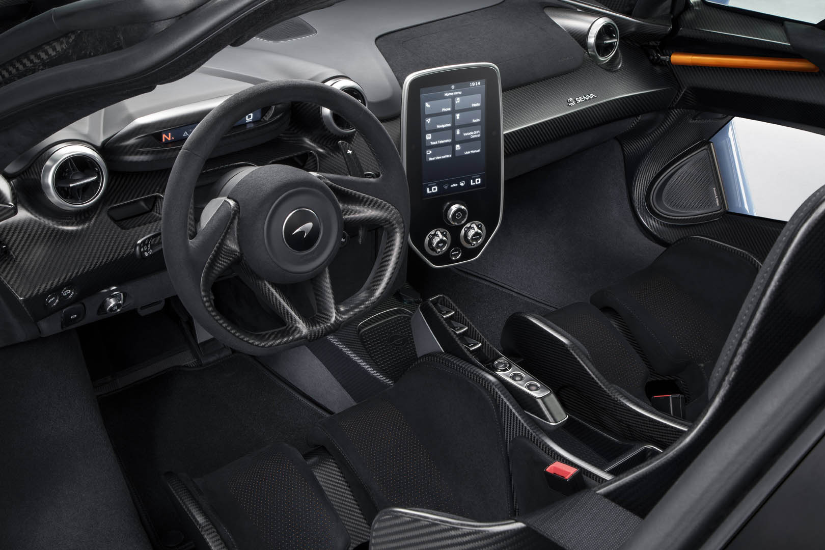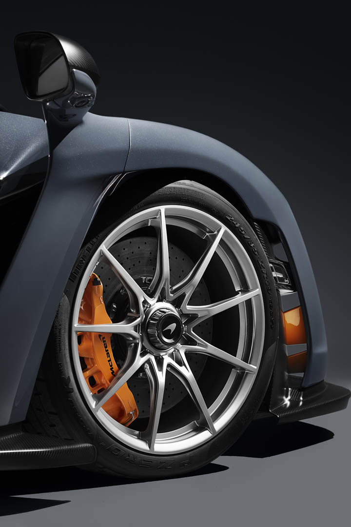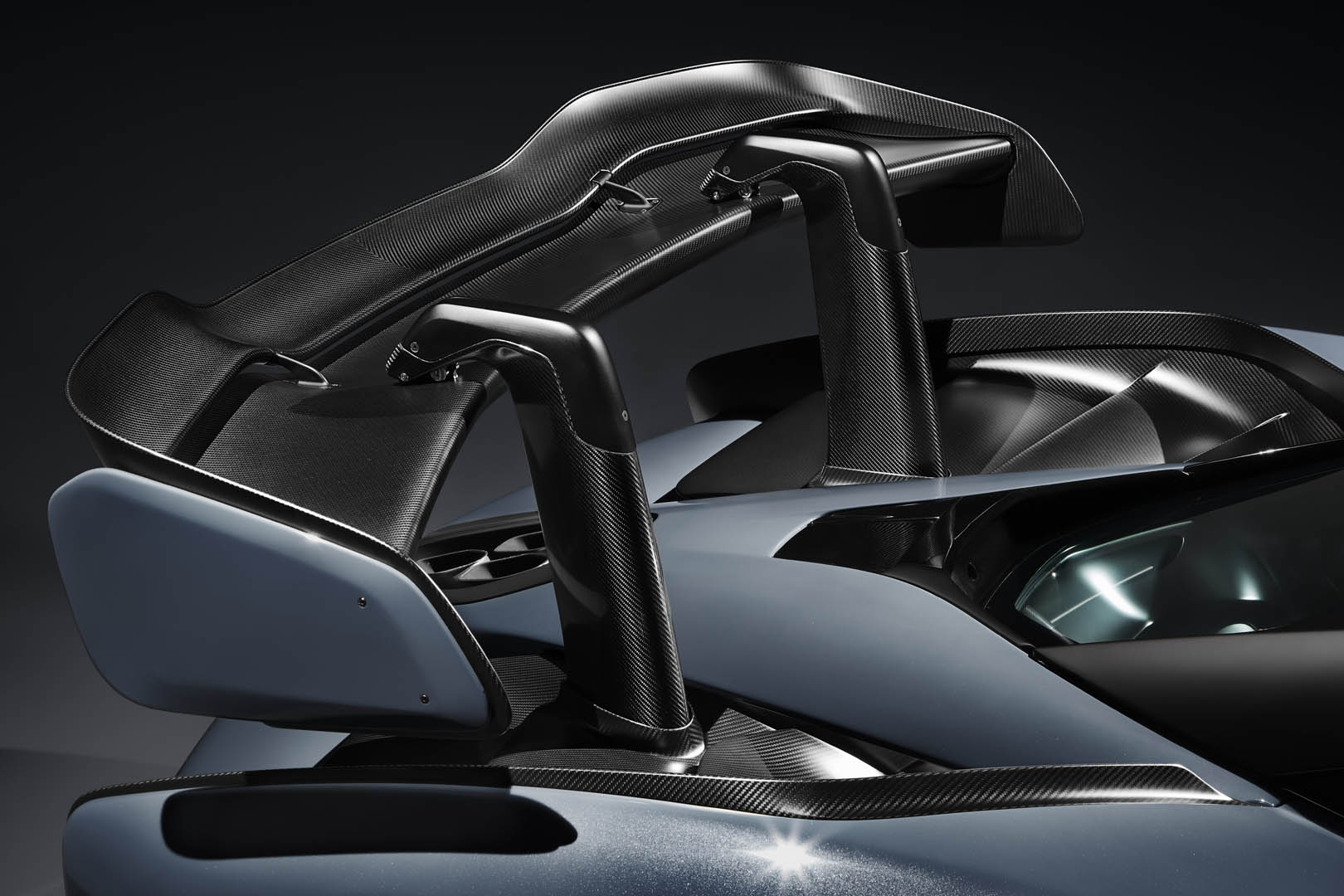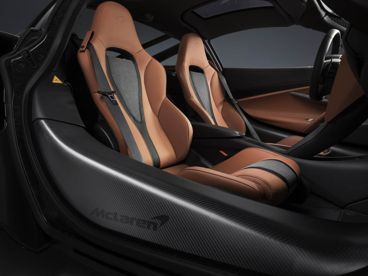 Setting off the Atlantic Blue paint are Dark Palladium exterior finishes, gloss finish Visual Carbon Fibre, and Zircon window surrounds. The stainless-steel sports exhaust has Titanium finishers and the twin-spoke lightweight wheels feature a bespoke Graphite Grey finish. The brakes – as on all McLaren 720Ss – are carbon-ceramic and for this special model feature black calipers with McLaren branding.