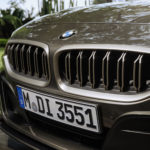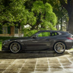 The Sparkling Lario exterior paintwork was specially created for the BMW Concept Touring Coupé. With embedded flakes of blue glass, its grey-brown hues achieve a unique impression of depth. The effect is completed by silver-bronze accents and the specially designed BMW kidney grille with longitudinal bars. The exclusive light-alloy wheels, measuring 20 inches at the front and 21 inches at the rear axle, provide a logical continuation of these colour accents in the 20-spoke radial design. The intricate implementation and discreet gold-coloured surfaces underline the vehicle’s elegant sporty character.