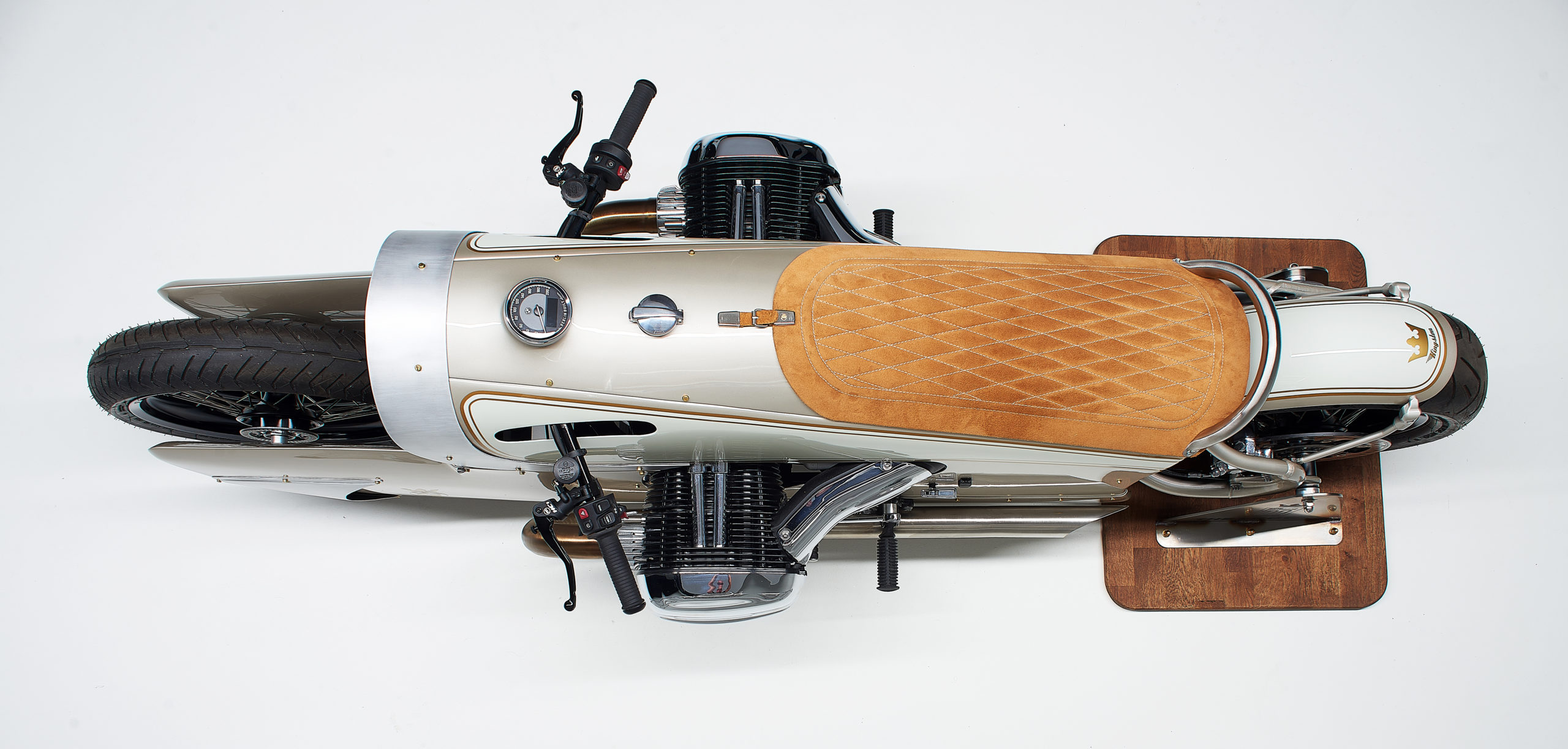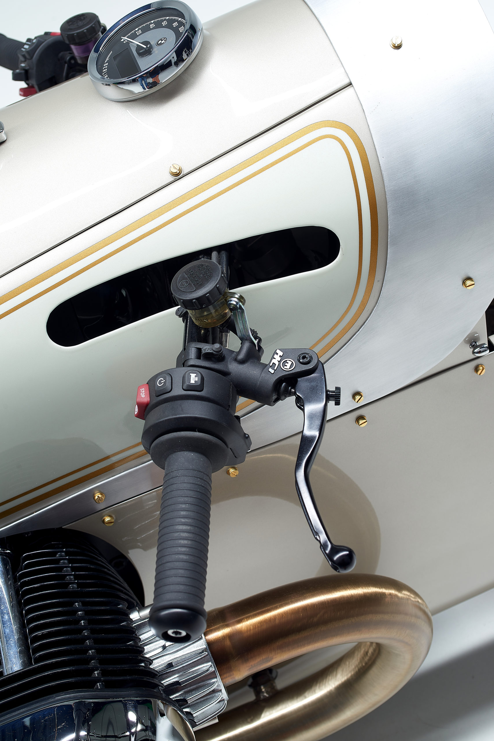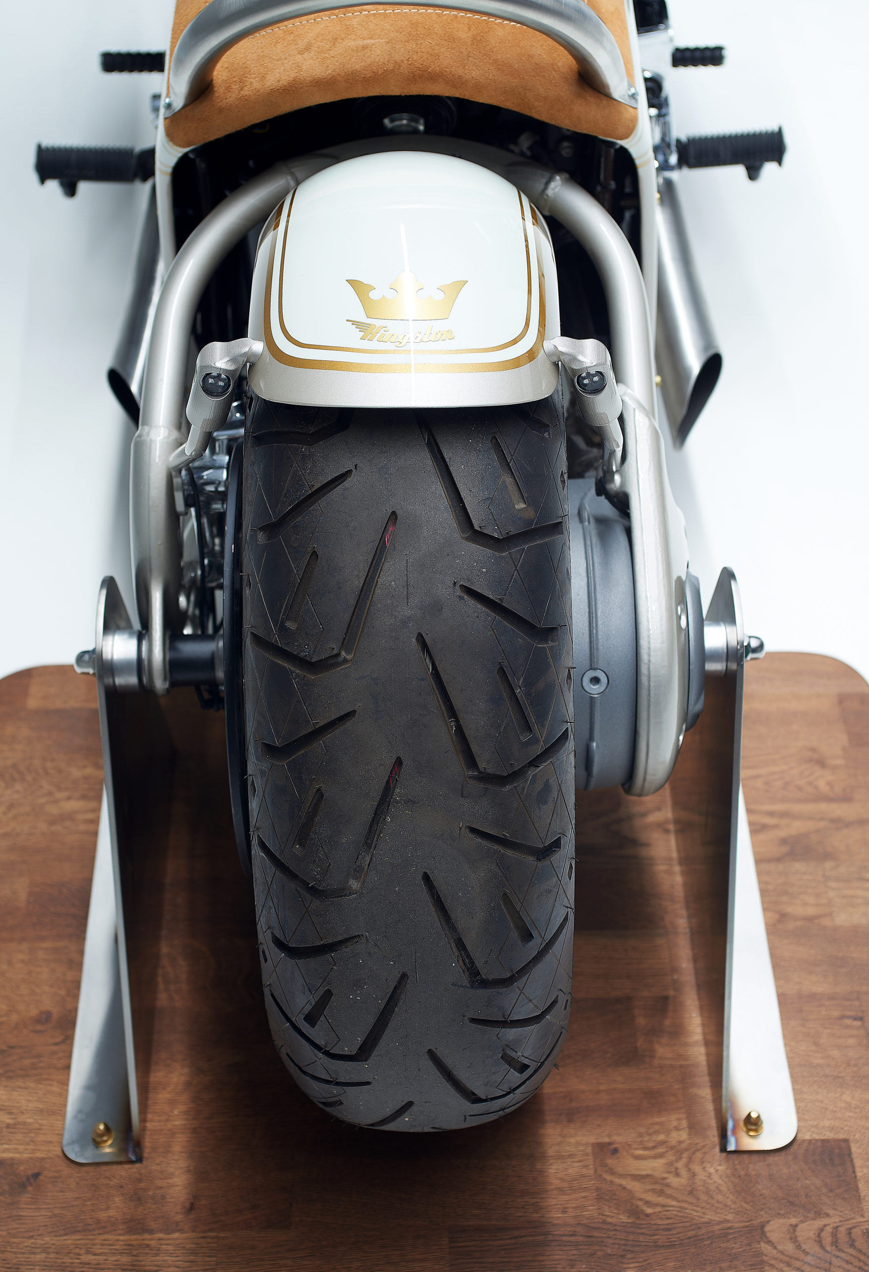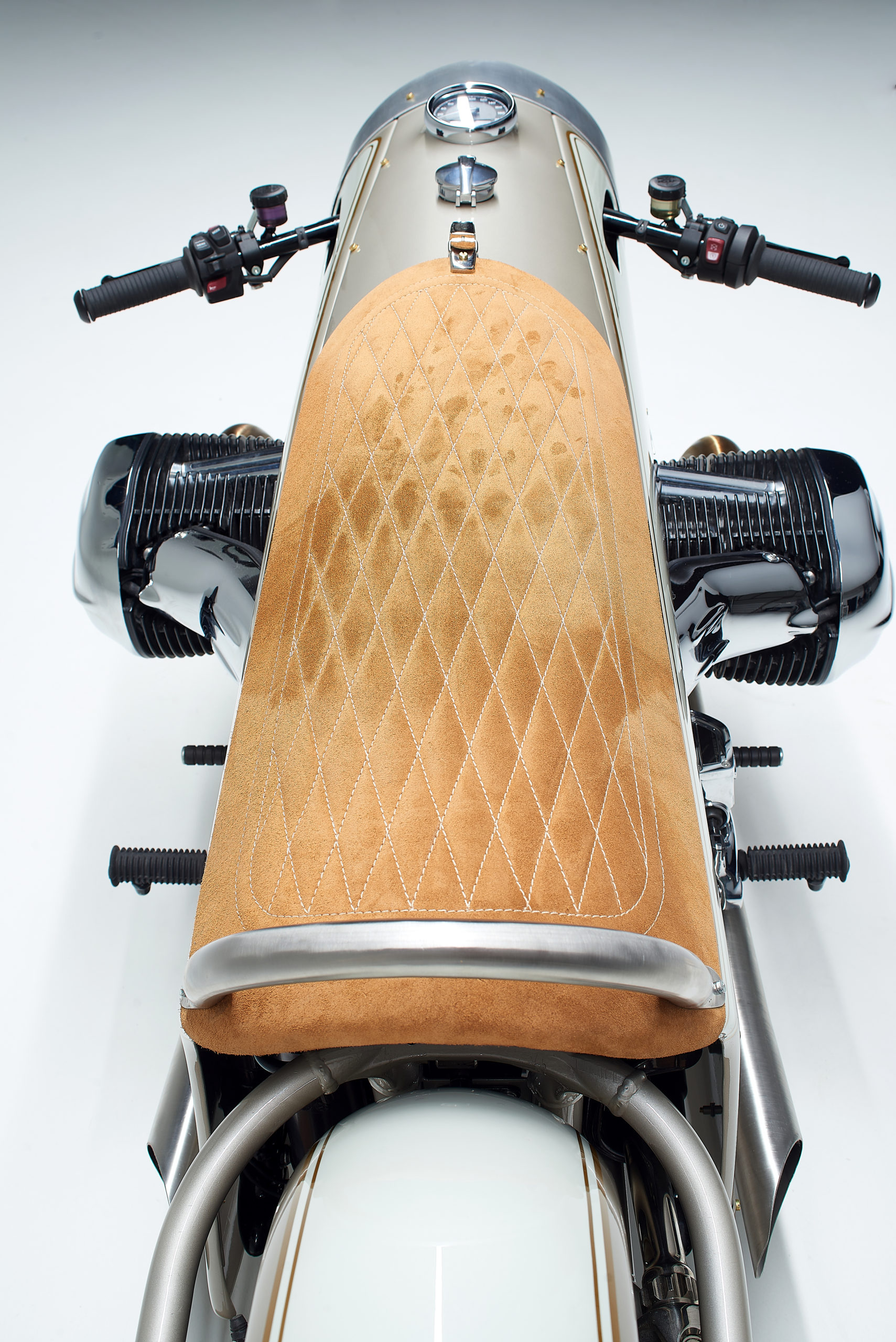 Numerous standard components such as the headlight, instrument, switch units and footrest system have been integrated perfectly into the spectacular concept of the R 18 The Crown. The clutch and handbrake fittings from Magura, the rear mudguard and brackets from Wunderkind and the saddle made from 2 mm thick aluminium sheet metal and covered with genuine leather are all harmonious additions.