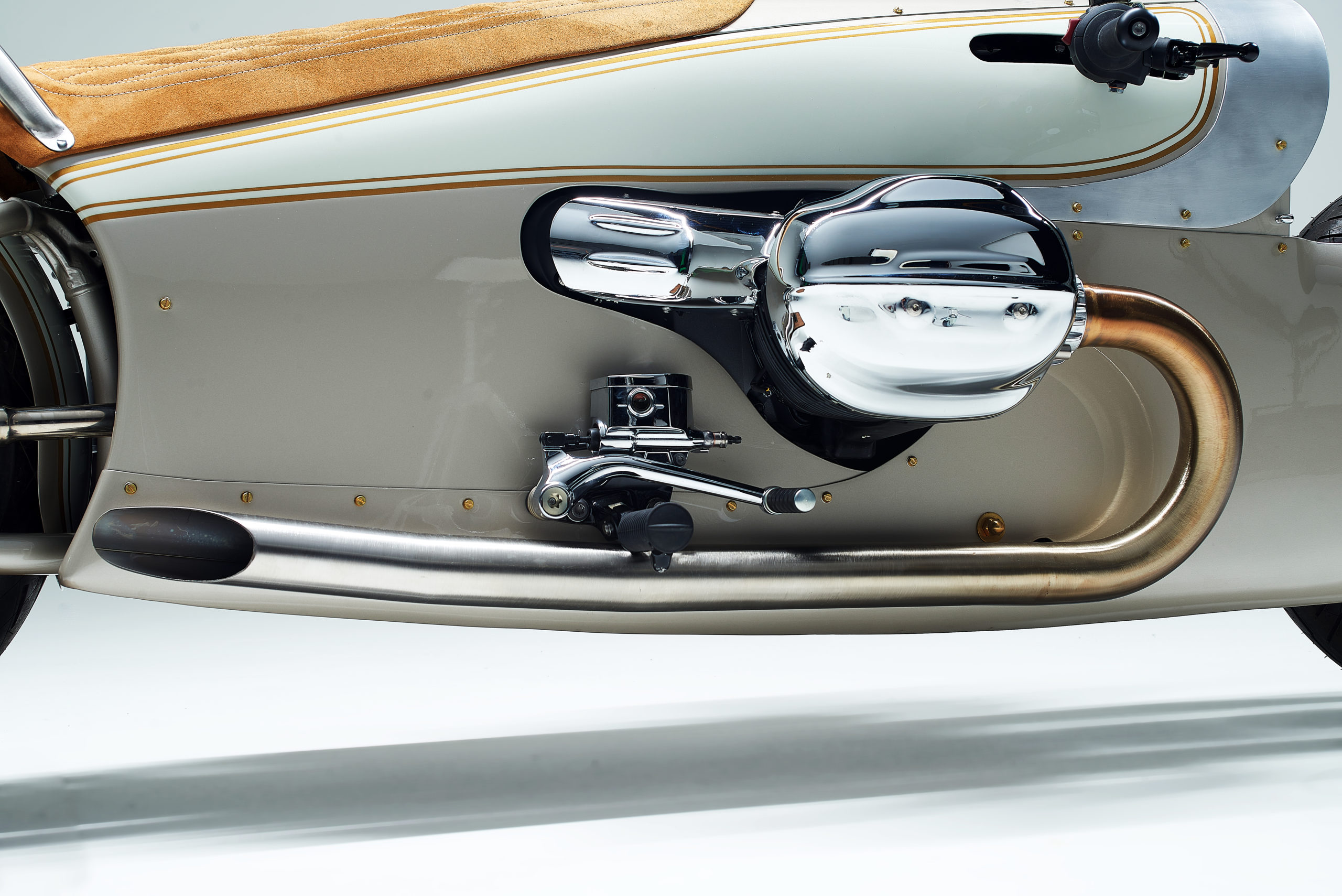 While the engine and rear suspension are the same as in the original, the two stainless steel exhaust manifolds are completely made by hand.