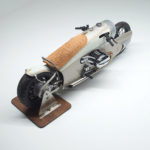 The 8-litre fuel tank and the body parts were made of 2 mm thick aluminium sheet metal, which was cut, bent and driven by hand.
