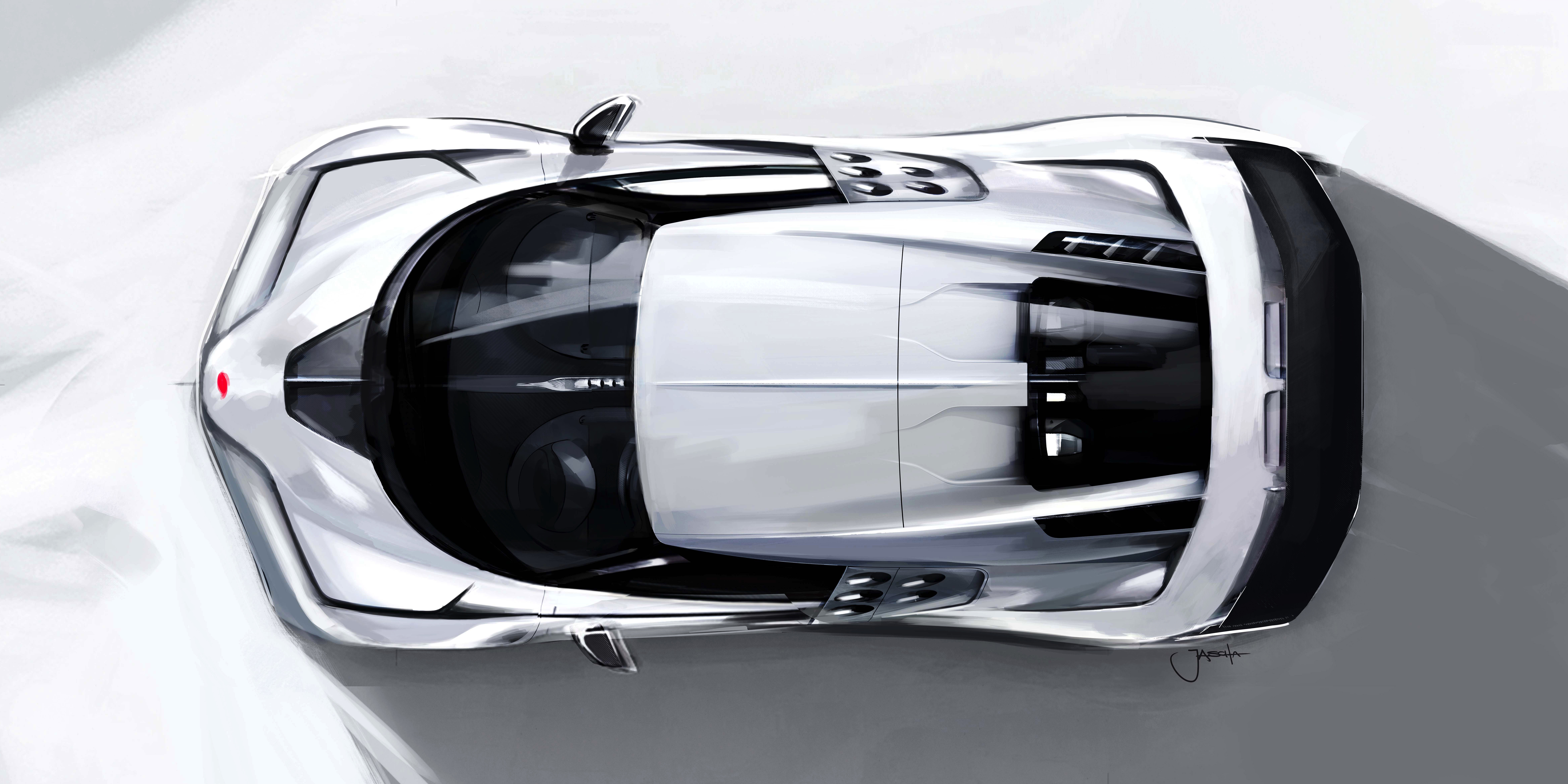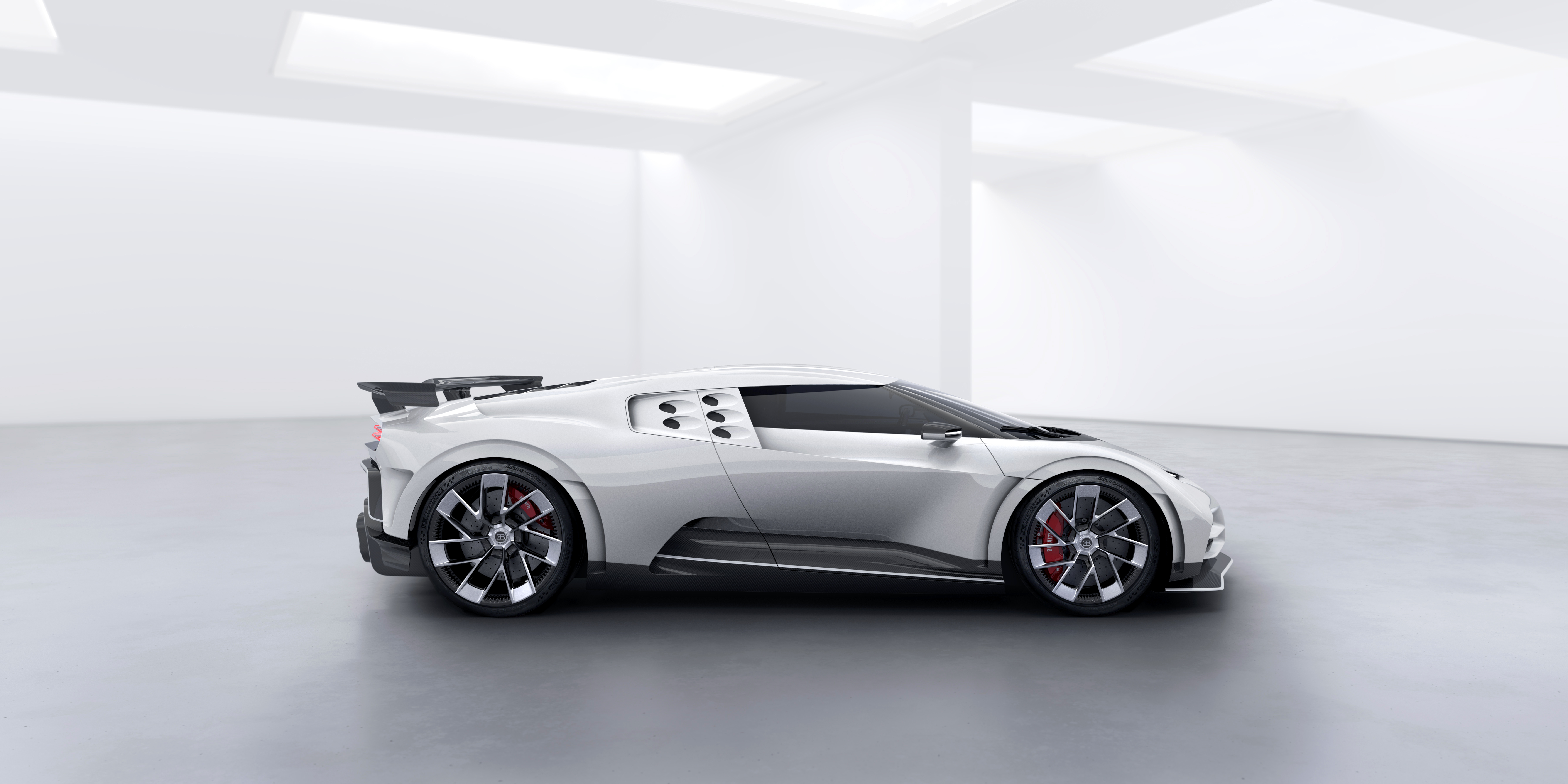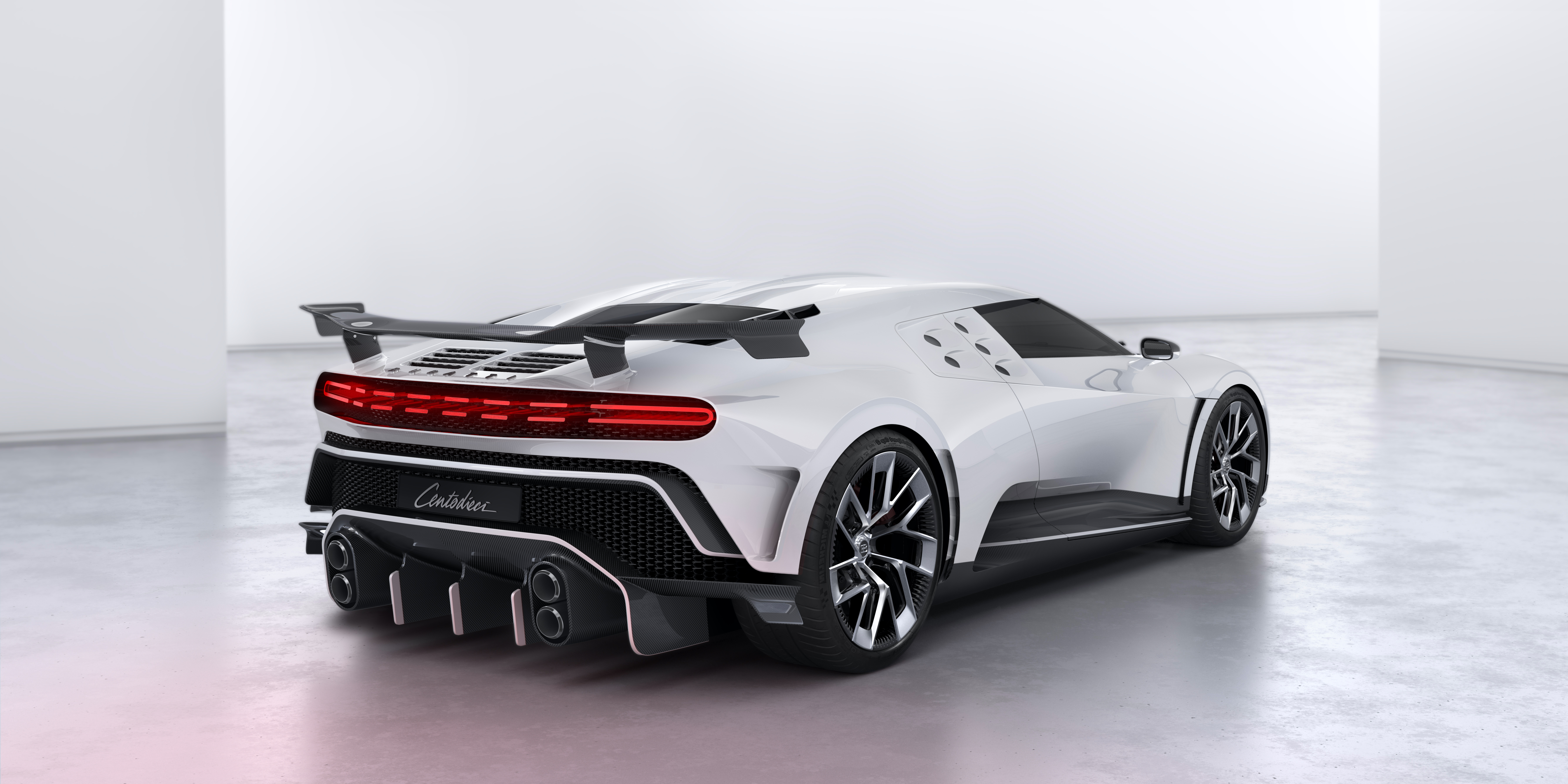 “We faced a number of technical challenges in terms of the development and design of the Centodieci,” says Achim Anscheidt. The EB110 is a very flat, wedge-shaped and graphically quasi two-dimensional super sports car of the late 1980s. “Transporting this classic look into the new millennium without copying it was technically complex, to say the least. We had to create a new way of combining the complex aerothermal requirements of the underlying Chiron technology with a completely different aesthetic appearance.”