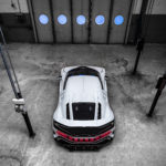 The front is subordinated to the generally low geometry of the vehicle, despite its original, predominant cooling surface. The newly developed, complex and very narrow headlamps with integrated LED daytime running lights provide the perfect match. Thanks to the newly developed lighting elements, we were stylistically free in the front and rear sections to pay respectful homage to the EB110 while at the same time transposing this appealing visual reminiscence into modern technology,” says Achim Anscheidt.