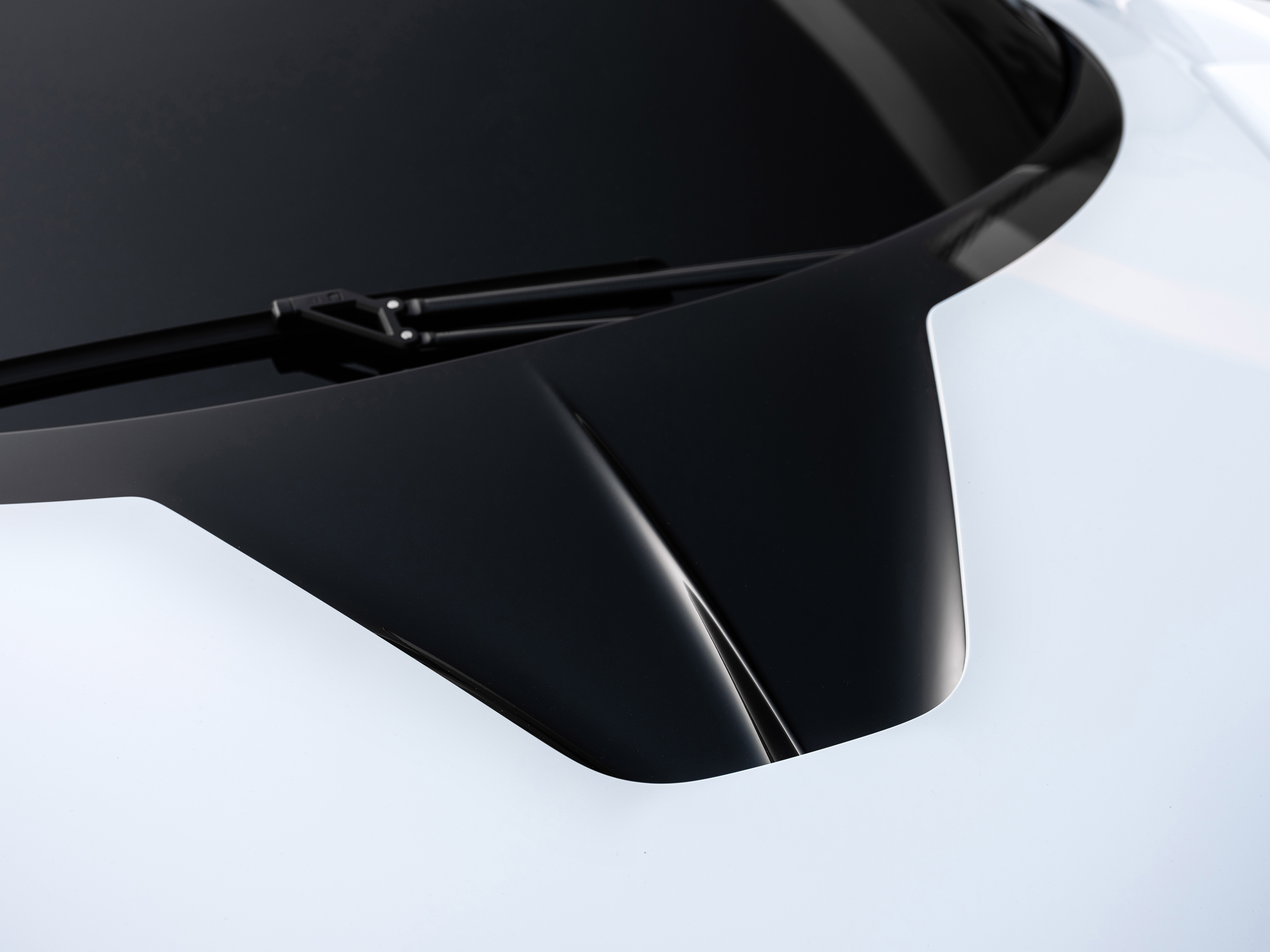 The flat, horseshoe-shaped radiator at the front reveals its depth only from the side view, with the newly developed, deep-seated front spoiler and the three-section air intakes providing a perfect match. The front of the Centodieci drops very low. The iconic Bugatti horseshoe has been reduced accordingly, while the Bugatti logo Macaron sits on the hood, which is interrupted at the centre by a black element. “This allowed us to rekindle memories of EB110,” says Achim Anscheidt. The optimised front section with the extended front splitter and the airflow through the hood further improve the car’s aerodynamics.