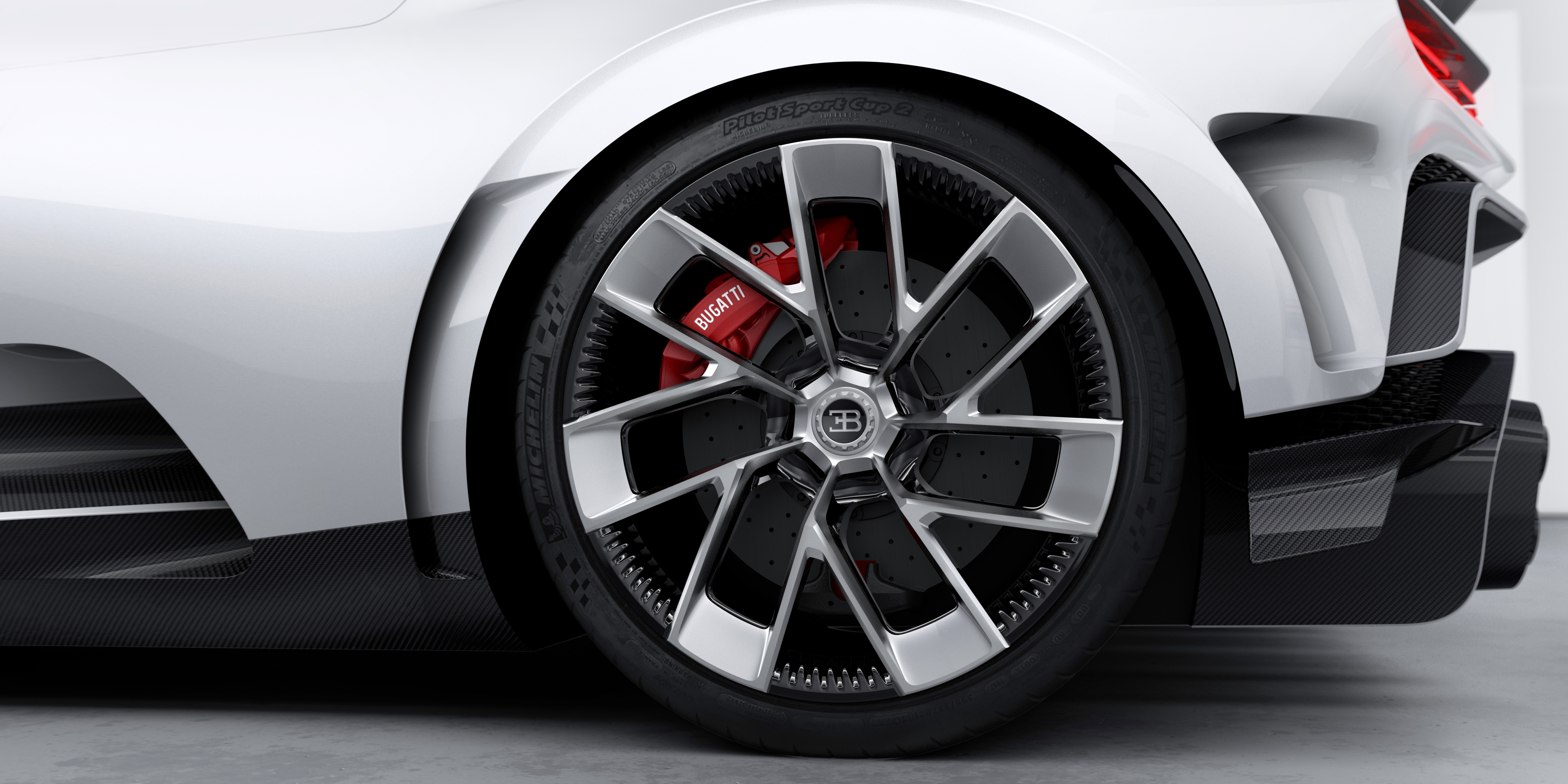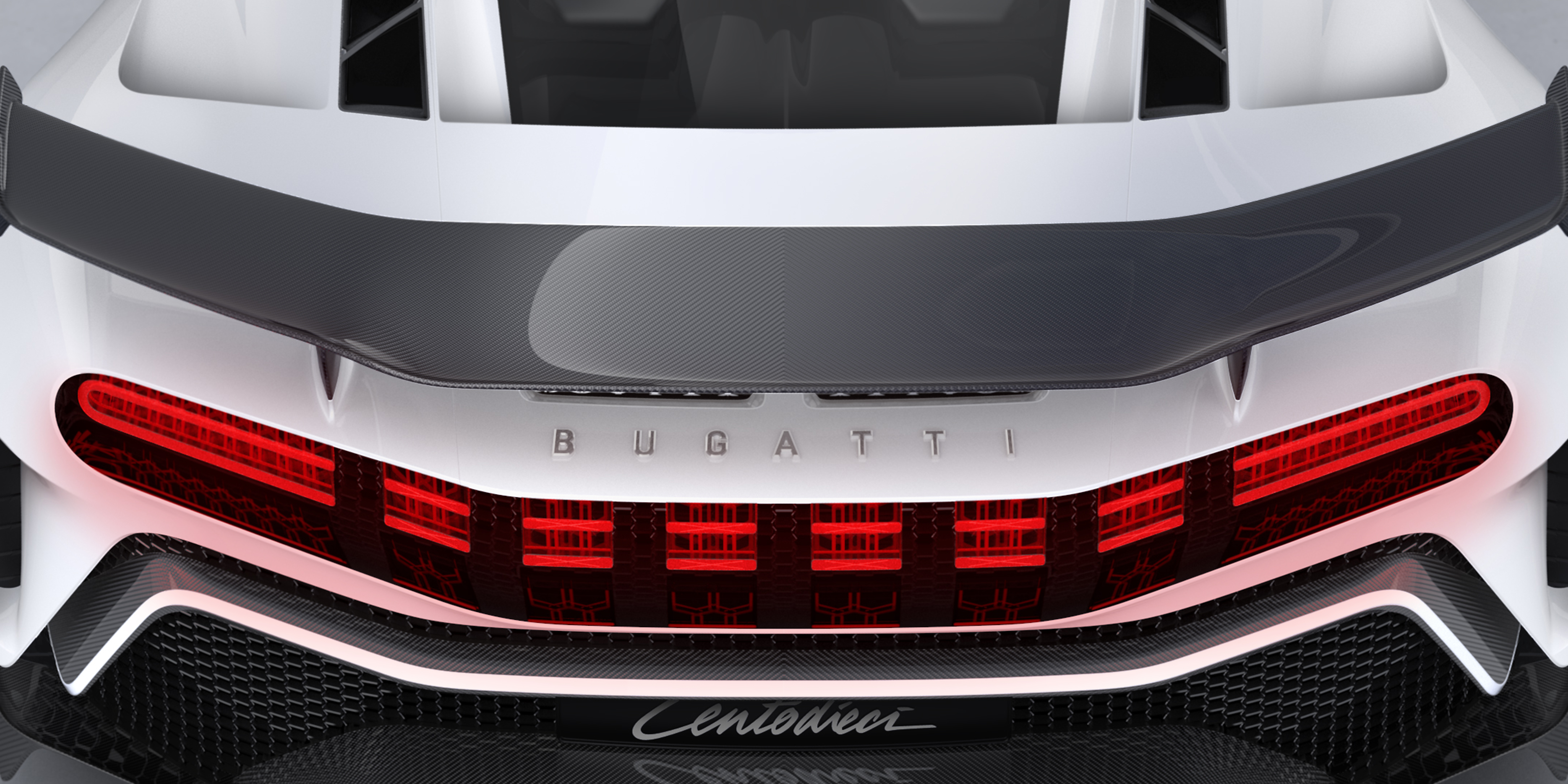 “We incorporated the wedge-shaped design in the development process but we took it in a new direction,” says the designer. Instead of copying the classic Italian wedge in which the muscle runs from the rear to the front wheel, suggesting a dynamic leap forward, Bugatti strikes out on a new path in the Centodieci. The otherwise dominant Bugatti line, the C line on the B pillar, gives way to a new design Significantly smaller than the Chiron2, five round air inserts – positioned in the form of a diamond – ensure sufficient air intake for the iconic 16-cylinder engine. In this way, Bugatti has brought forward the visually leaping wedge of the EB110 SS into a new millennium.