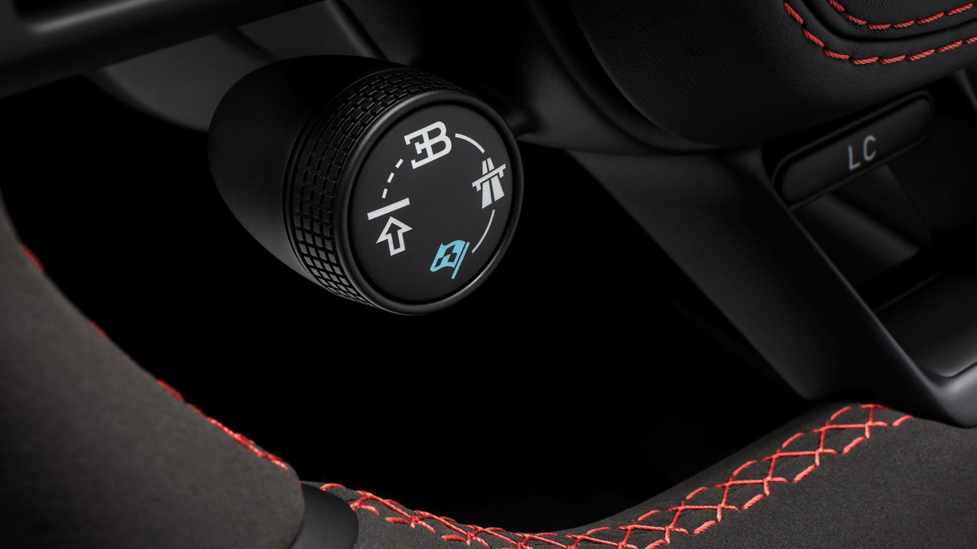 The Chiron Sport benefits from a new dynamic handling package. The Bugatti developers have defined a stiffer suspension. This includes a new control strategy for the shock absorbers, which react 10 percent more stiffly than on the Chiron on average. The steering has also been modified without sacrificing its outstanding direct feel and its calculable performance. These new settings only take effect in the Handling mode of the Chiron Sport, which is therefore distinguished from the EB mode more clearly for the driver.