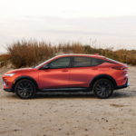 The body side of the vehicle encompasses sculptural beauty with powerful fender forms and a sculpted waistline that create the perception of fluid motion. Bright trim precisely incorporated around the glass adds to the vehicle’s expressiveness by catching and reflecting light at different angles.