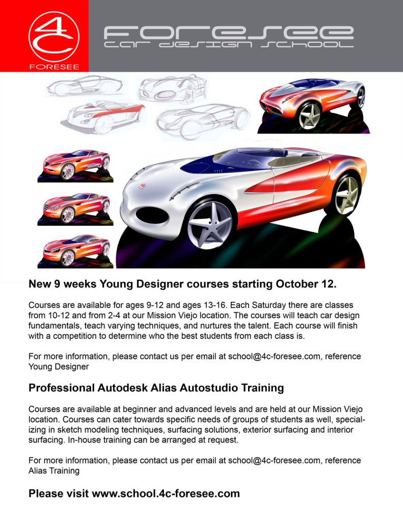 In 2000 the school started out as the Foresee Online Car Design School, which also cooperated with DaMert on The Professional Car Design Kit. After pioneering the implementation of 2D and 3D computer technologies within the car design process, Foresee also provided professional in-house training on Alias 3D surfacing software to our global OEM clients in Europe and Japan.