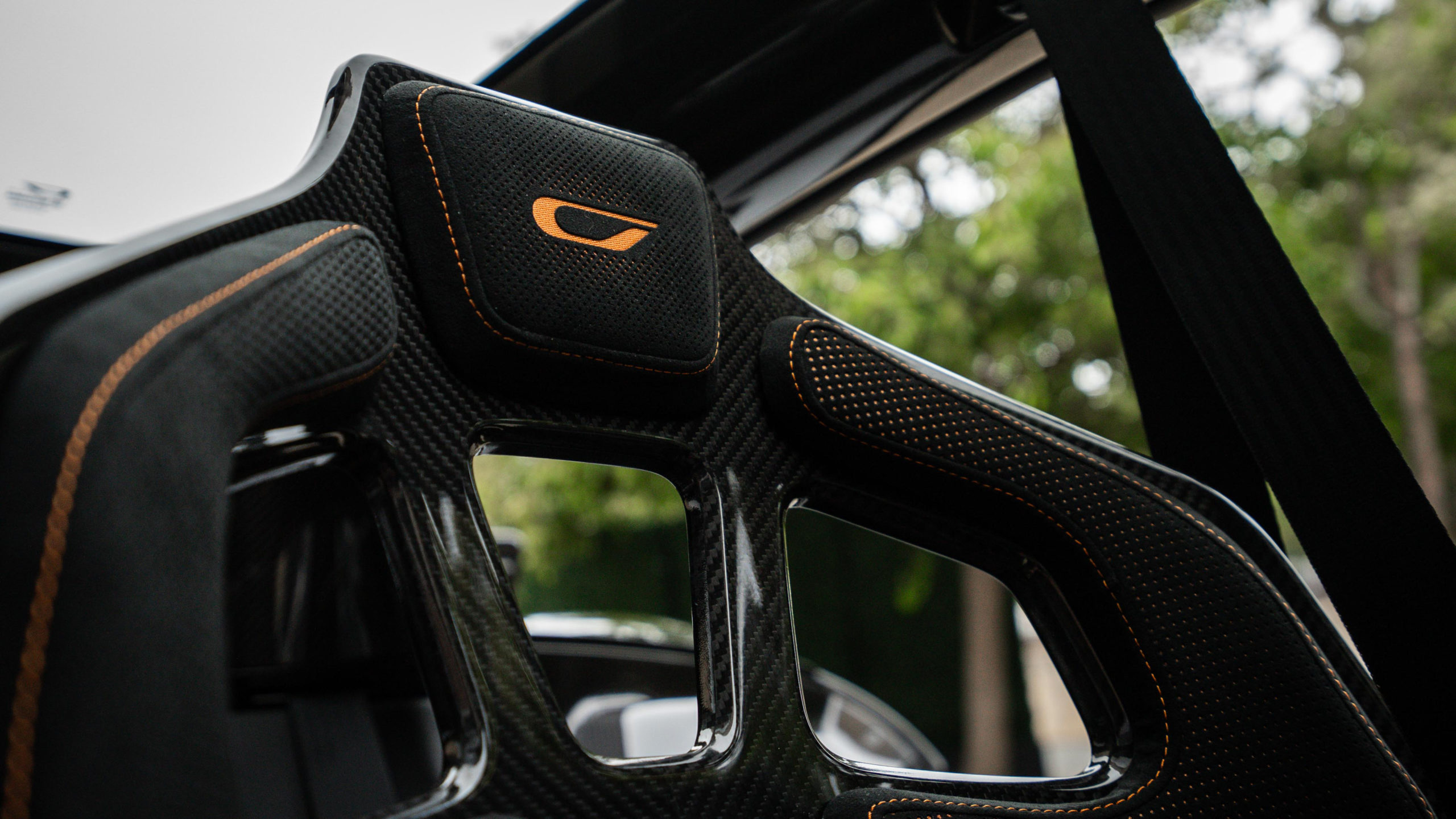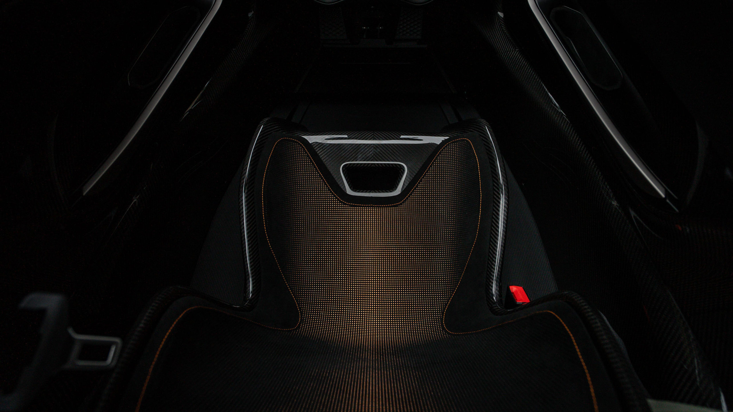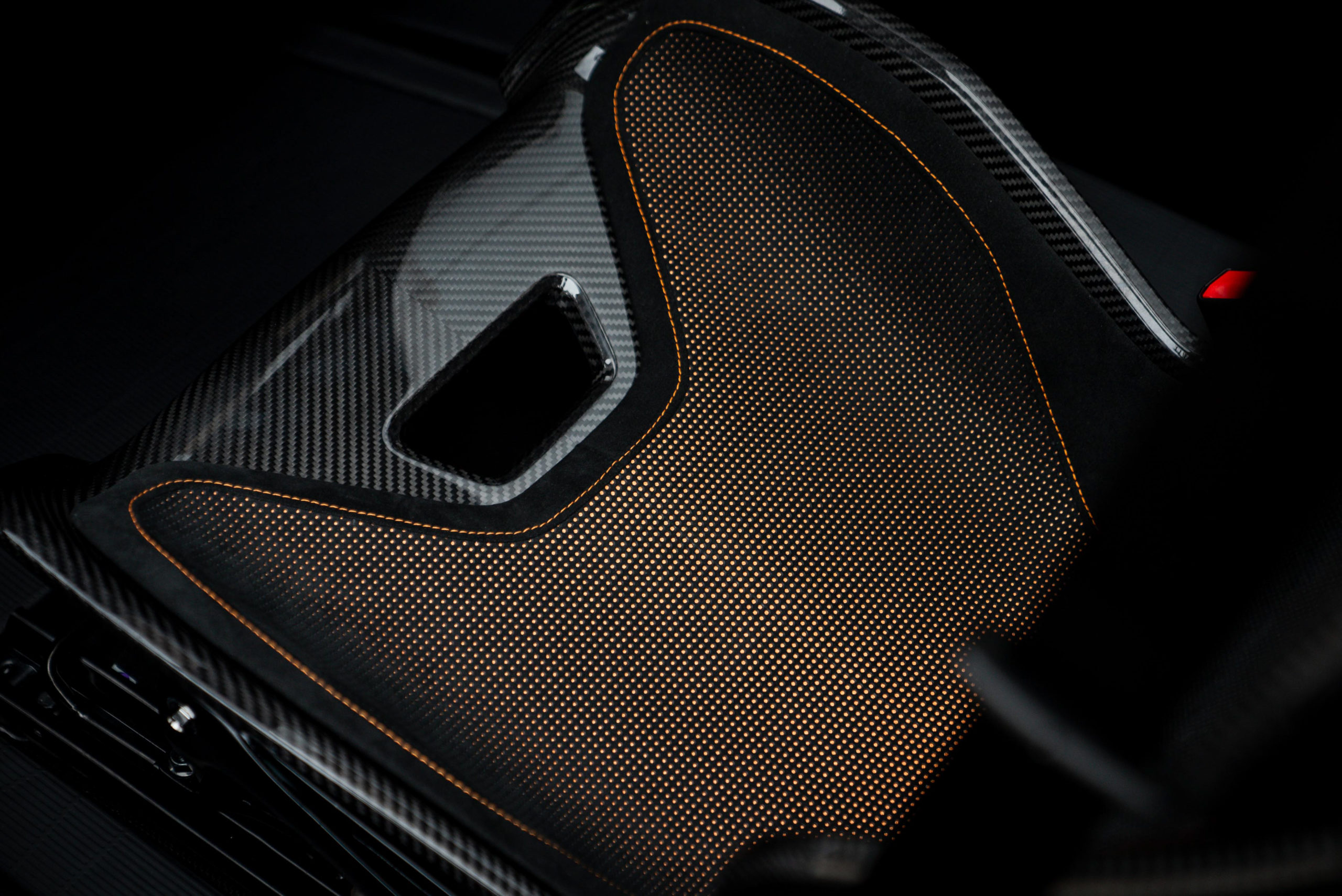 The Blackbird interior receives the same considered approach as the exterior.Trimmed parts are covered in an exclusive Alcantara pattern created especially for the SR-71 livery, acknowledging the character and technology behind the legendary stealth plane. The deep black material is laser-etched with a contrasting, perforated backing in afterburner orange, radiating from the center of the seats, creating a sense of expansiveness.