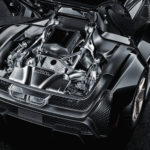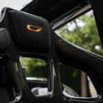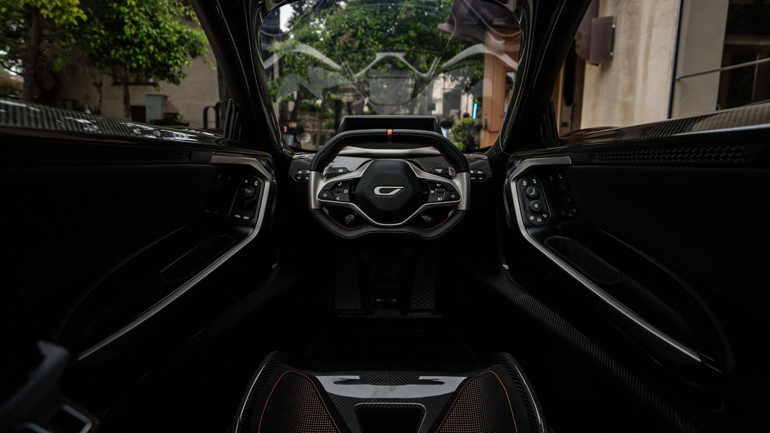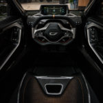 This is complemented by black leather on door spears and steering wheel. Satin titanium printed parts further elevate the interior’s exposed structural network.