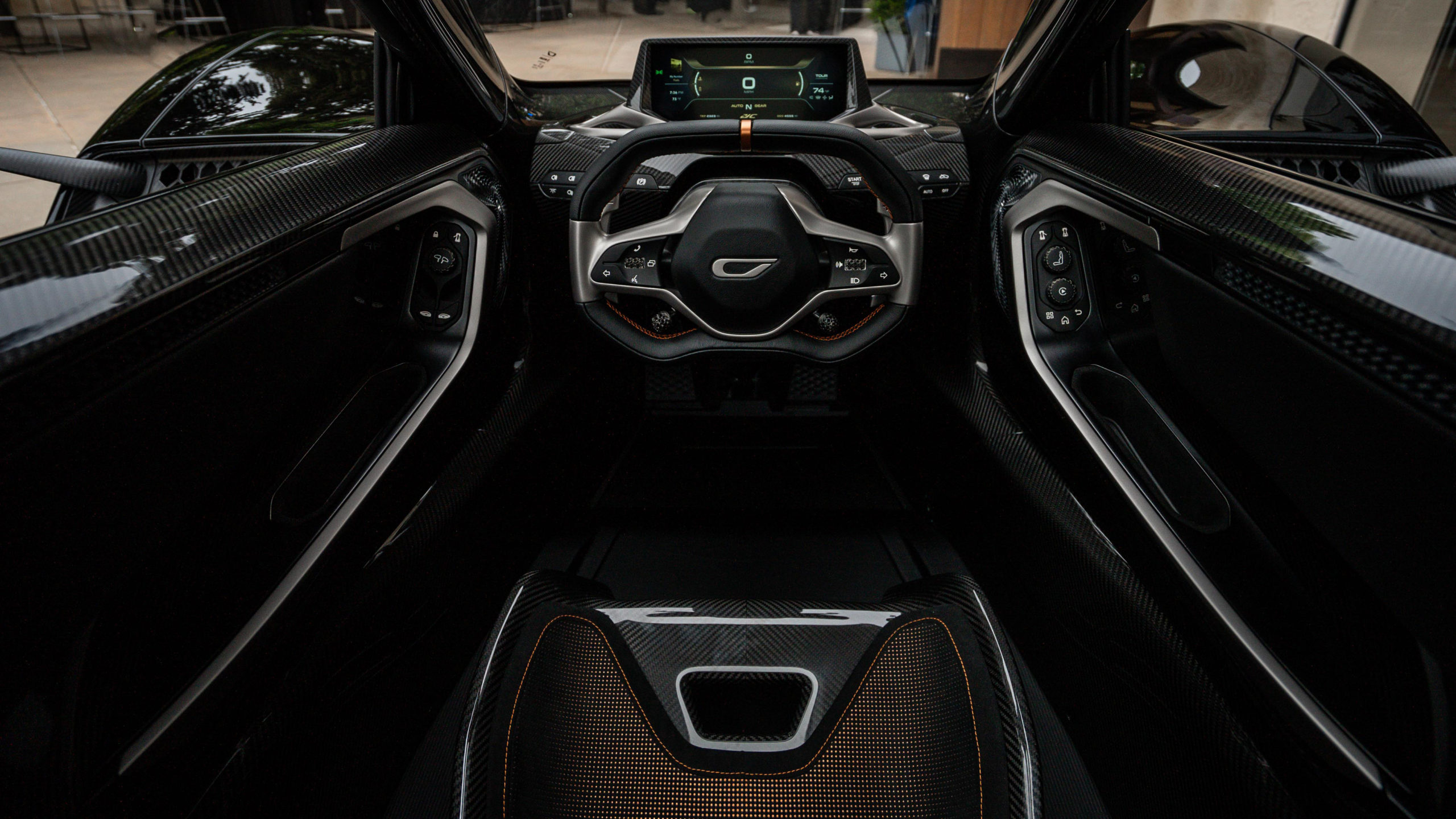 The approach of simple sophistication carries through to the interiors monochromatic “shade and shadow” tones of the same sky blue exterior color.Artisan carbon fiber weave forms the visual framework for the door panels,inline seating,and center control display panels. Co-Founders Kevin and Lukas Czinger were on hand throughout the day, meeting with owners, prospects and dealers and answering questions about the latest updates at Czinger.