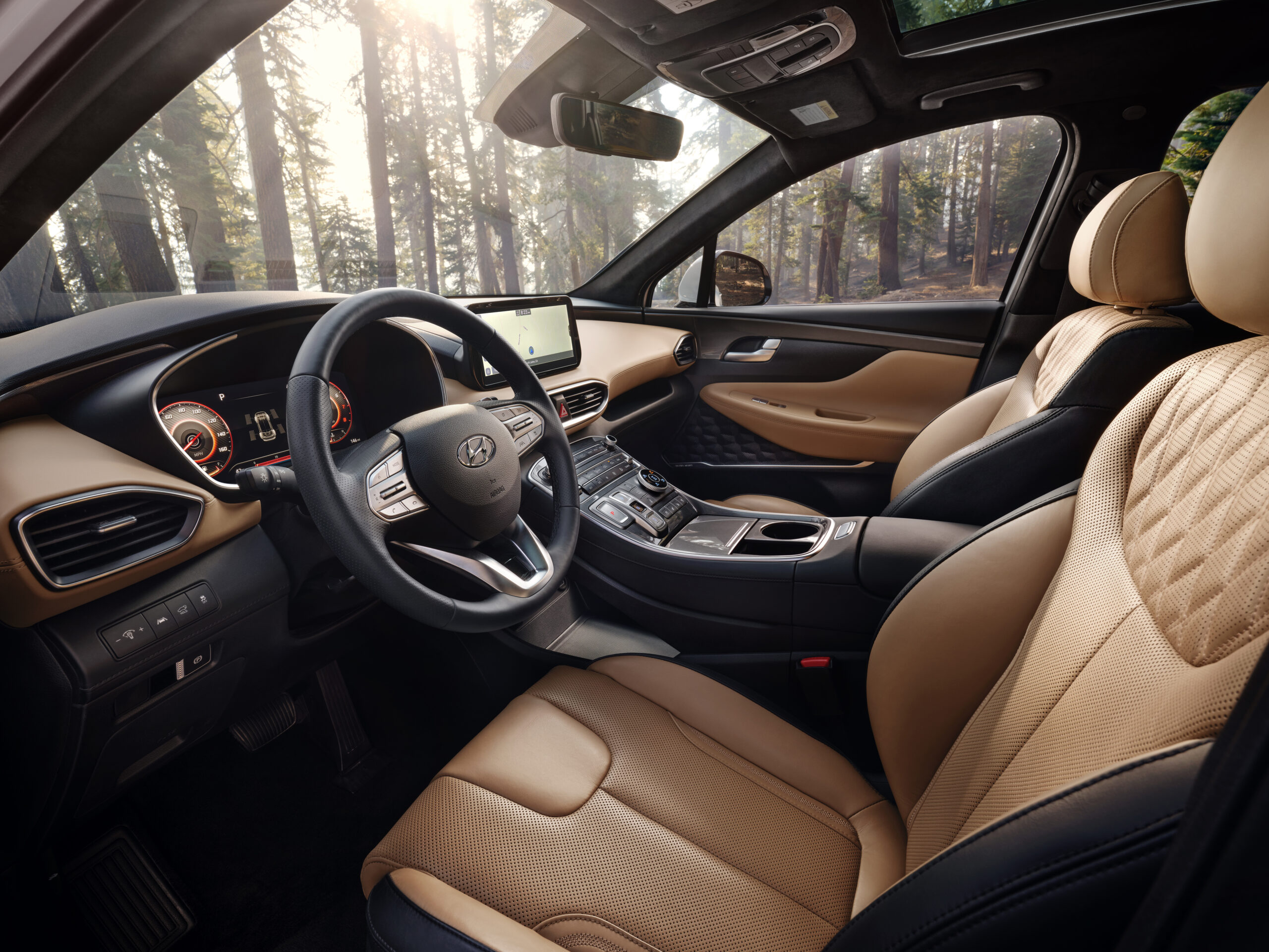 The cabin of the Santa Fe Plug-in Hybrid Limited AWD is awash with technology, centered around the 10.25-inch touchscreen infotainment system. The user interface is intuitive and easy to navigate, with crisp graphics and quick response times. Apple CarPlay and Android Auto come standard, allowing seamless integration with smartphones. The 12.3-inch digital instrument panel provides clear and customizable information, enhancing the overall driving experience.