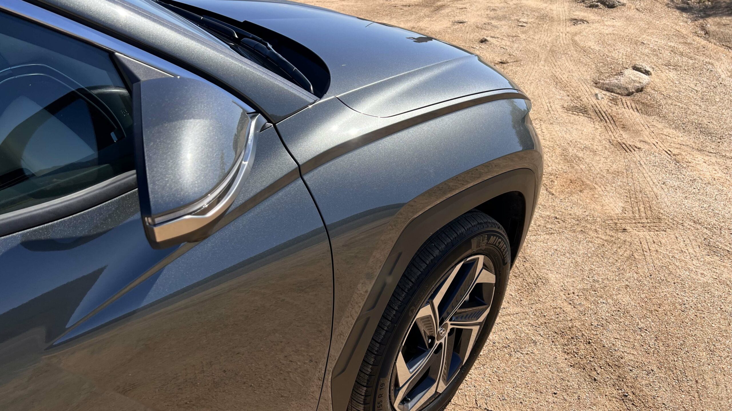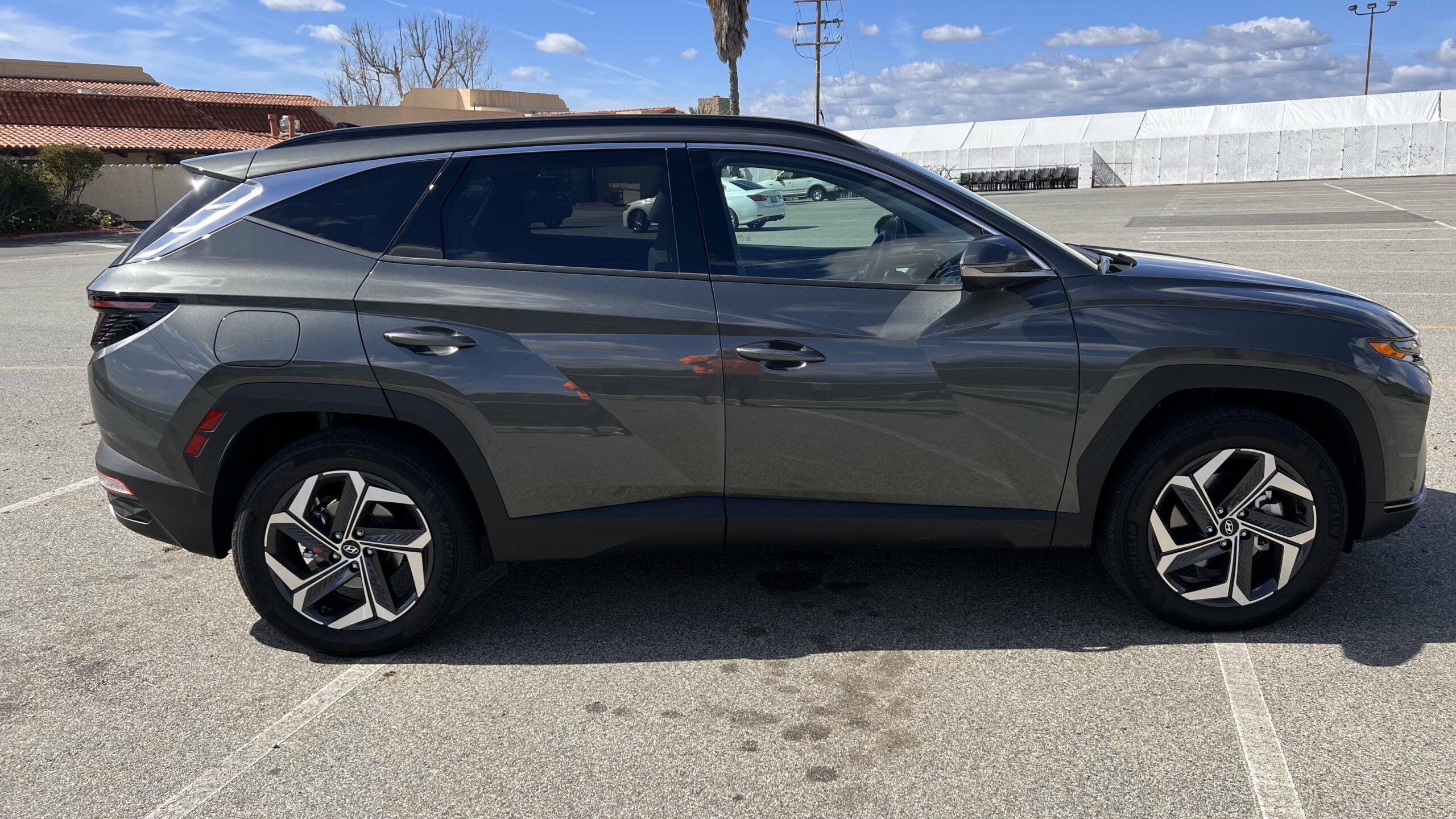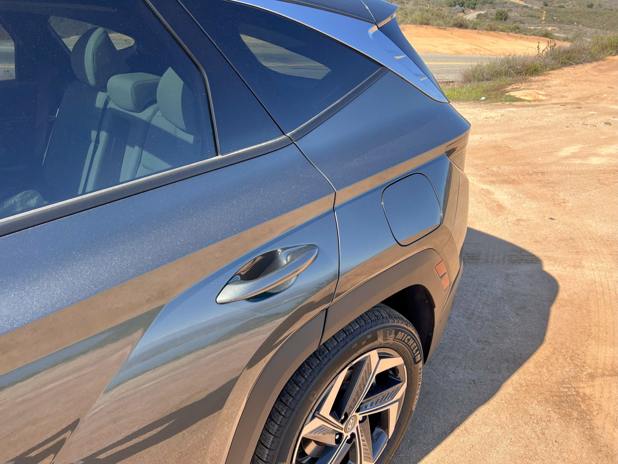 - Side Profile: Moving to the side profile, the Tucson PHEV features a slightly raised beltline and a floating roof design, giving it a sporty yet elegant appearance. The 19-inch alloy wheels (standard on higher trims) add to the overall aesthetic, while the chrome window surrounds and door handles provide a touch of refinement.