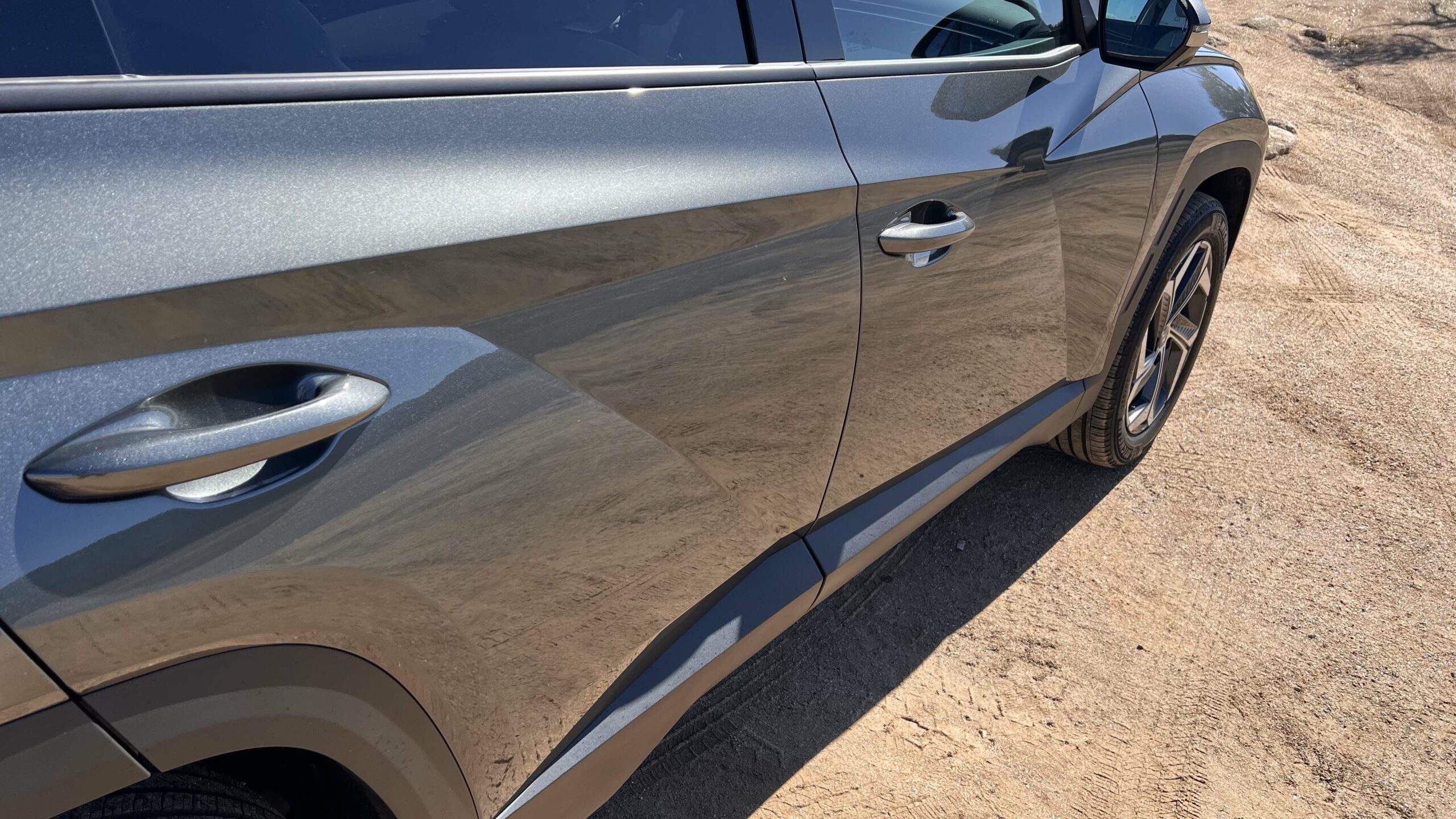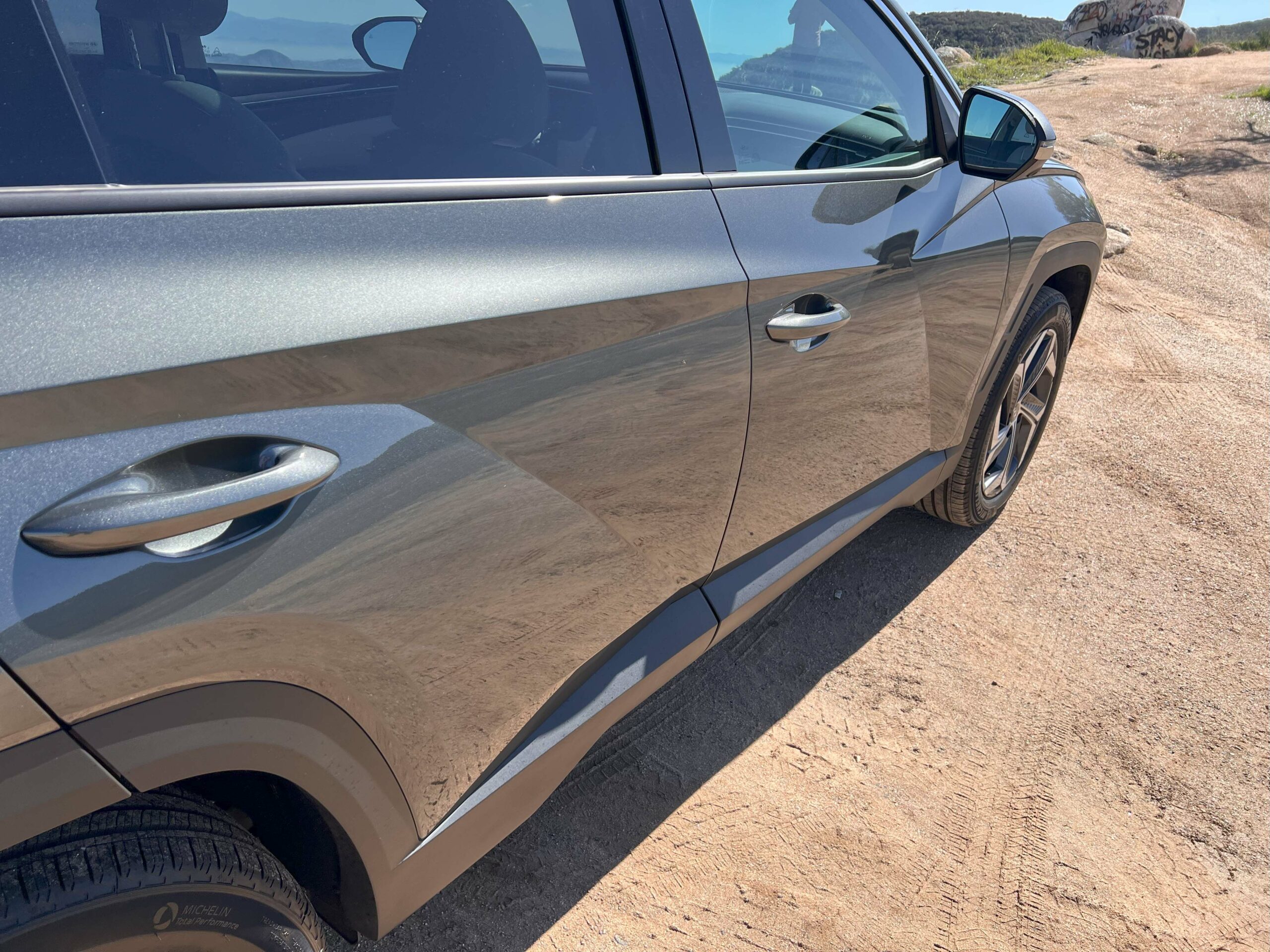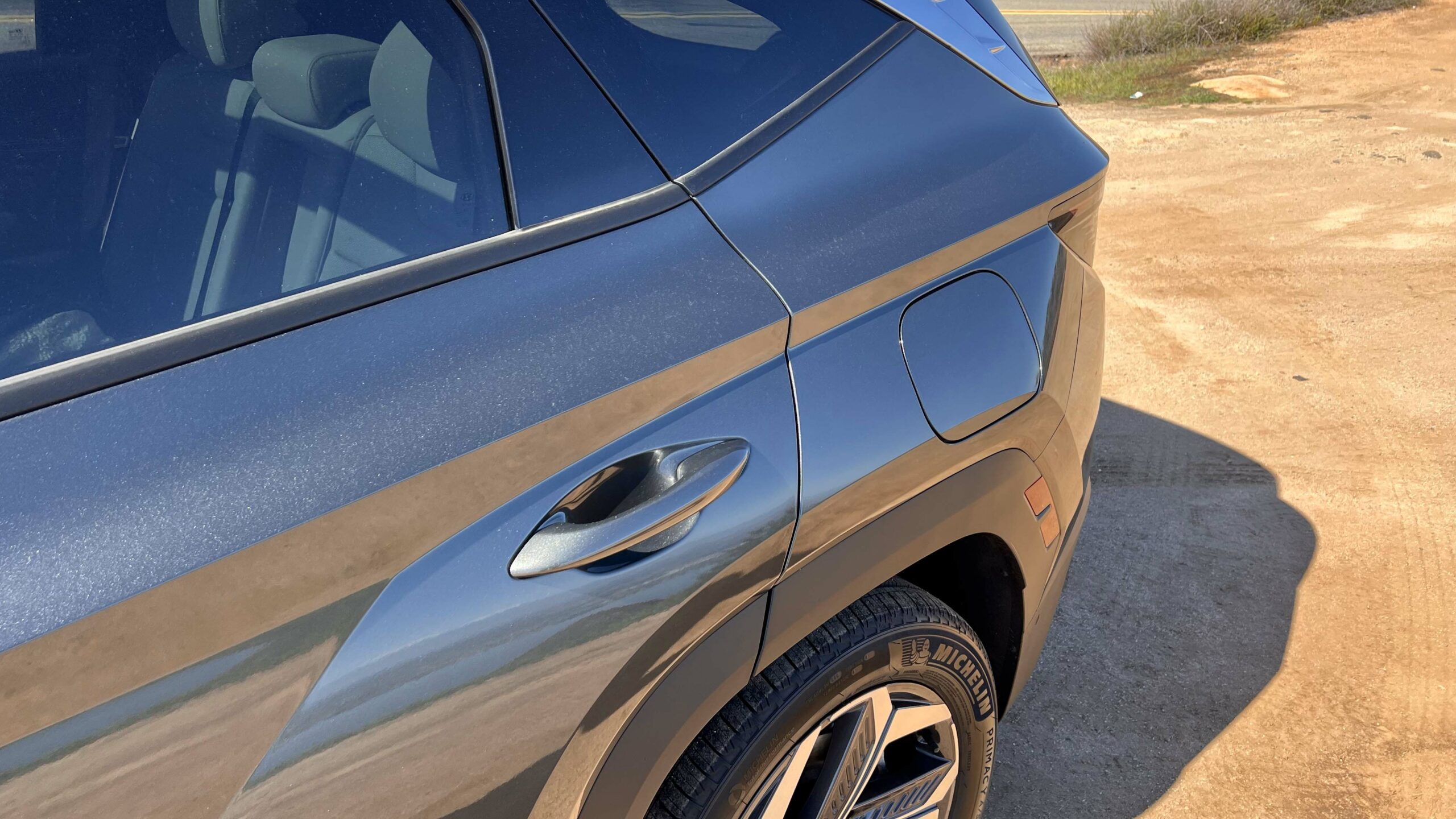 - Side Profile: Moving to the side profile, the Tucson PHEV features a slightly raised beltline and a floating roof design, giving it a sporty yet elegant appearance. The 19-inch alloy wheels (standard on higher trims) add to the overall aesthetic, while the chrome window surrounds and door handles provide a touch of refinement.
