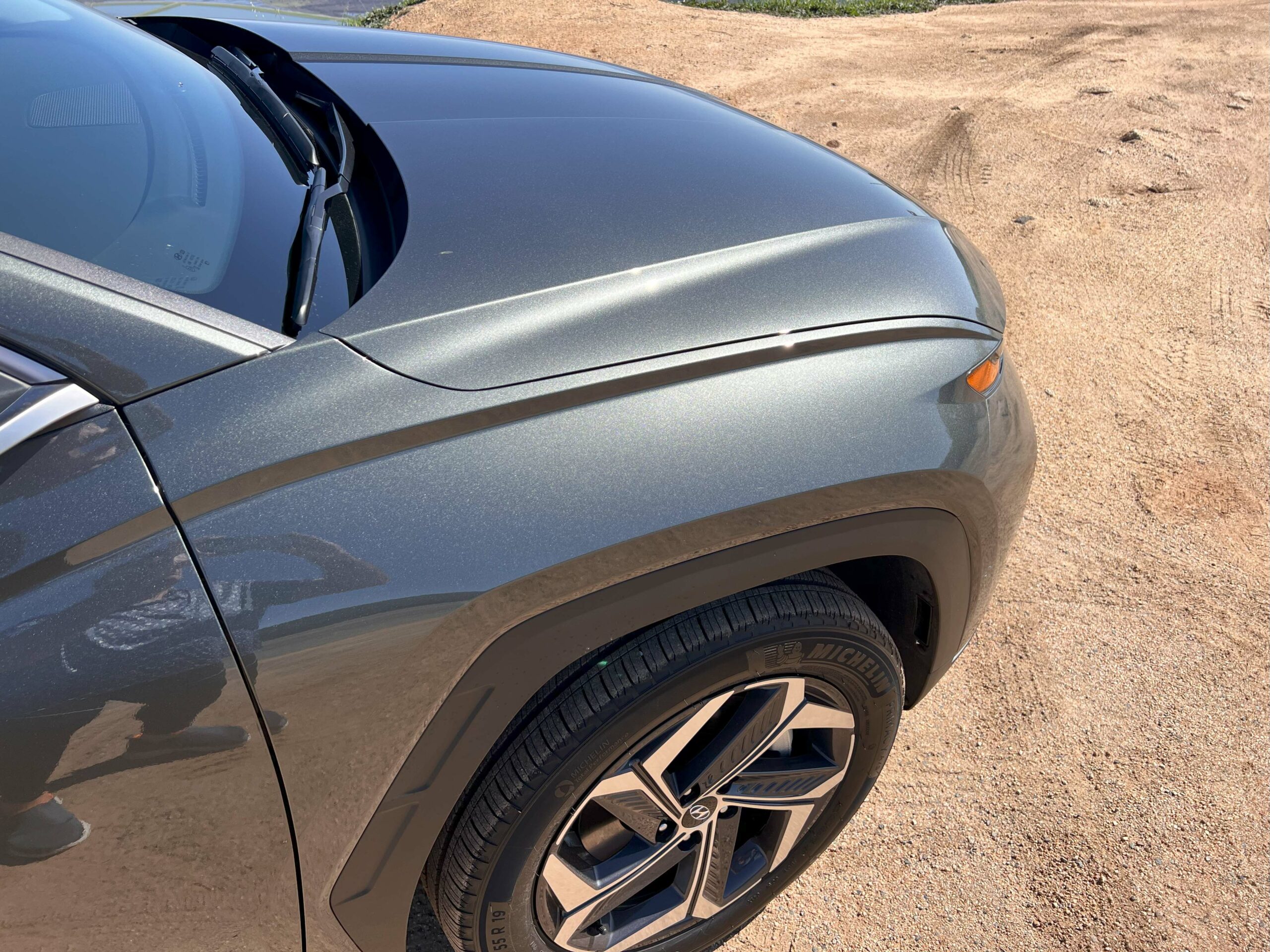 The exterior design of the Tucson PHEV is sleek and modern, with a striking presence on the road. Hyundai has retained the Tucson’s signature cascading grille, which now features an intricate pattern and chrome accents, giving the front end a sophisticated look. The LED headlights and daytime running lights add a touch of premium flair, while the sculpted body lines create a sense of dynamism.