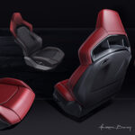 Cloth and leatherette seats are standard, with premium options including heated Black Nappa leather and Demonic Red Nappa leather seats. High-backed fixed headrest seats embellished with a unique pass through are available with Plus Package, Track Package and Carbon & Suede Package.