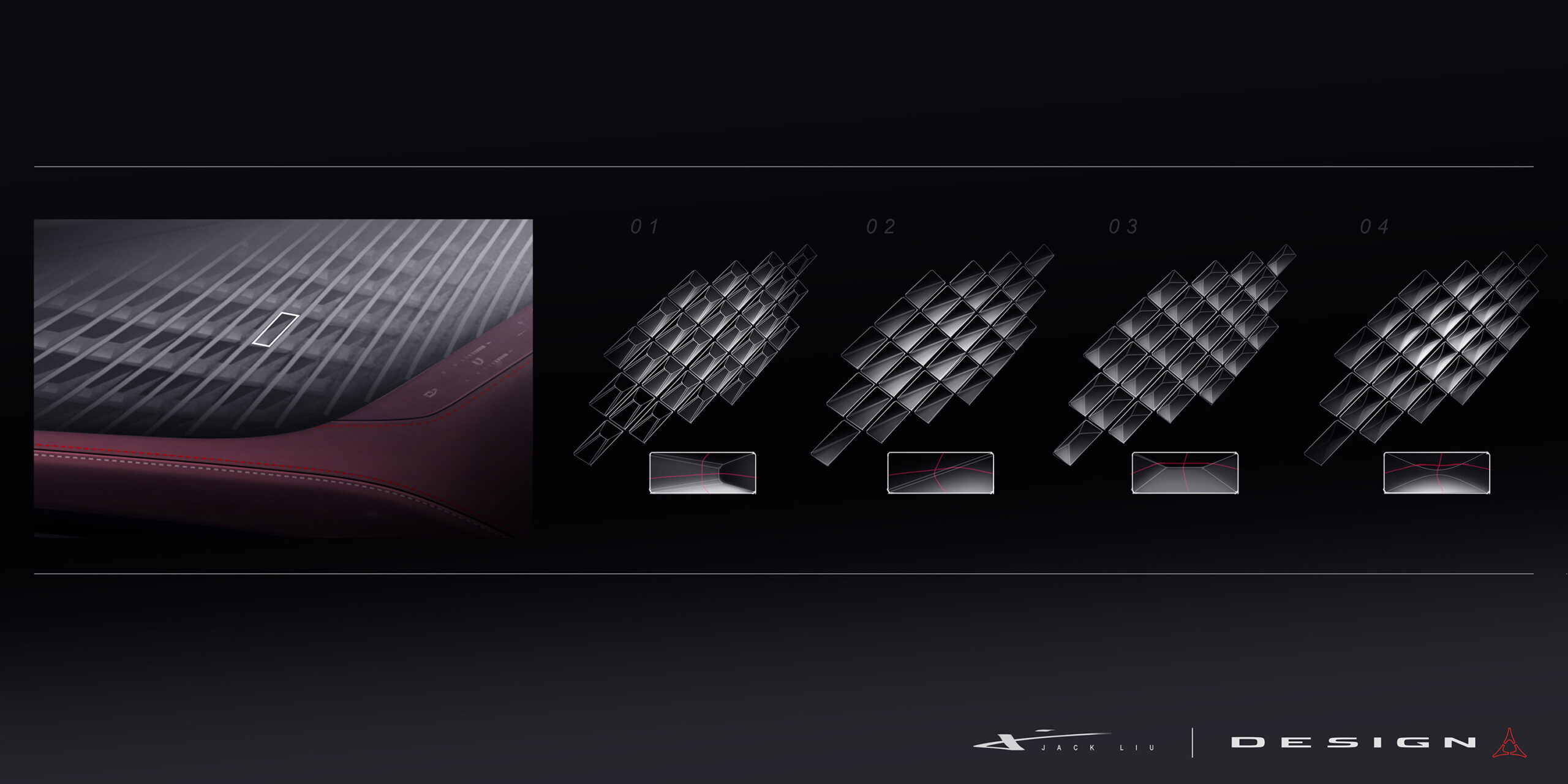Immersive new Attitude Adjustment interior lighting with 64 colors and intensity adjustability reacts to vehicle events, such as opening the door and pressing the ignition button. The Attitude Adjustment lighting is expressed through a parametric texture that adds a sculptural feel to the interior, wrapping 270 degrees from the driver door to the instrument panel to the passenger door.