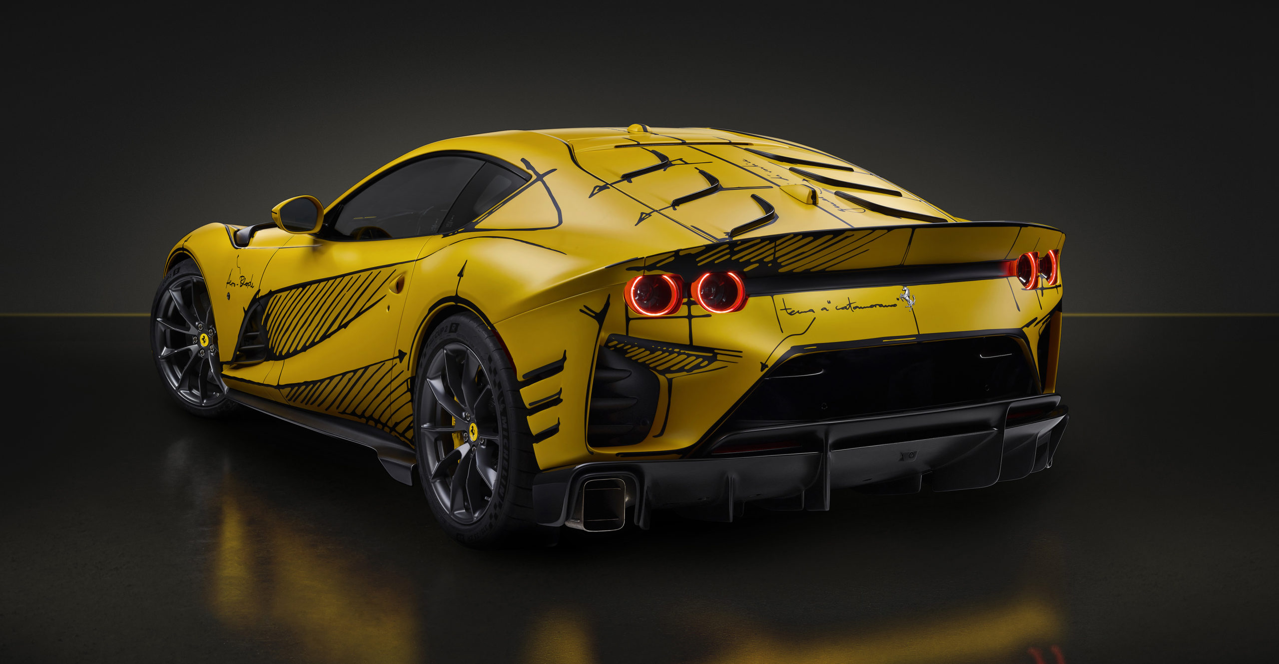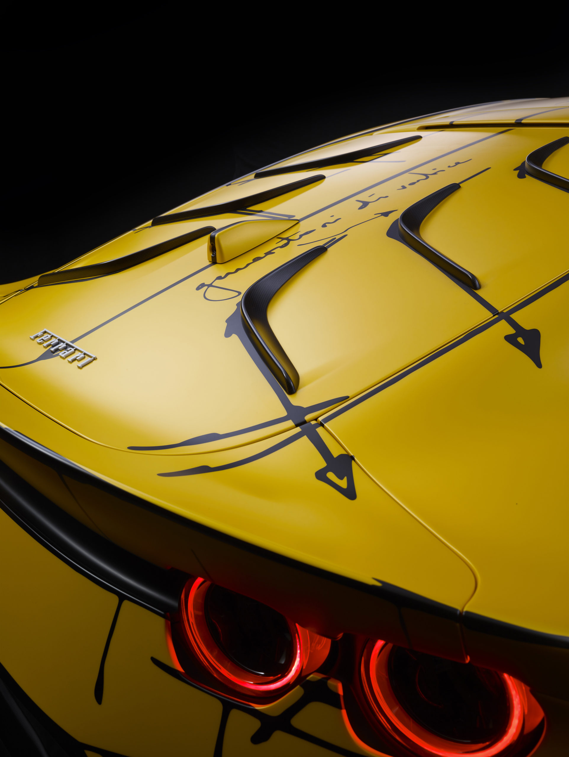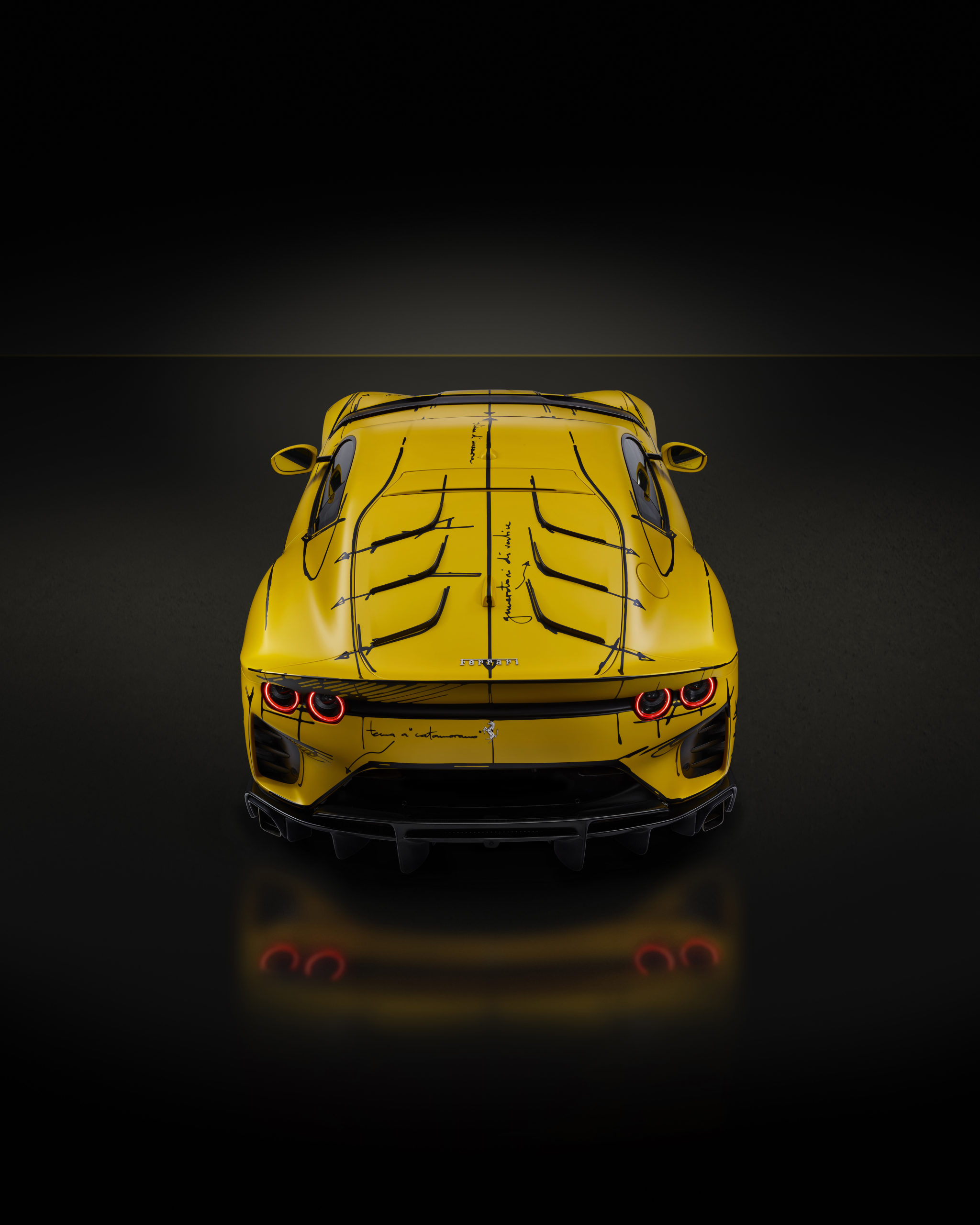The car, in fact, has been imagined as one of the now iconic yellow cards on which Maranello designers transfer their first ideas, insights and notes from mind to paper and on which – iteration after iteration, detail after detail, idea after idea – new concepts, unique stylistic features and shapes are composed that will become part of the history of Italian automotive design.