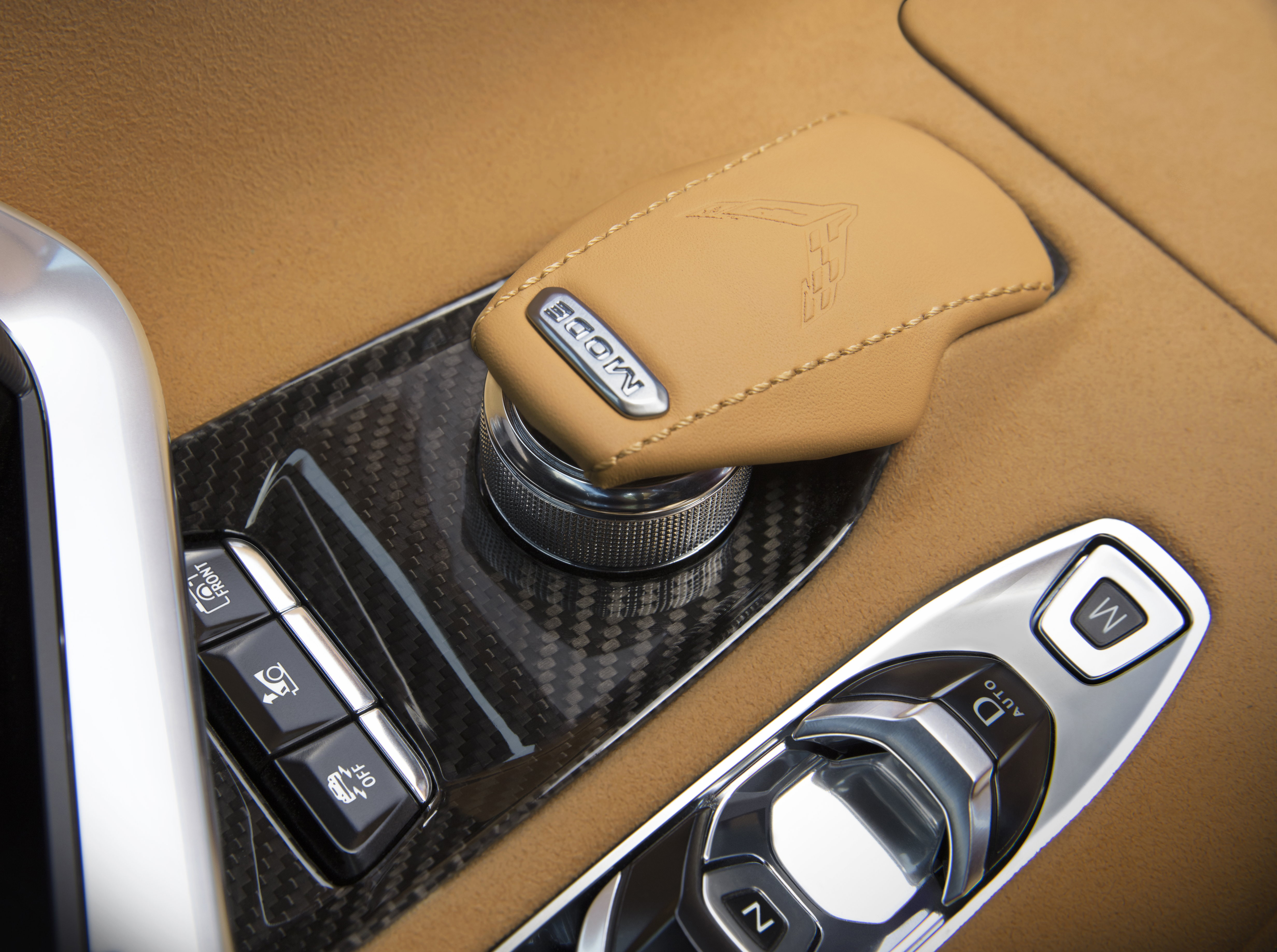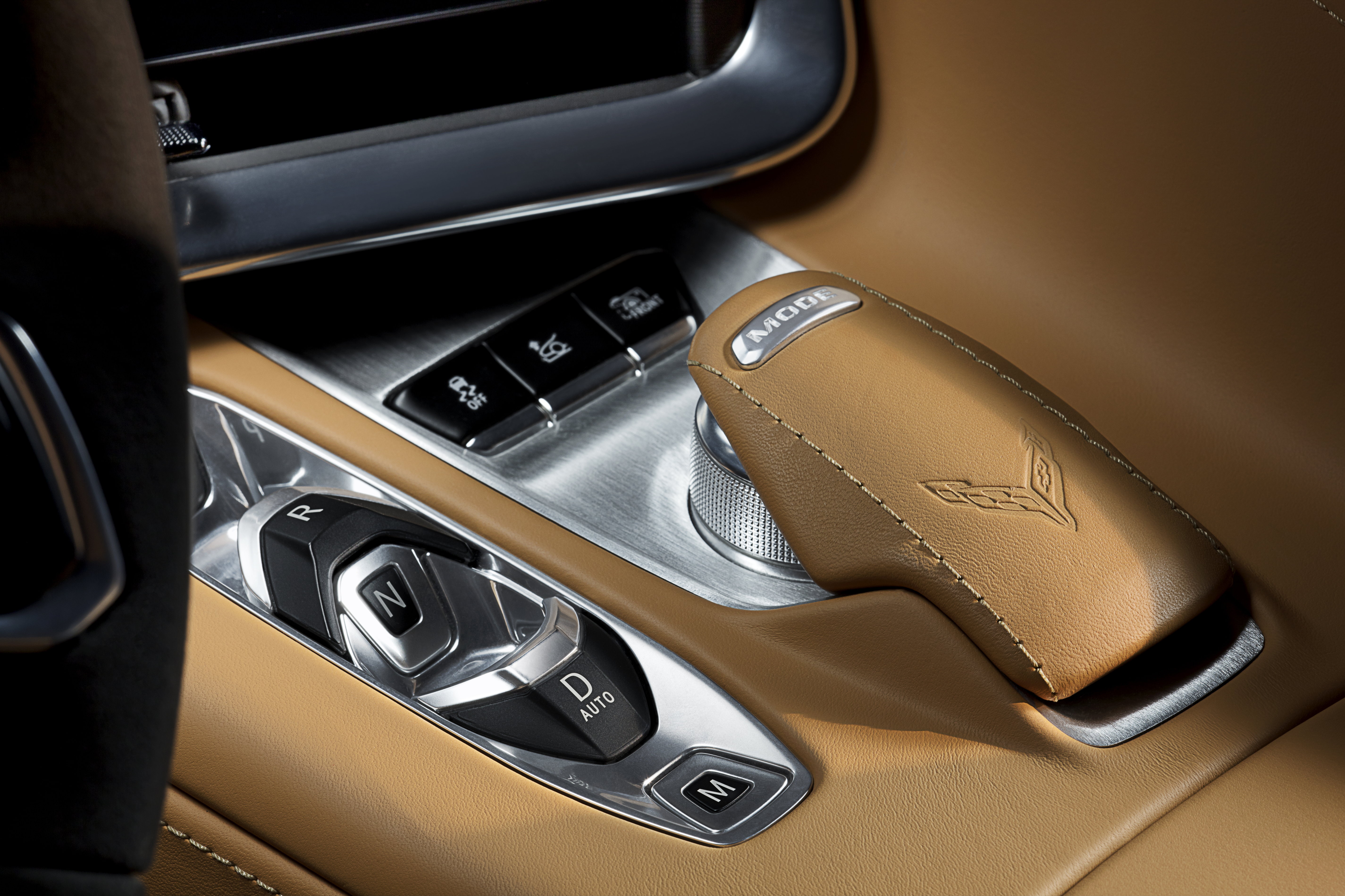 shift lever and the transmission. The Corvette’s electric shifter