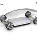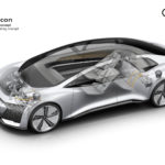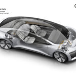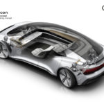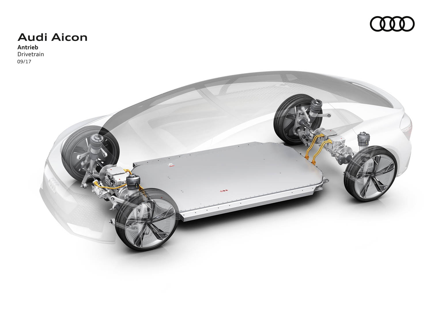 The four electric motors produce a total of 260 kW and 550 Newtonmeters (405.7 lb-ft). Each drives one wheel, enabling electronically controlled, variable quattro all-wheel drive. Maximum acceleration played a less important role in the specification than maximum efficiency and thus also range. This operating strategy is also pursued by the powertrain and electric brake units, which use recuperation to recover energy. Targeted lightweight construction of the multimaterial body and optimized aerodynamics also help the Audi Aicon to achieve ranges between 700 and 800 kilometers (435.0 – 497.1 mi) on a single charge.