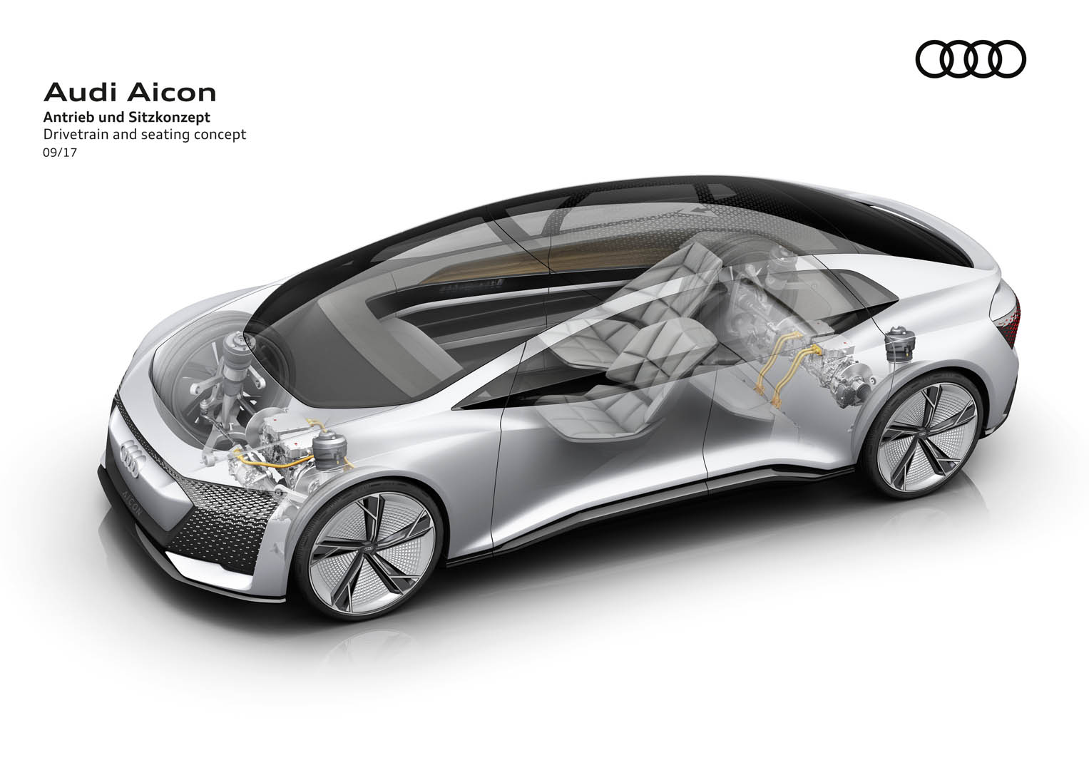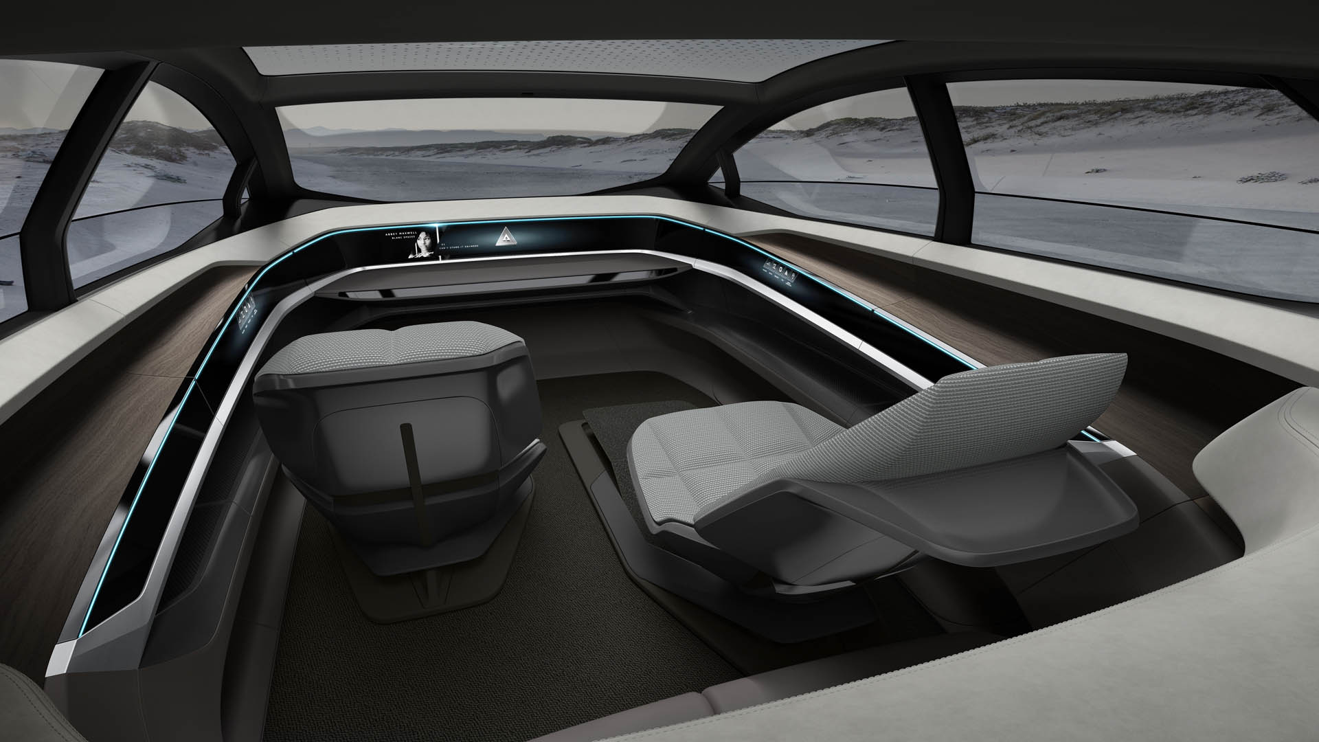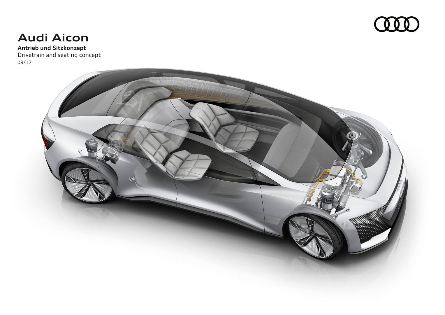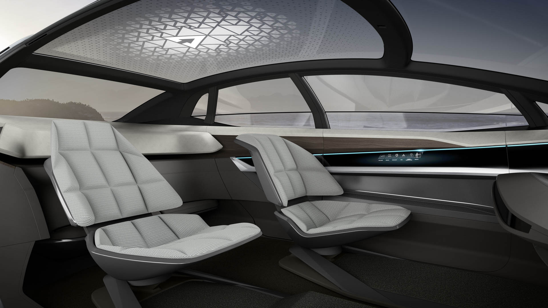 And as a mobility concept, the Audi Aicon shows the world of tomorrow, in which the advantages of door-to-door individual transportation are combined with the luxurious ambiance of a first-class airline cabin. A cabin with no steering wheel or pedals that can thus offer all the comforts of modern communications electronics and perfect ergonomics – simply first-class.