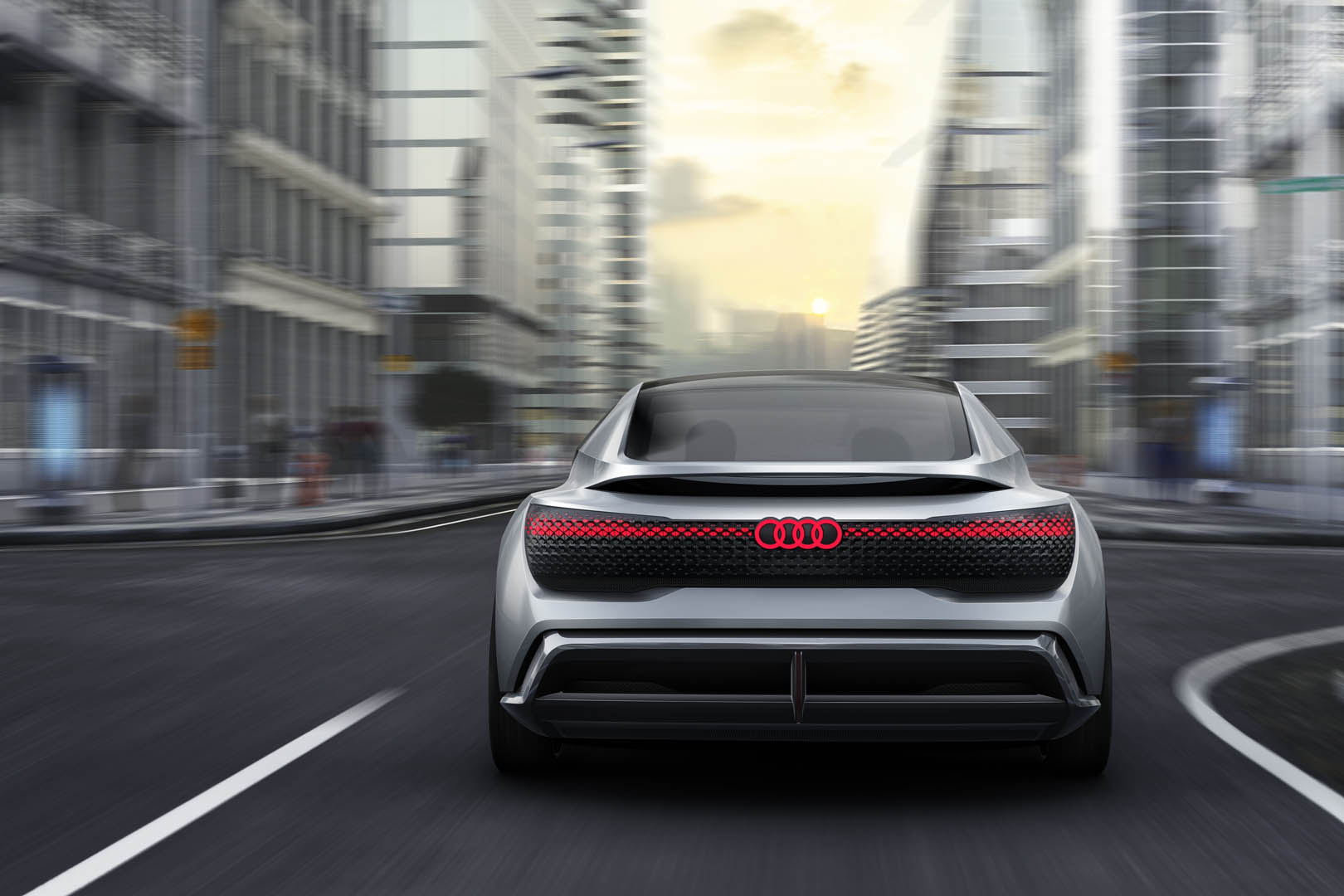 The designers reduced the front and rear ends to a minimum of lines and focused on large, uninterrupted surfaces. As with the Audi e-tron Sportback concept, the Aicon front features the inverted hexagonal Singleframe, a typical feature of the upcoming generation of electric cars from Audi. The sharply inclined silhouette of the entire front end evokes a sense of forging ahead – this, too, is a typical sports car body line.