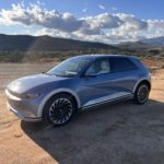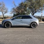 The consistent detailing on both exterior and interior, the pattern carried through harmoniously on eye catching details, never in an over-abundance but rather delicately tasteful. With the white interior this came out exceptionally well, as it matched perfectly with the ocean aqua exterior. It was all just right. The attention to detail was abundant everywhere. It was striking and made me feel to be in a very much higher category of vehicle. I realize the Genesis version of this platform is higher situated, but I doubt it can beat this Hyundai Ioniq5.