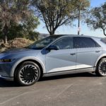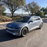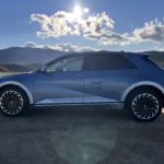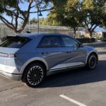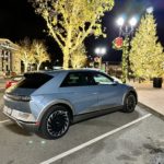 The exterior design is clearly a continuation of what Hyundai had started with the Elantra and Tucson, this time in an almost retro 70’s Ital Design guise. It looks as fresh as the Golf 1 and the Lancia Delta looked when they came out, and the proportions are similar as well, although the Ioniq5 is much larger than either of those. It is large. It is called and SUV. It does offer All Wheel Drive. To me it defies the SUV category since it isn’t in my face 4WD tough off road, but rather looks sophisticated and elegant, and with the slanted tailgate angle is not about packing at much interior space inside, nor does it have a monstrous tail gate spoiler like the VW ID3. It is just right.