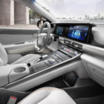 The interior continues the car’s horizontal layout in the dashboard. Most prominent is the wide black dashboard that houses two large LCD displays one of 12.3 inch Navigation system and the 7 inch LCD cluster. The left display holds the digital instrument cluster to show speed, fuel level and driving efficiency. The right screen comes with a new split-screen function and a new home screen for the navigation, connectivity and infotainment features.