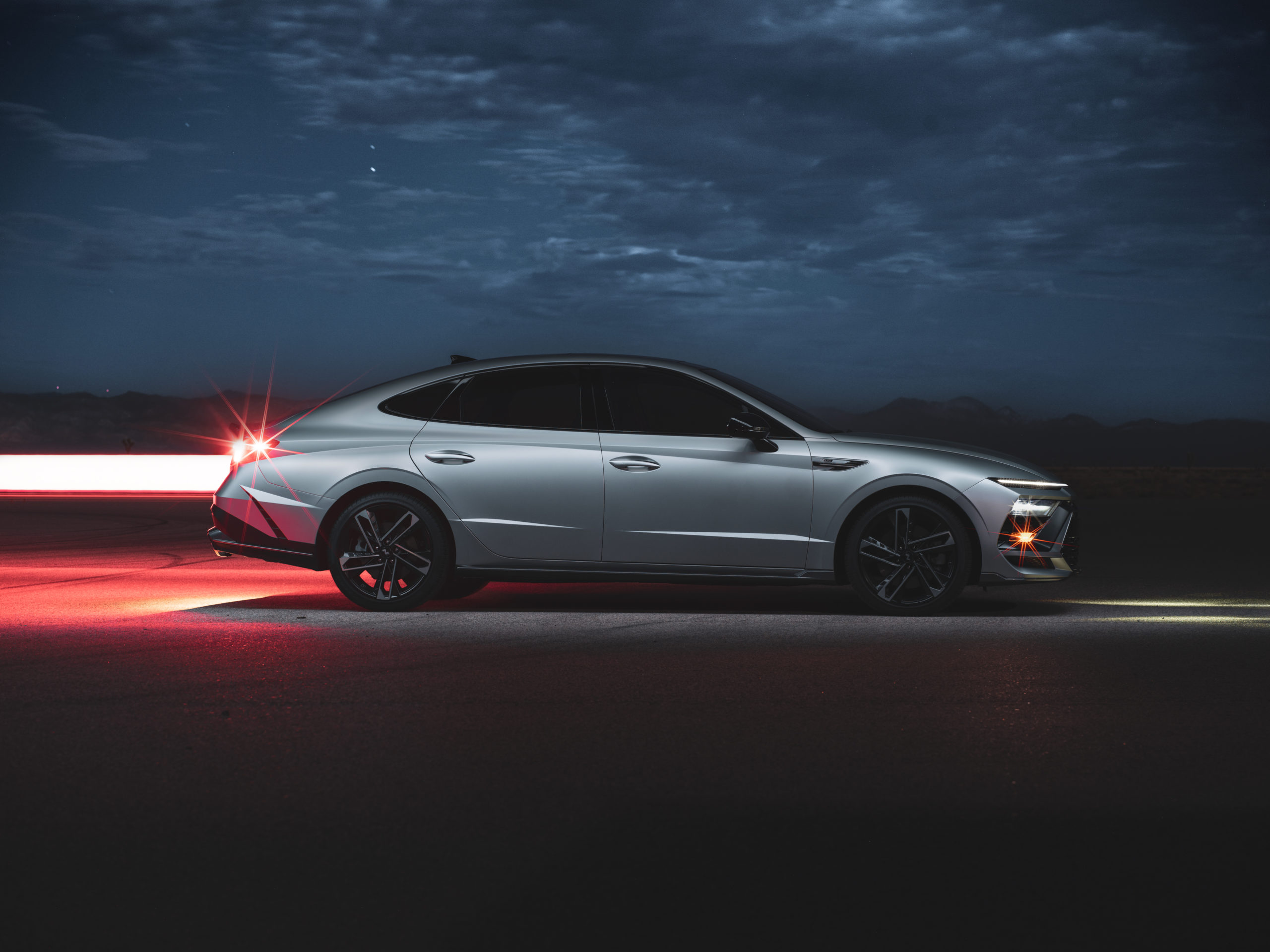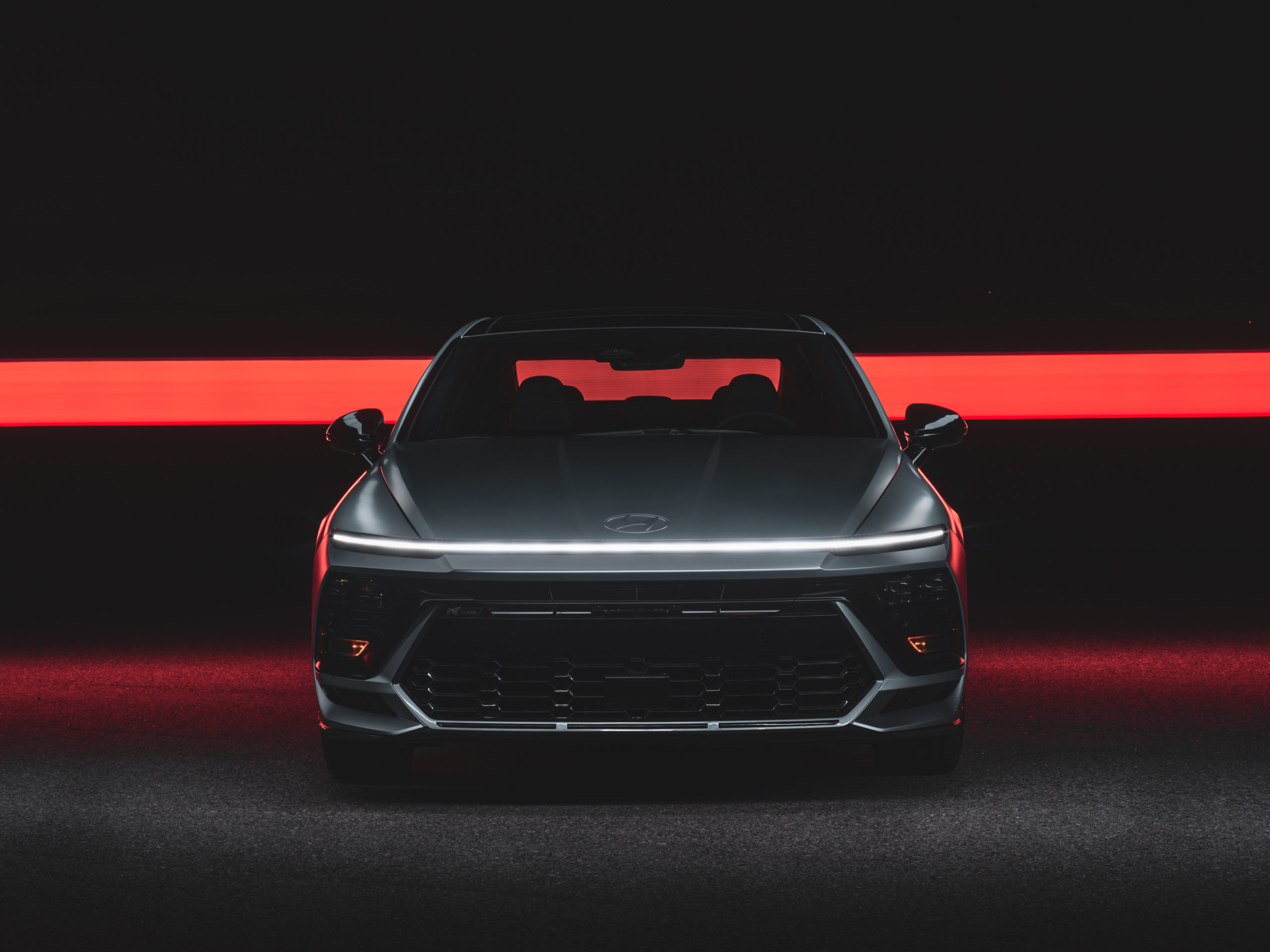 Inside, red-accented stitching and cross-metal patterned trim reinforce the image of a dynamic sports sedan. Sonata N Line is available with exclusive features, such as Active Sound Design, Launch Control, N Powershift, and Rev Matching.