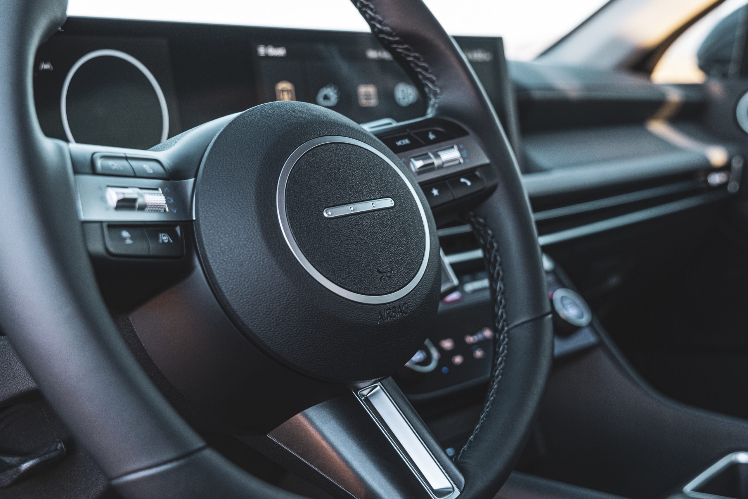 The panoramic curved display houses a 12.3-inch driver information cluster and 12.3-inch audio-video navigation (AVN) system for an immersive digital experience. Likewise, the head-up display (HUD) shows the most relevant information for drivers as a 12-inch projection on the windshield. The HUD allows them to process information quickly while keeping their attention on the road ahead.
