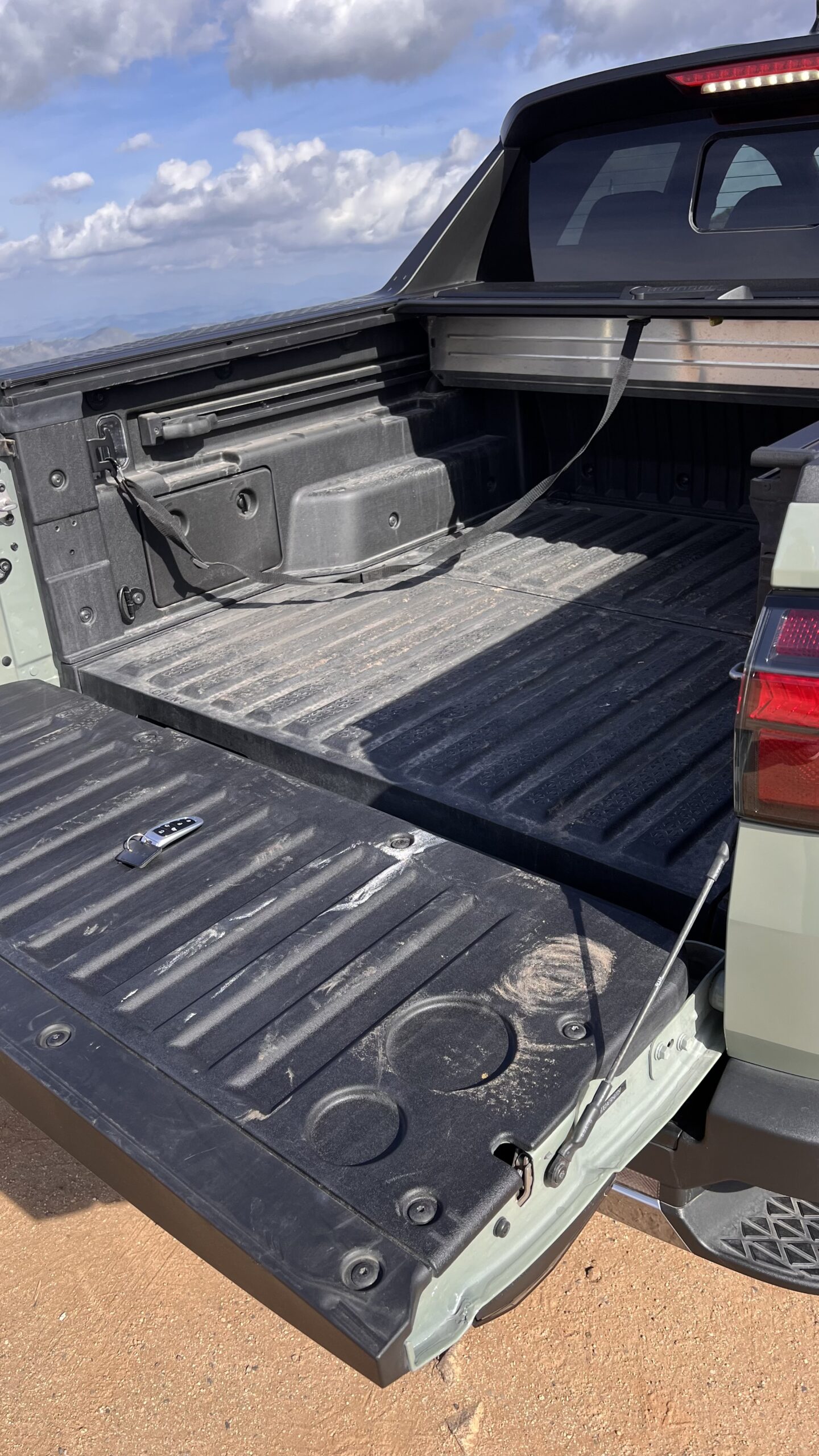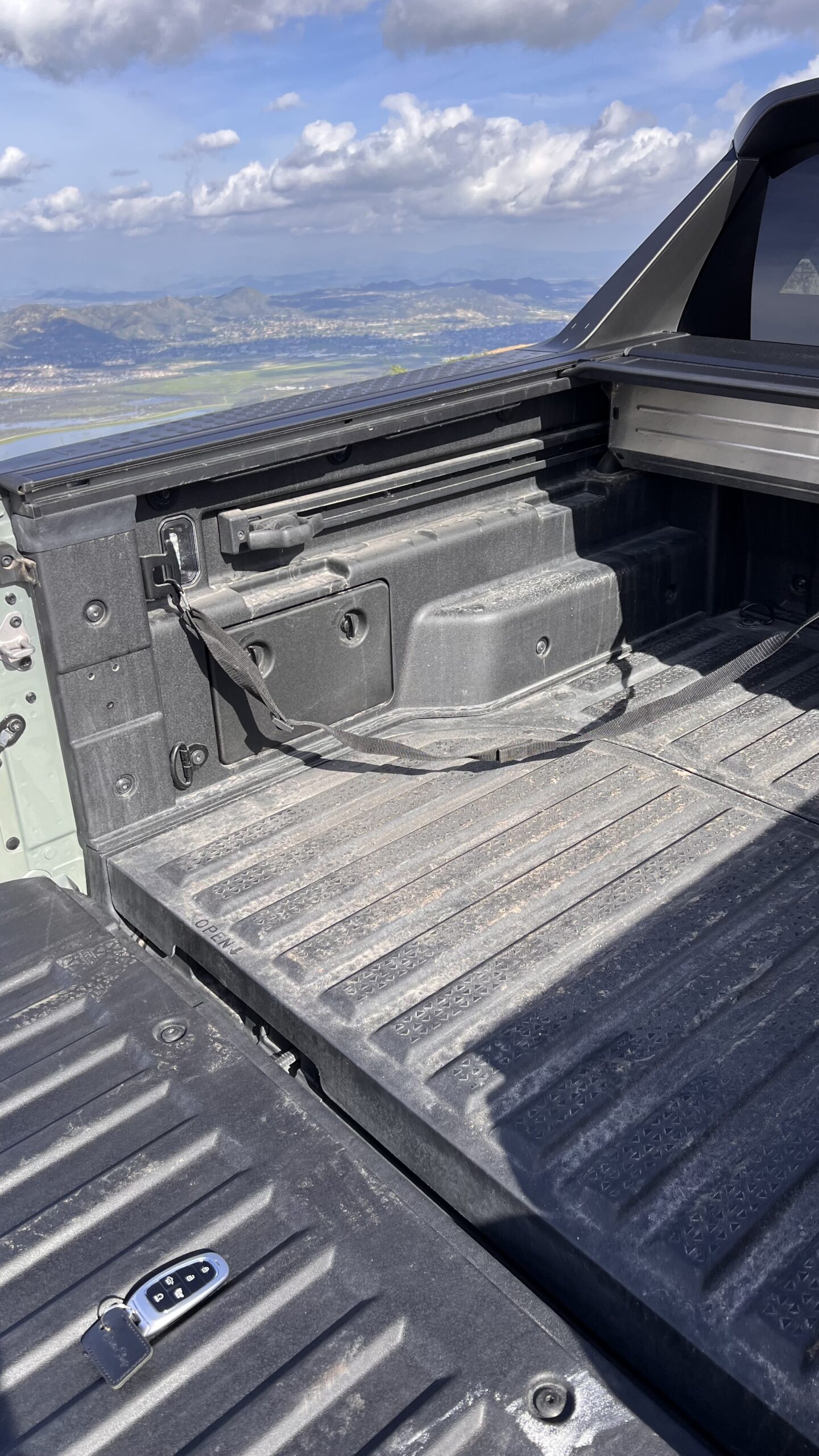 The true versatility of the Santa Cruz lies in its cargo configuration. The open bed provides a practical solution for hauling gear, while the hidden under-bed storage compartment offers a secure space for valuables. Folding down the rear seats creates a long and flat load floor, perfect for larger items.