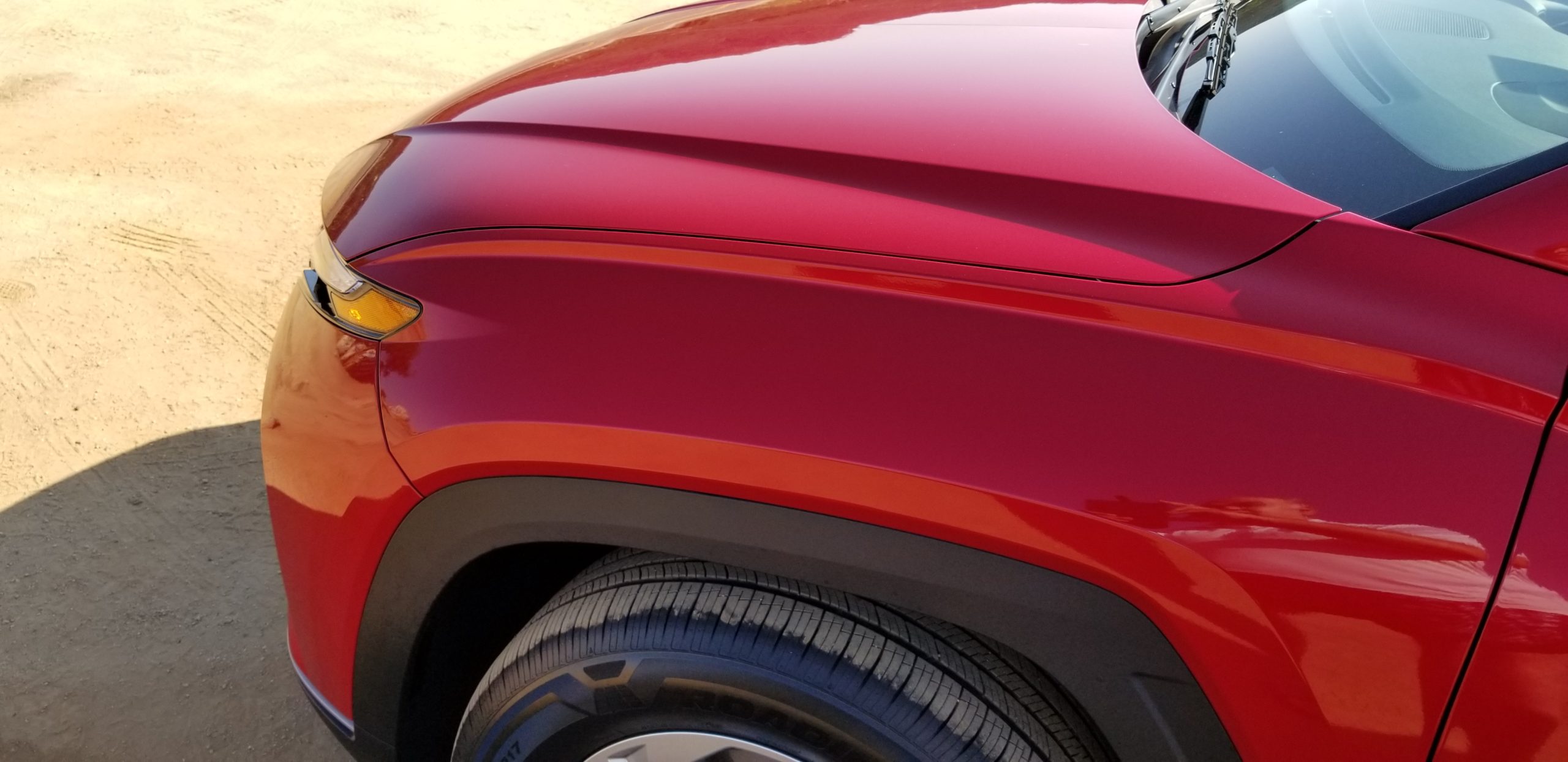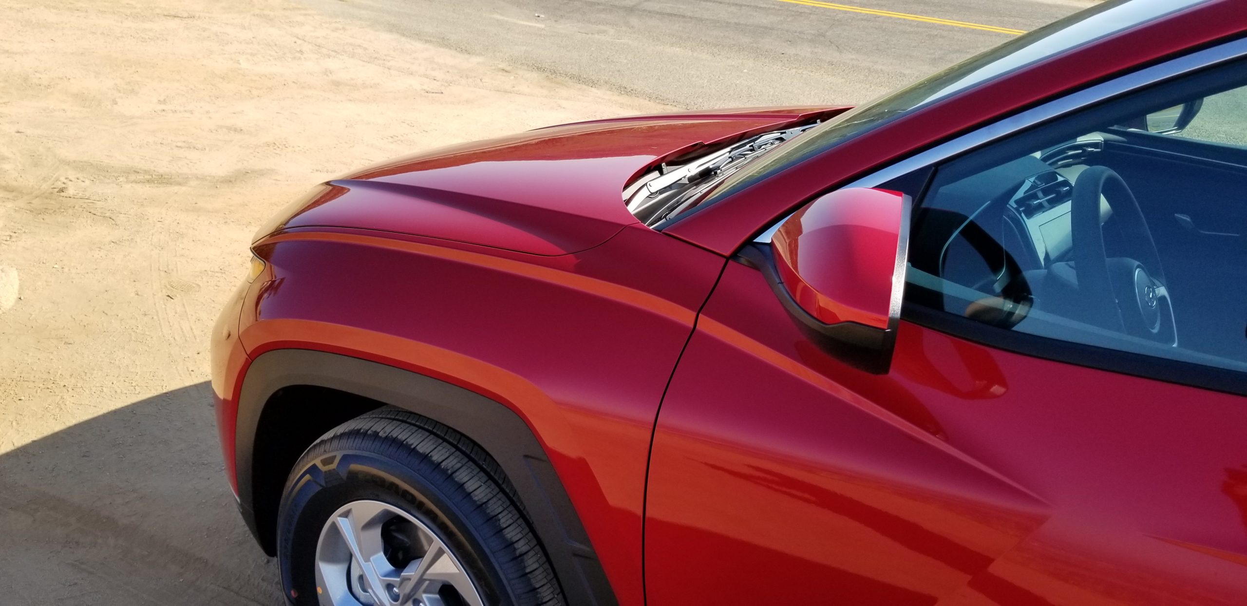The new Tucson boasts a modern and sophisticated exterior design that is sure to turn heads. The front end of the Tucson features a bold and aggressive grille design that is sure to catch the eye of anyone passing by. The LED headlights and daytime running lights are integrated seamlessly into the design of the front end and give the Tucson a distinctive look. Moving down the side of the vehicle, the Tucson features a bold shoulder line that gives the SUV a muscular and athletic appearance. The rear of the Tucson features a sporty and modern taillight design that is sure to leave a lasting impression. Overall, the exterior design of the Tucson is both striking and modern and should appeal to American buyers.