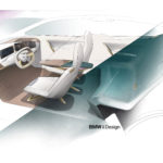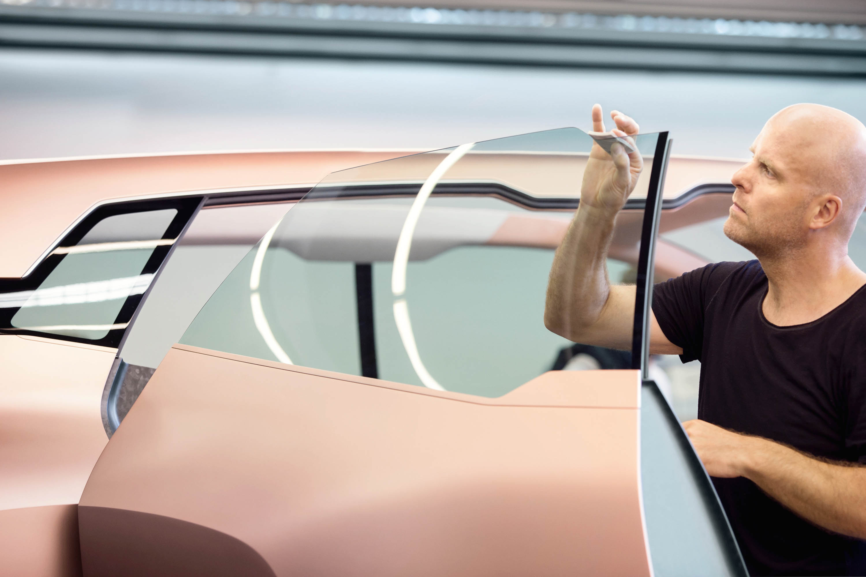 A 3D-printed pattern points to the technology below the surface. Super-slim headlights are part of a modern interpretation of BMW’s signature four-eyed front end. The windscreen extends smoothly into a large panoramic roof, lending the rump of the car a visual lightness and ensuring the innovative interior is clearly visible from the outside.