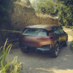 The large, interlinked double-kidney grille, the iconic side window graphic, and the blue accent surfaces at the front, sides and rear have clearly adopted the BMW i styling that already featured on the BMW i Vision Dynamics presented in 2017. Unlocking the vehicle causes the blue accents to light up, accentuating its eye-catching lines. Glass surfaces such as the large windows and the lights are integrated seamlessly into the design and have the appearance of elaborate inlays.