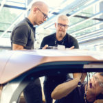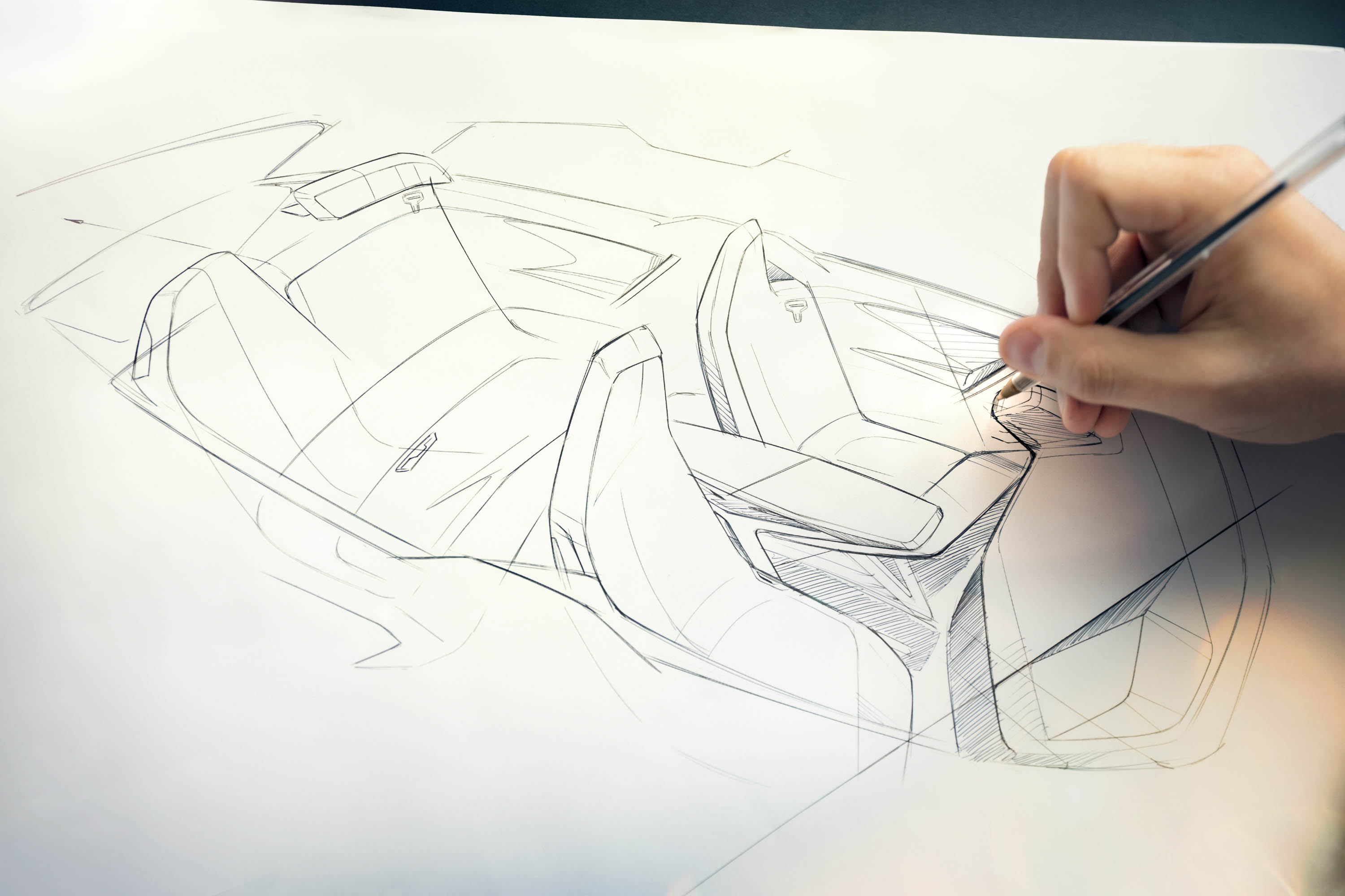 At the rear, the horizontal arrangement of the lines and surfaces creates a wide and dynamic stance. The slender and distinctive rear lights extend a long way into the car’s rear end and emphasise its appearance. The air flows along the roof and this combines with a diffuser – that is illuminated for added impact – to enhance the car’s aerodynamics.