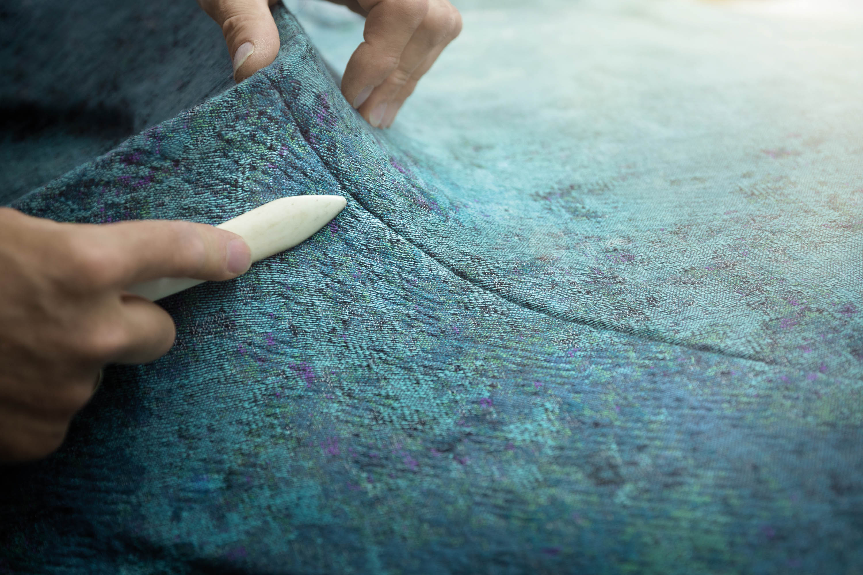 At first glance, the rear compartment has the appearance of a modern, high-end living space. A generously sized, continuous seat area gives the rear a laid-back lounge character and invites its occupants to stay a while. The handwoven Enlighted Cloudburst Jacquard cloth extends across the entire seat area and into the side panelling, gradually changing from Petrol to White in the process, but still lends the cabin a very modern touch.