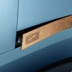 A pair of dramatic butterfly doors and ‘pantograph’ tailgate open to reveal a modernist interior that shares its exuberant proportions with the exterior. The awe‑inspiring cabin features three hand‑finished brass lines which run the length of the interior, with a central 3.2m‑long brass spine that splits a pair of floating instrument panels.