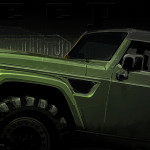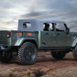 Exterior features, such as Jeep Performance Parts off-road rock rails, a winch mounted into the front and rear bumpers, Dana 60 front and rear axles and a 4-inch lift kit with Jeep Performance Parts/Fox 2.0 Remote Reservoir shocks, give the Crew Chief 715 increased capability. The “Tactical Green” color scheme runs from the custom modified M715-inspired front-end to the tailgate. The Crew Chief 715 features a military themed 5-foot cargo bed.