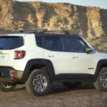 The “Fluorescent Gray” exterior features Renegade’s MySky open-air roof with removable panels, custom body decal, Mopar off-road rock rails, skid plates and a modified exhaust. Also featured are the Mopar brand’s trailer hitch receiver and front and rear auxiliary lights.